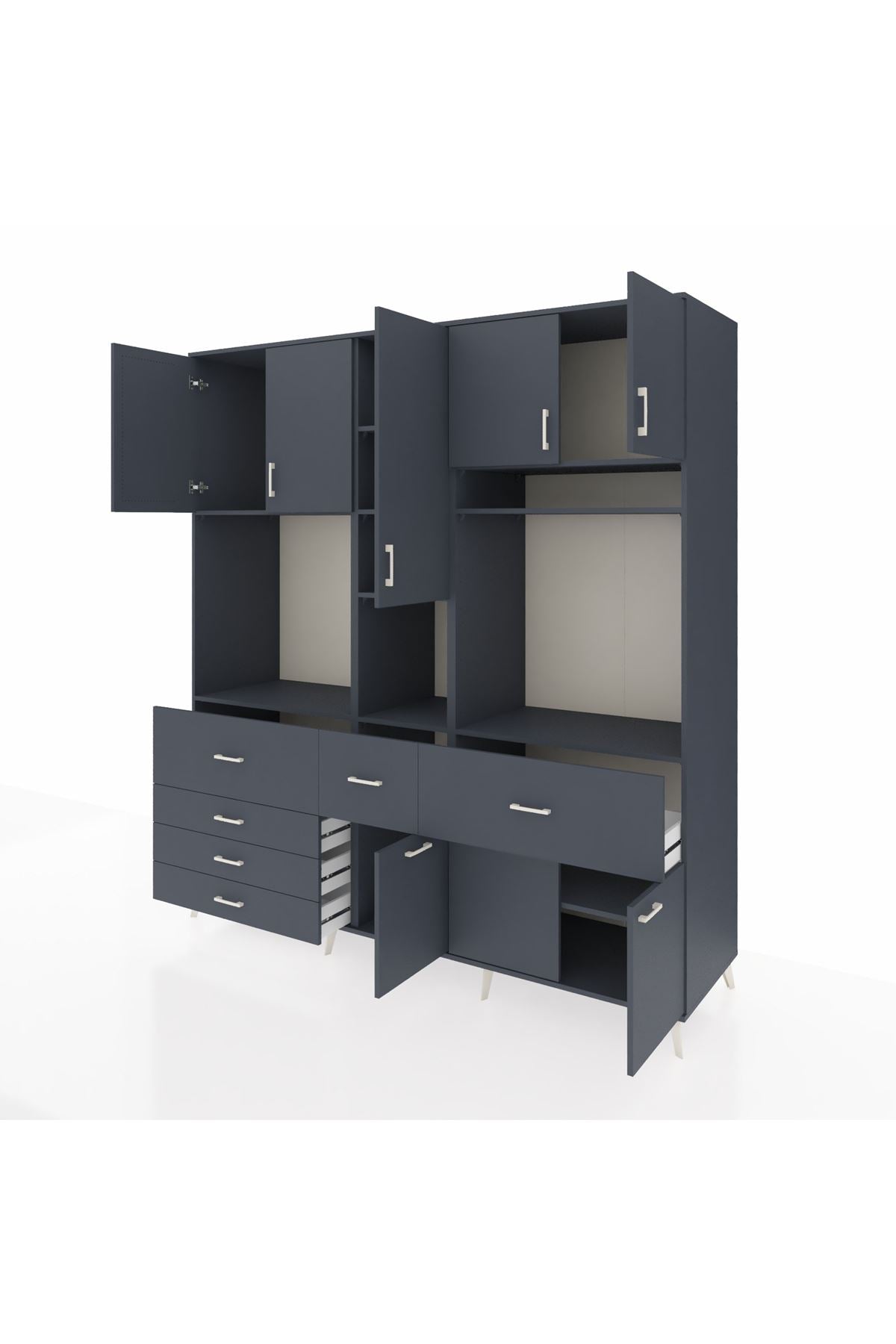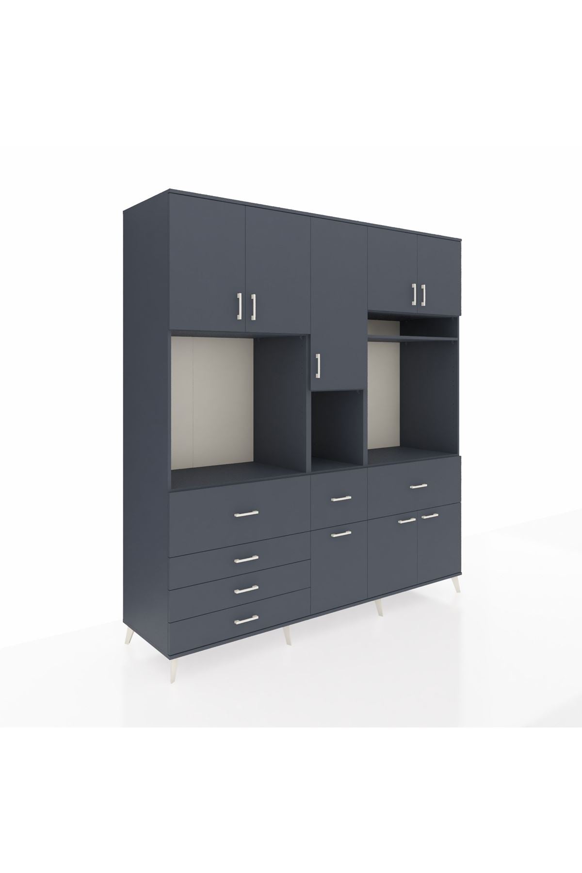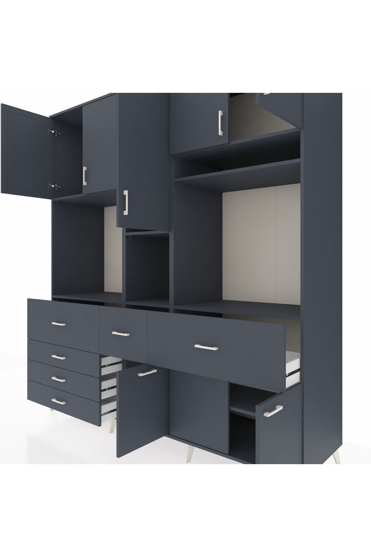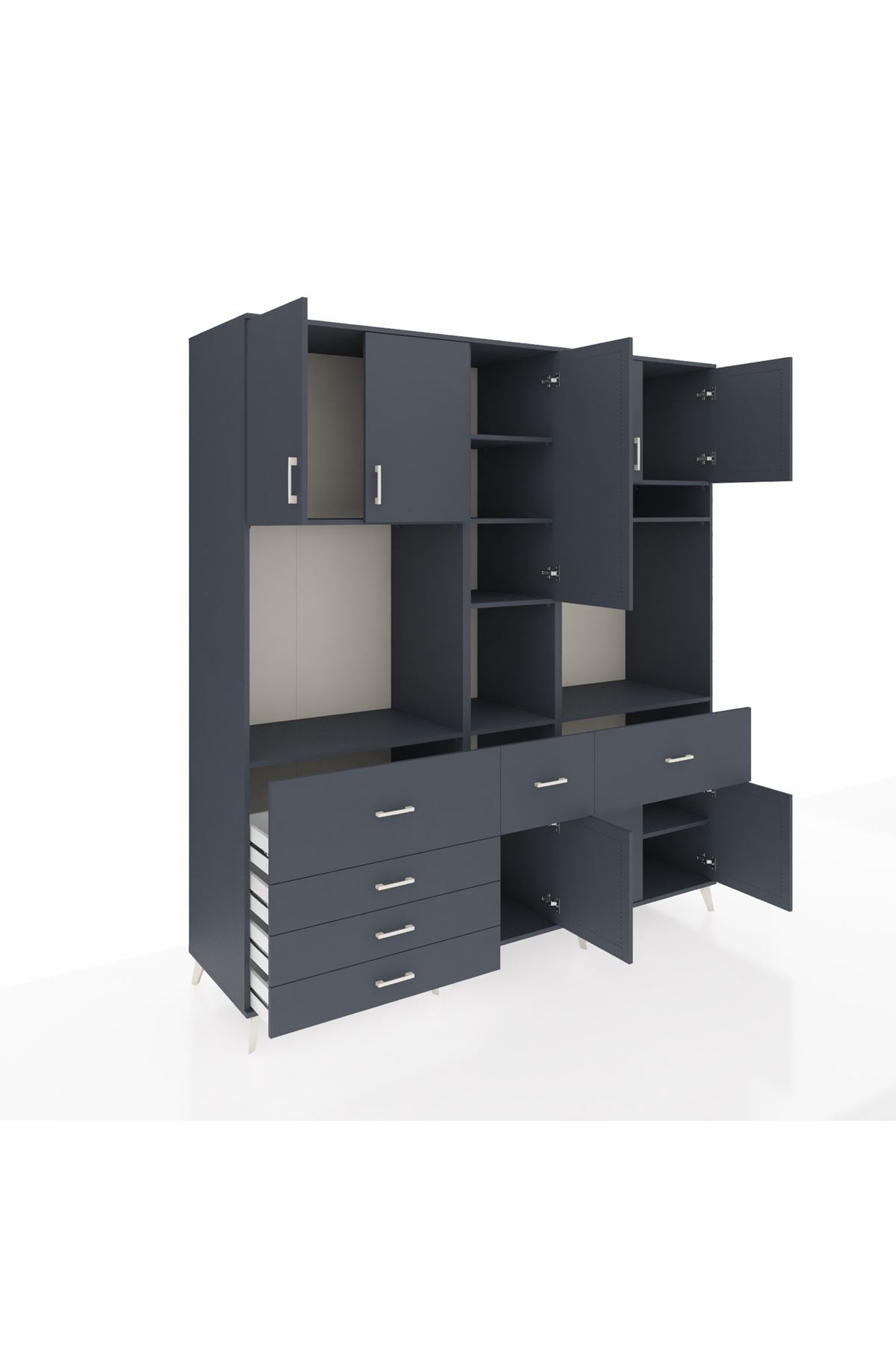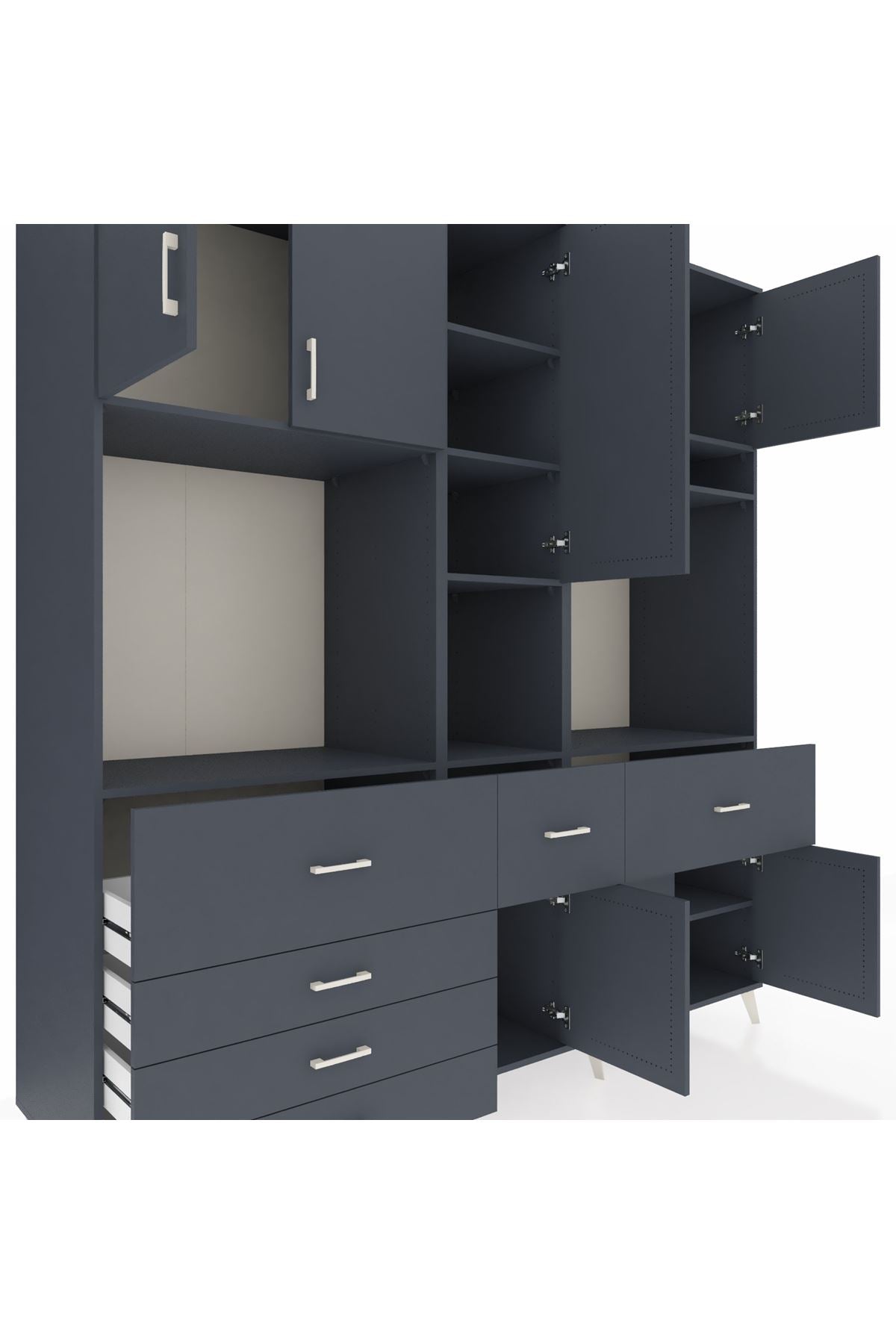 Kronos Dolap 10 Raflı 6 Çekmeceli 8 Kapaklı 220x59x243 Aytaşı-Antrasit/Antrasit