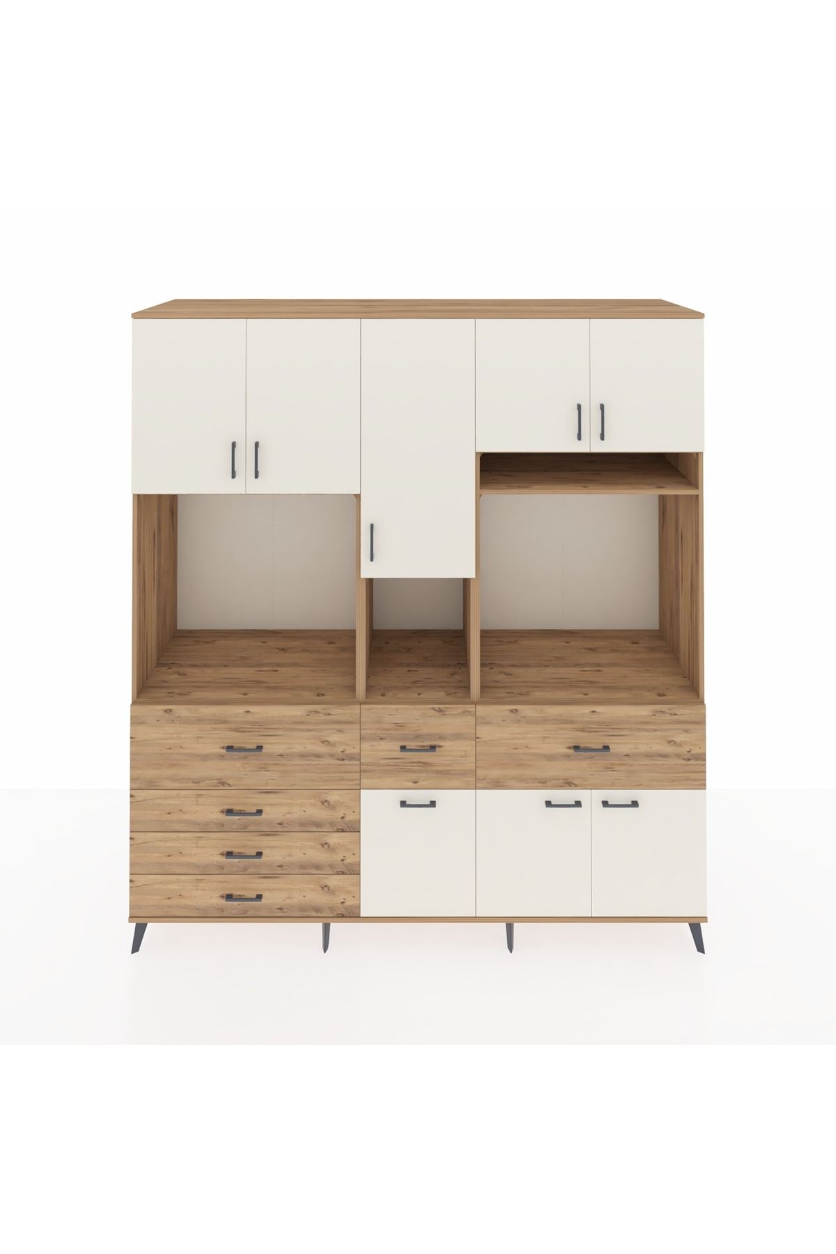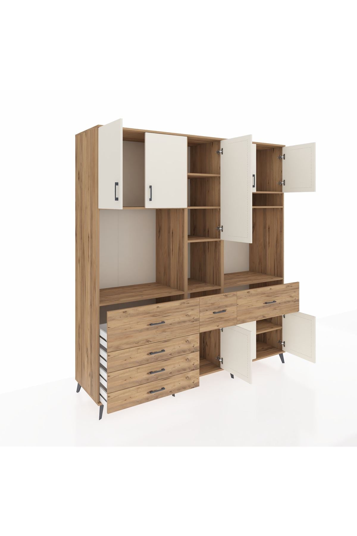 Kronos Dolap 10 Raflı 6 Çekmeceli 8 Kapaklı 220x59x243 Çam-Aytaşı/Çam