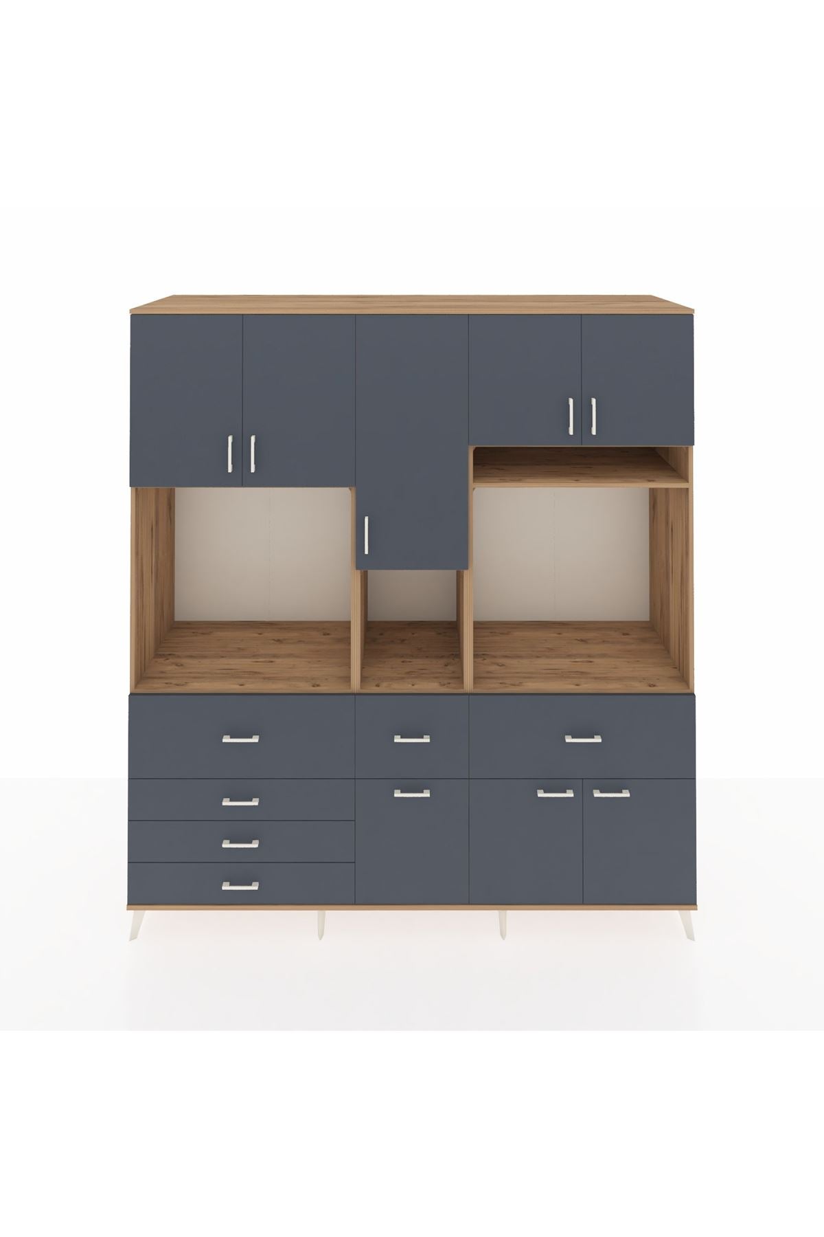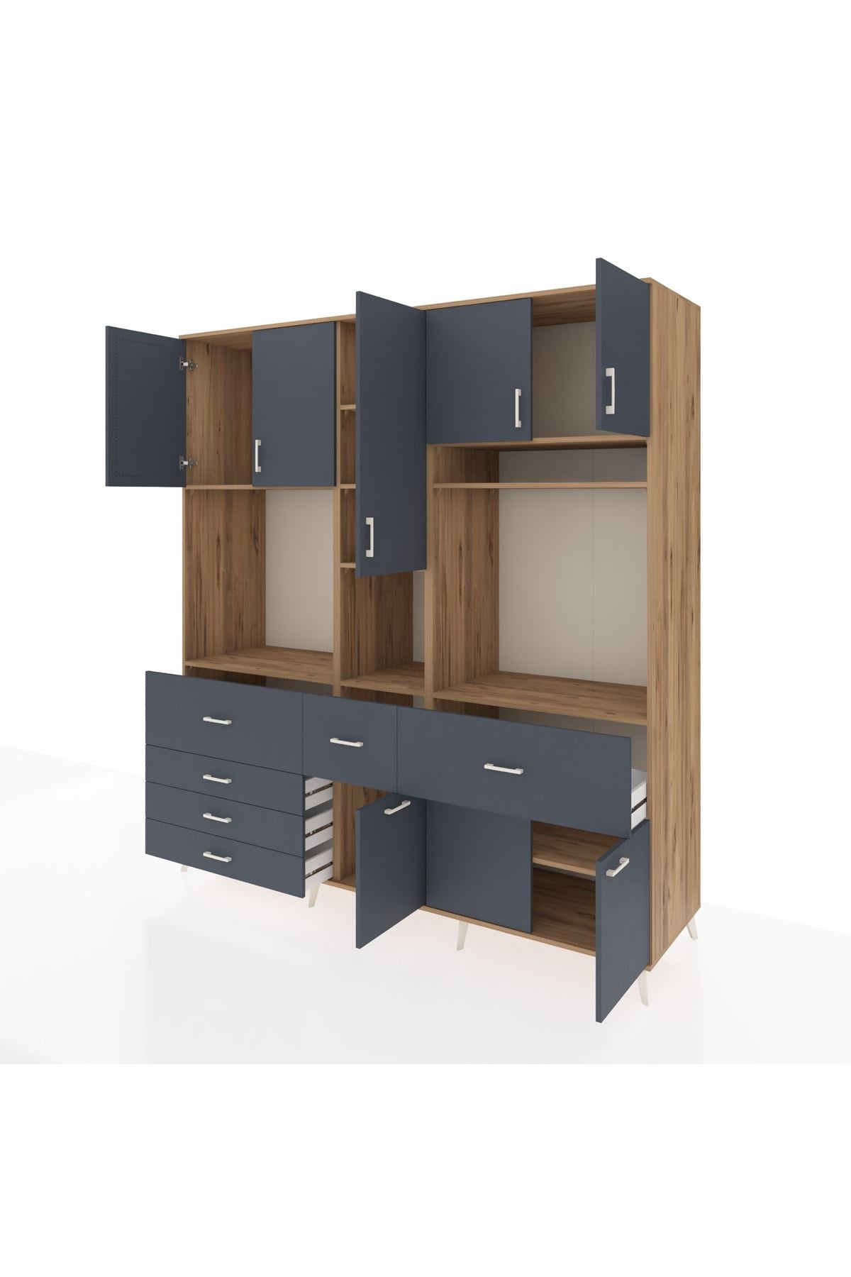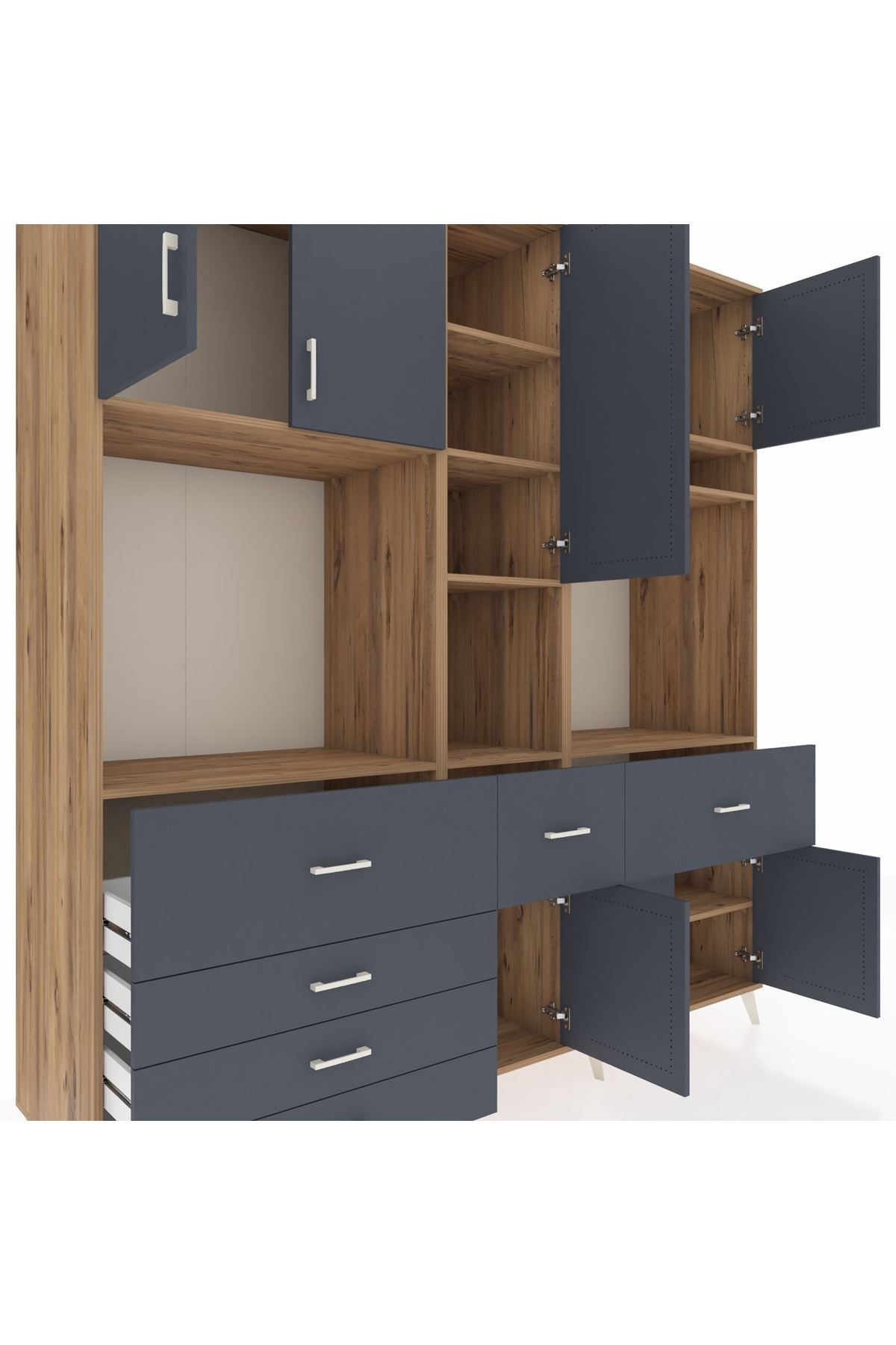 Kronos Dolap 10 Raflı 6 Çekmeceli 8 Kapaklı 220x59x243 Çam-Antrasit/Antrasit