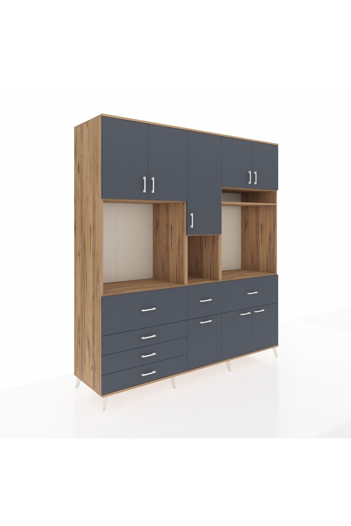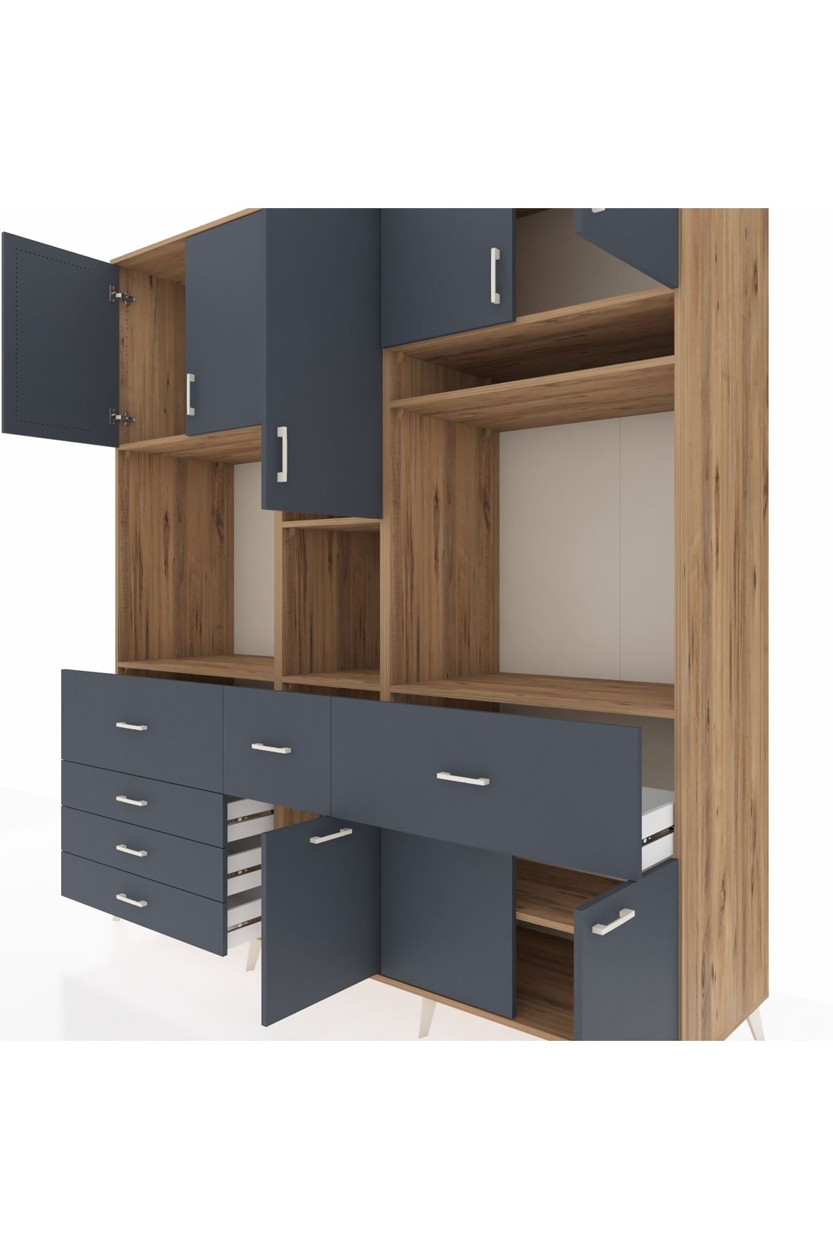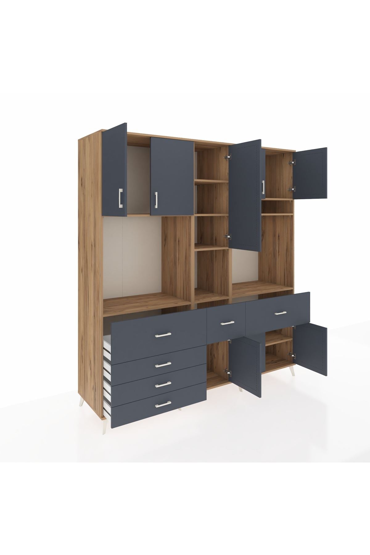Kronos Dolap 10 Raflı 6 Çekmeceli 8 Kapaklı 220x59x243 Çam-Antrasit/Antrasit