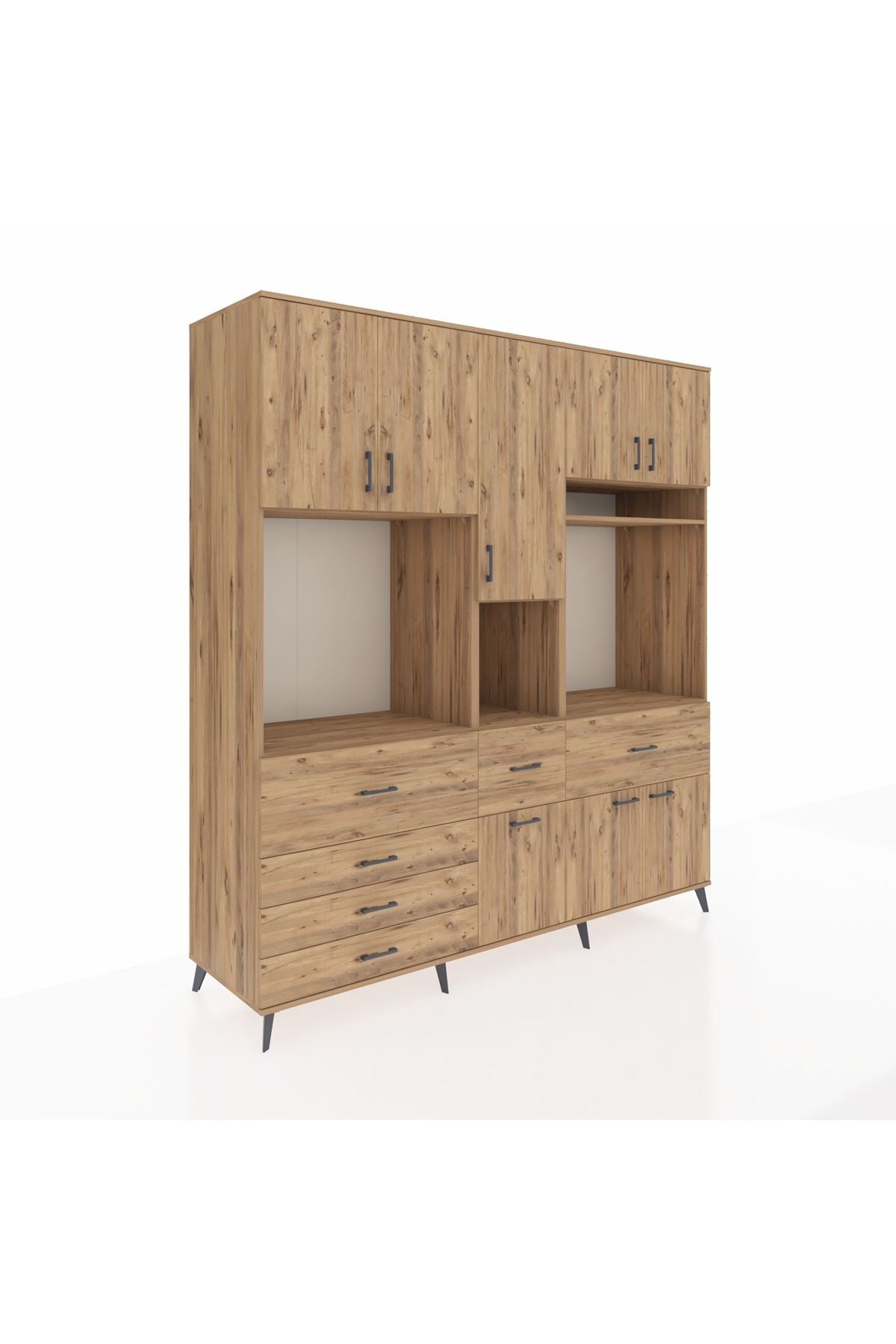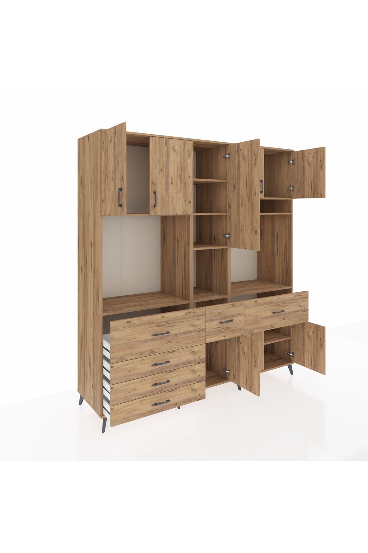 Kronos Dolap 10 Raflı 6 Çekmeceli 8 Kapaklı 220x59x243 Çam-Çam/Çam