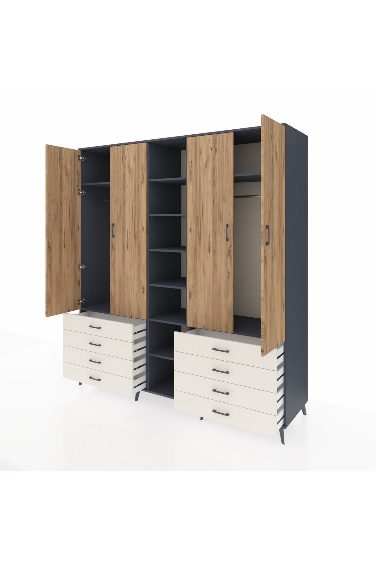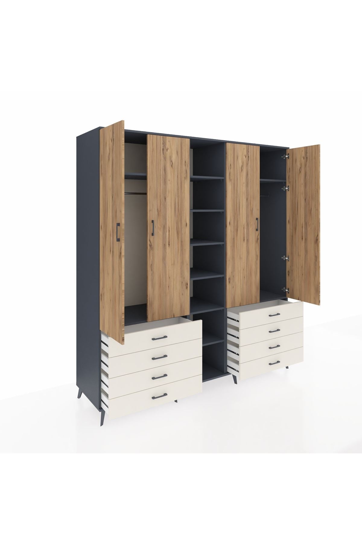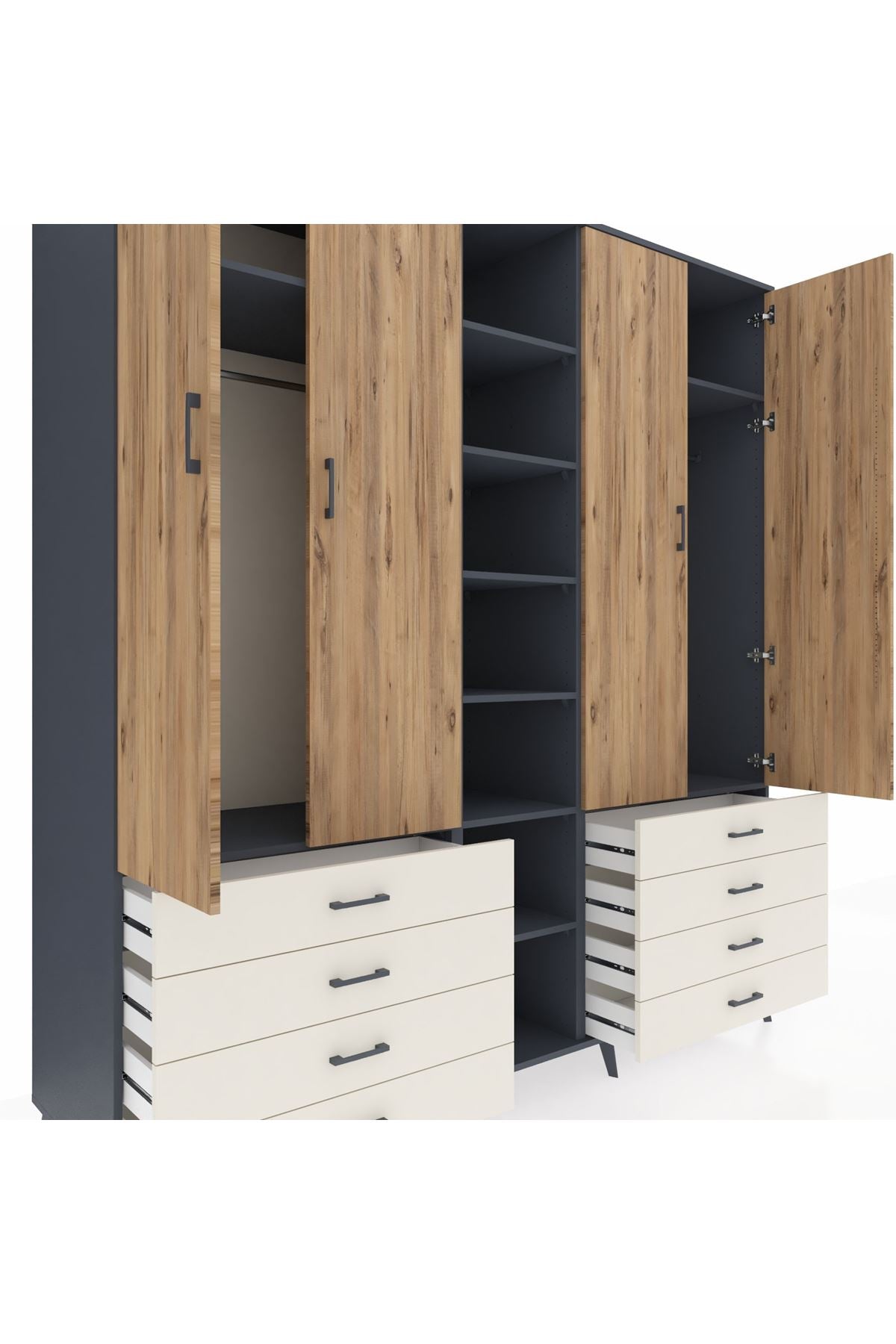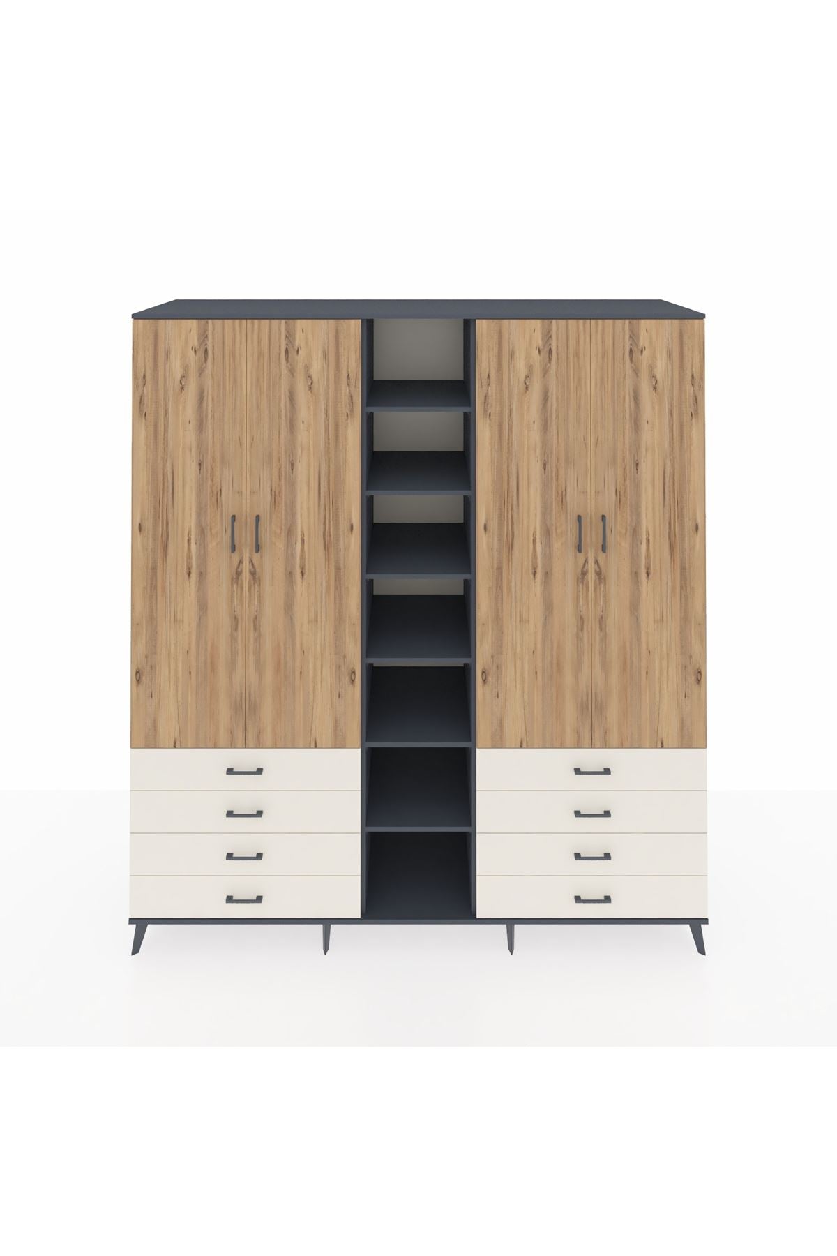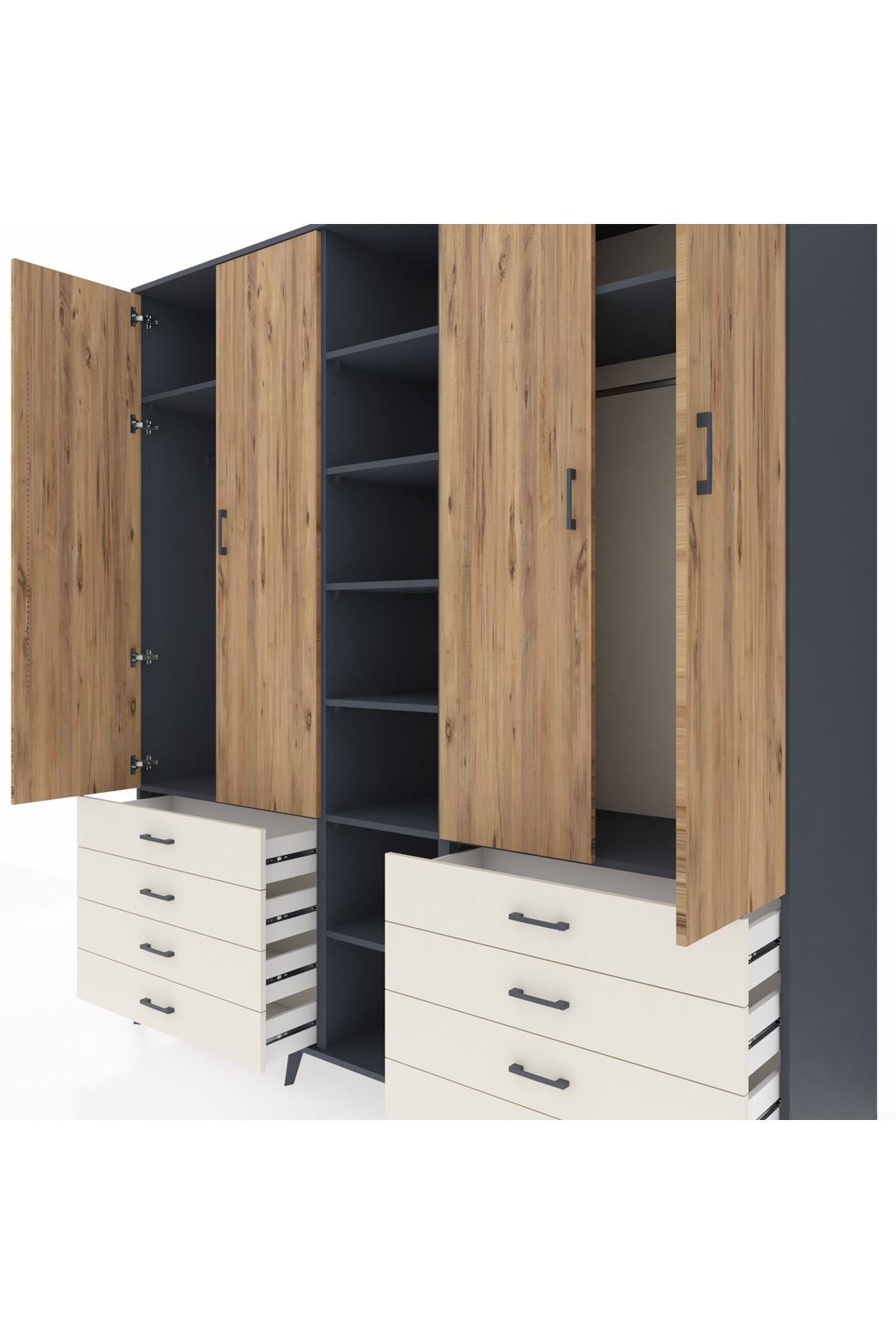 Kronos Dolap 10 Raflı 8 Çekmeceli 2 Askılı 220x59x243 Antrasit-Çam/Aytaşı