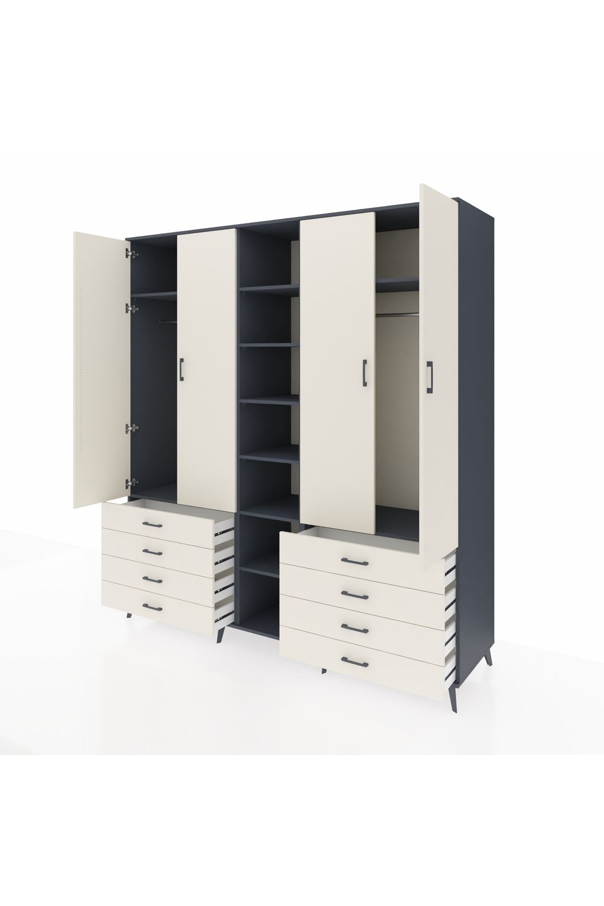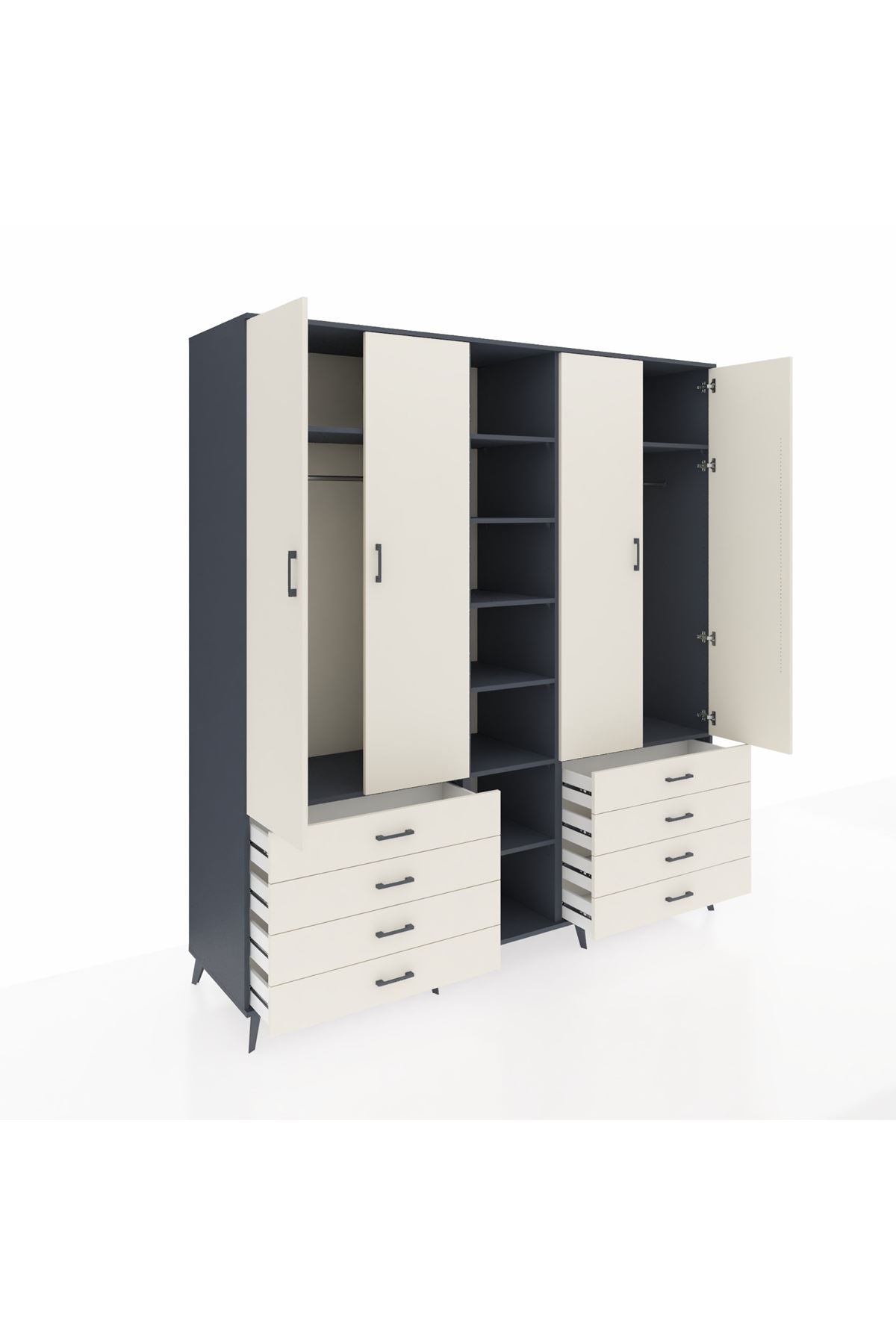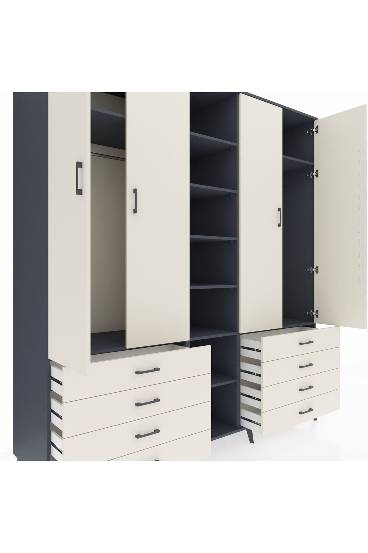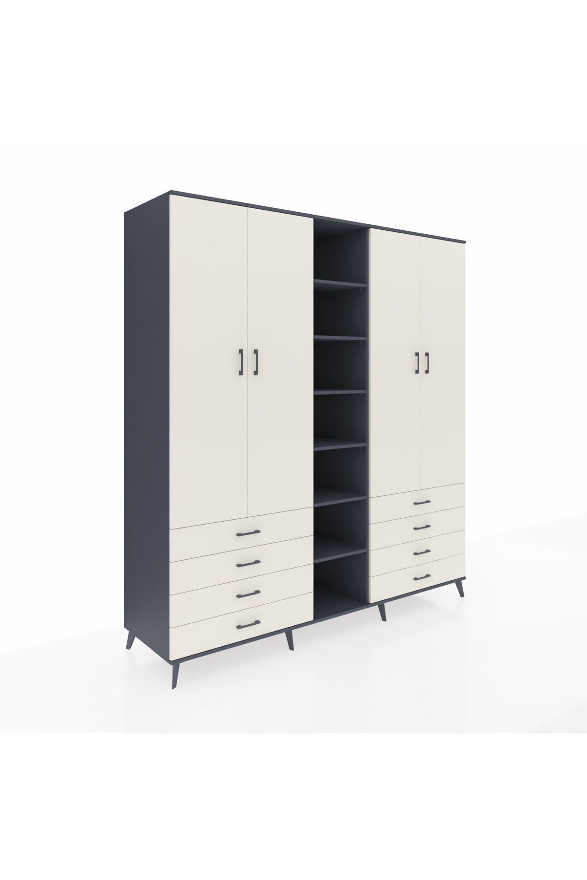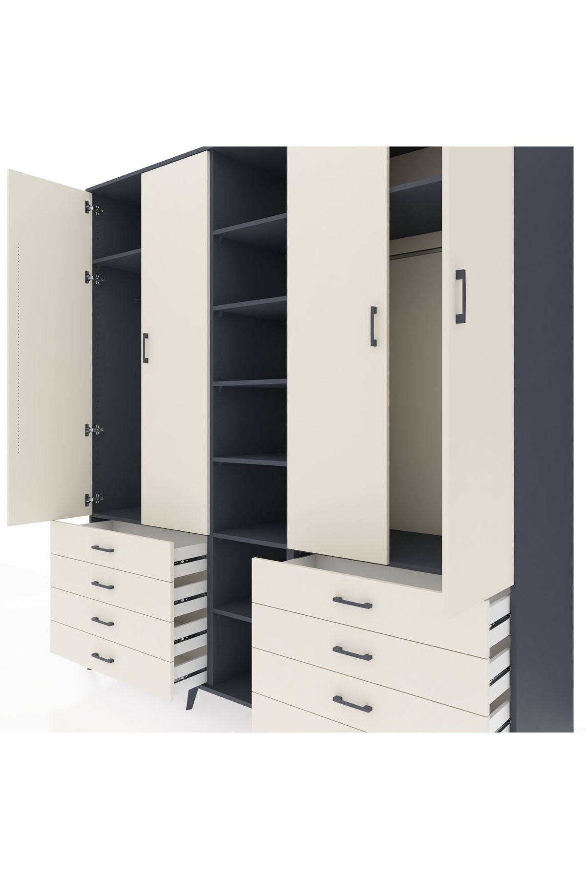 Kronos Dolap 10 Raflı 8 Çekmeceli 2 Askılı 220x59x243 Antrasit-Aytaşı/Aytaşı