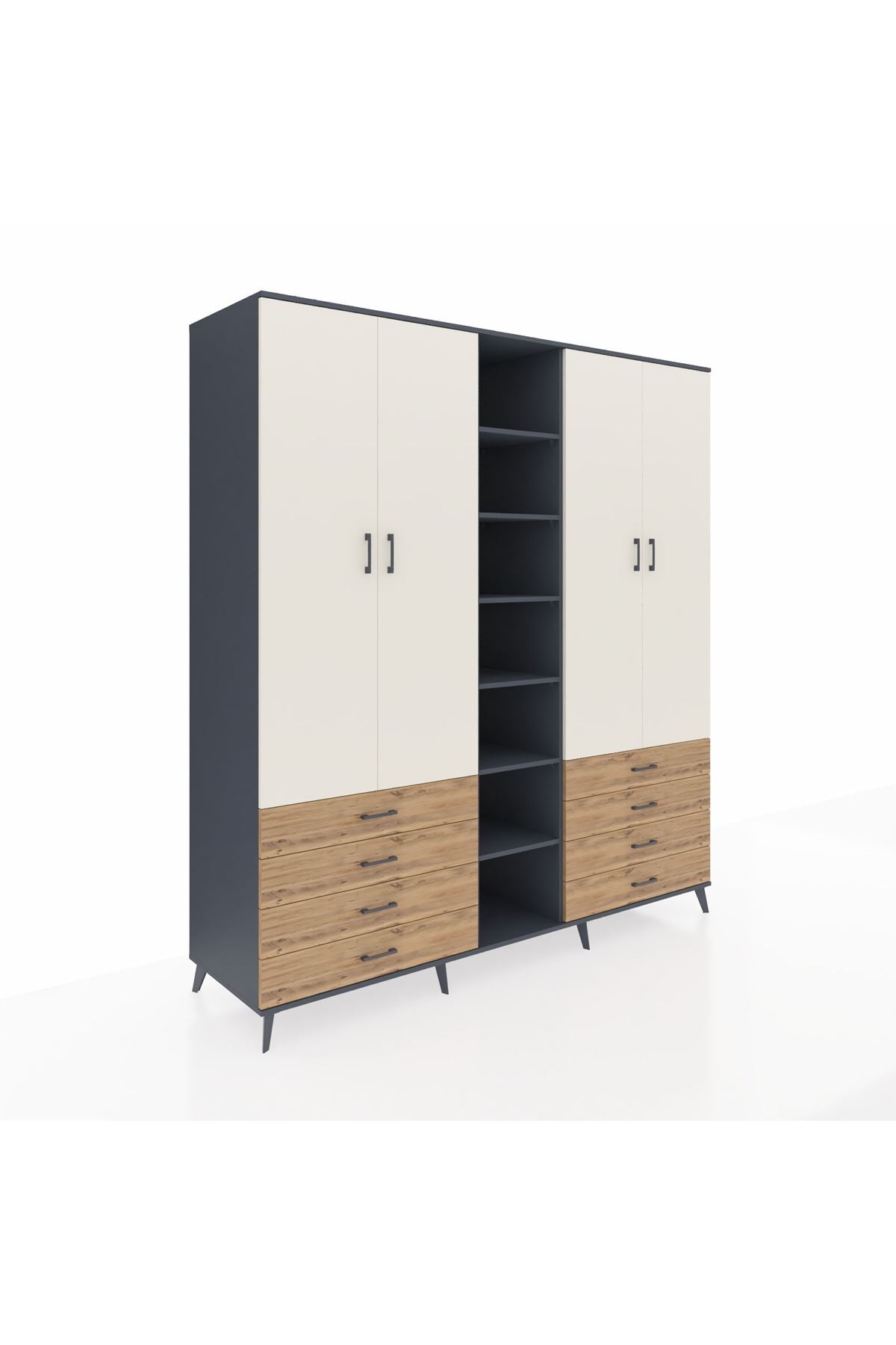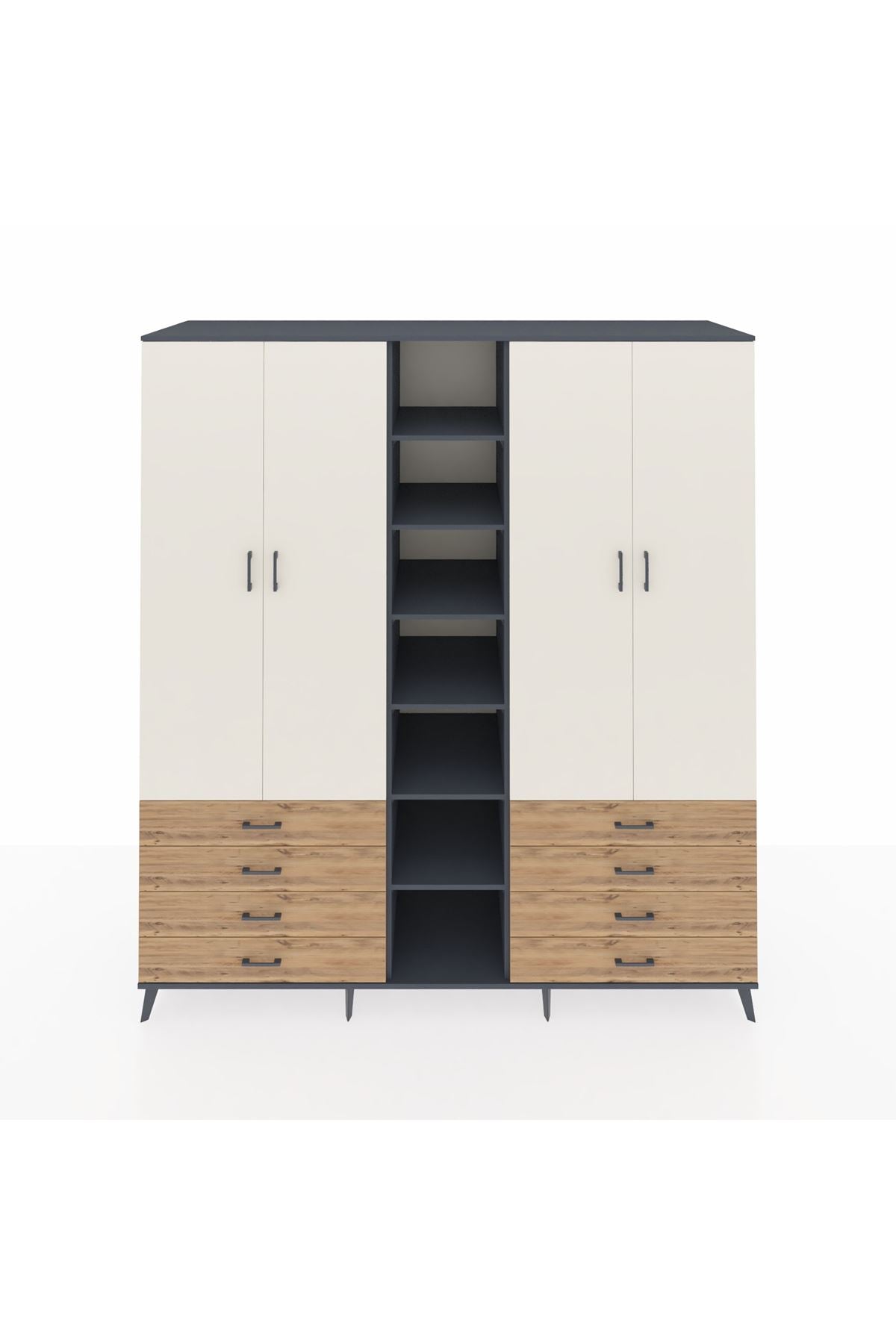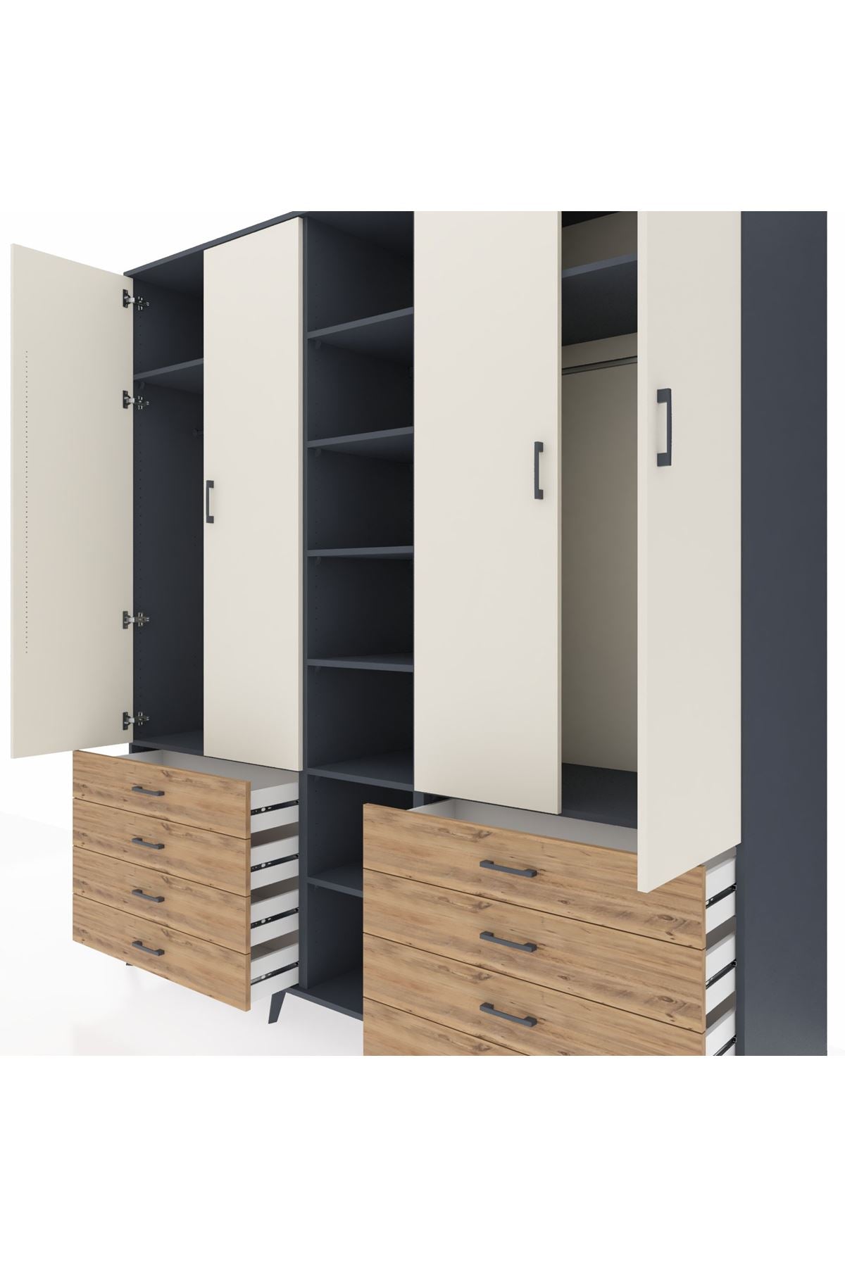 Kronos Dolap 10 Raflı 8 Çekmeceli 2 Askılı 220x59x243 Antrasit-Aytaşı/Çam
