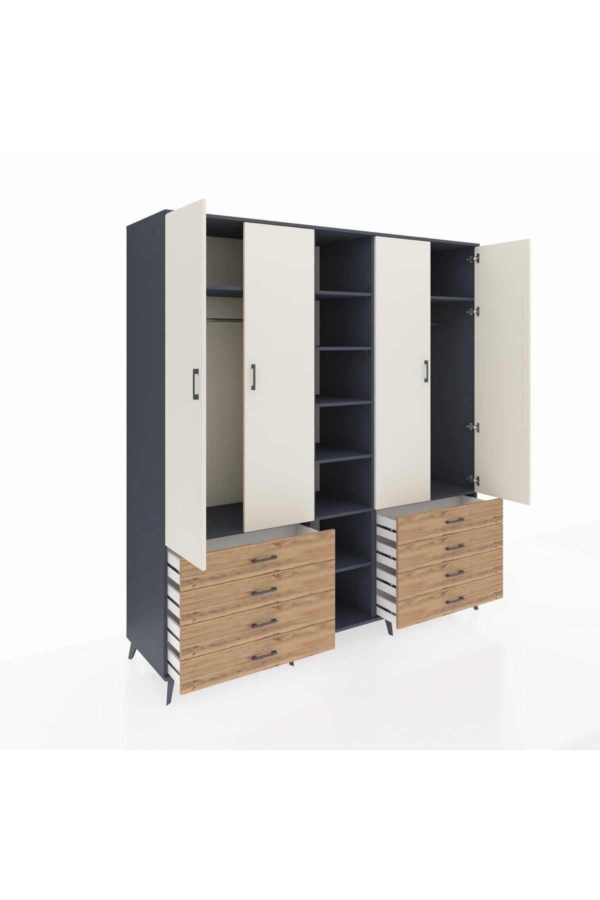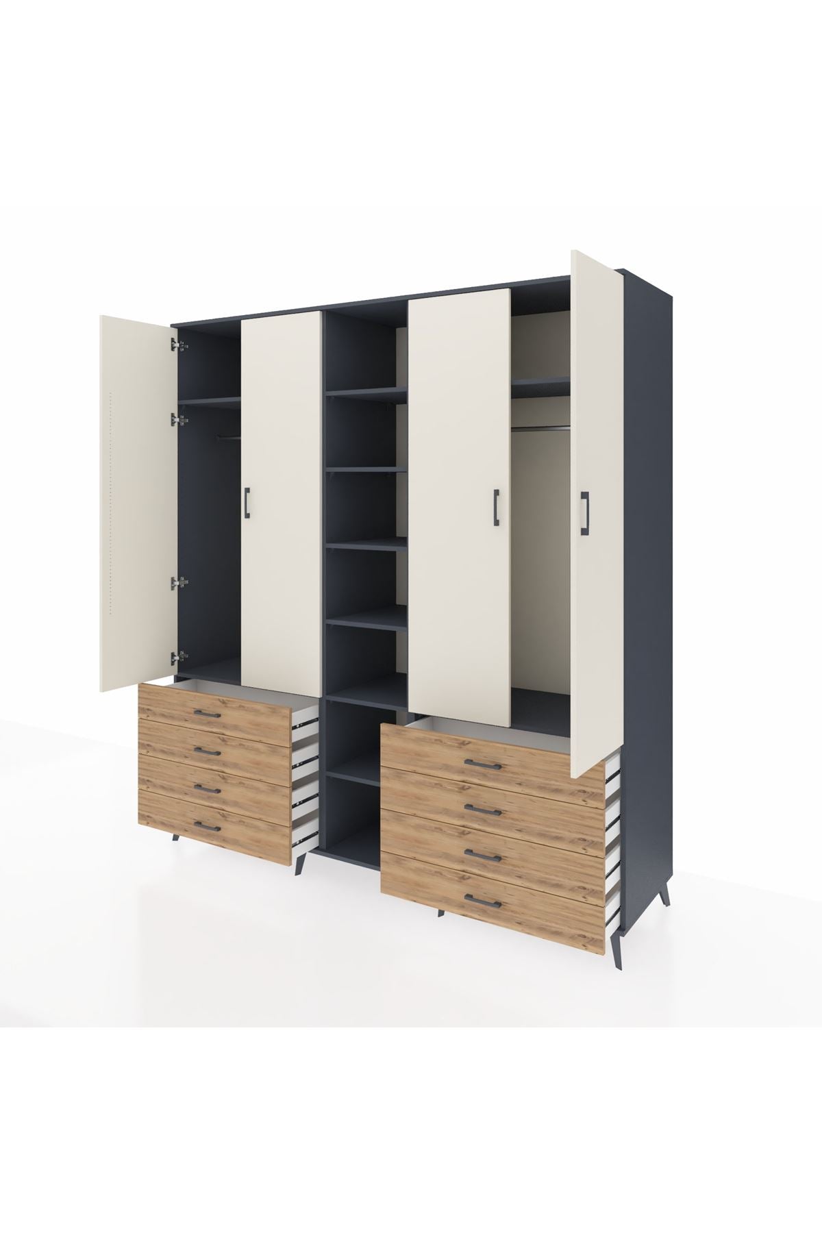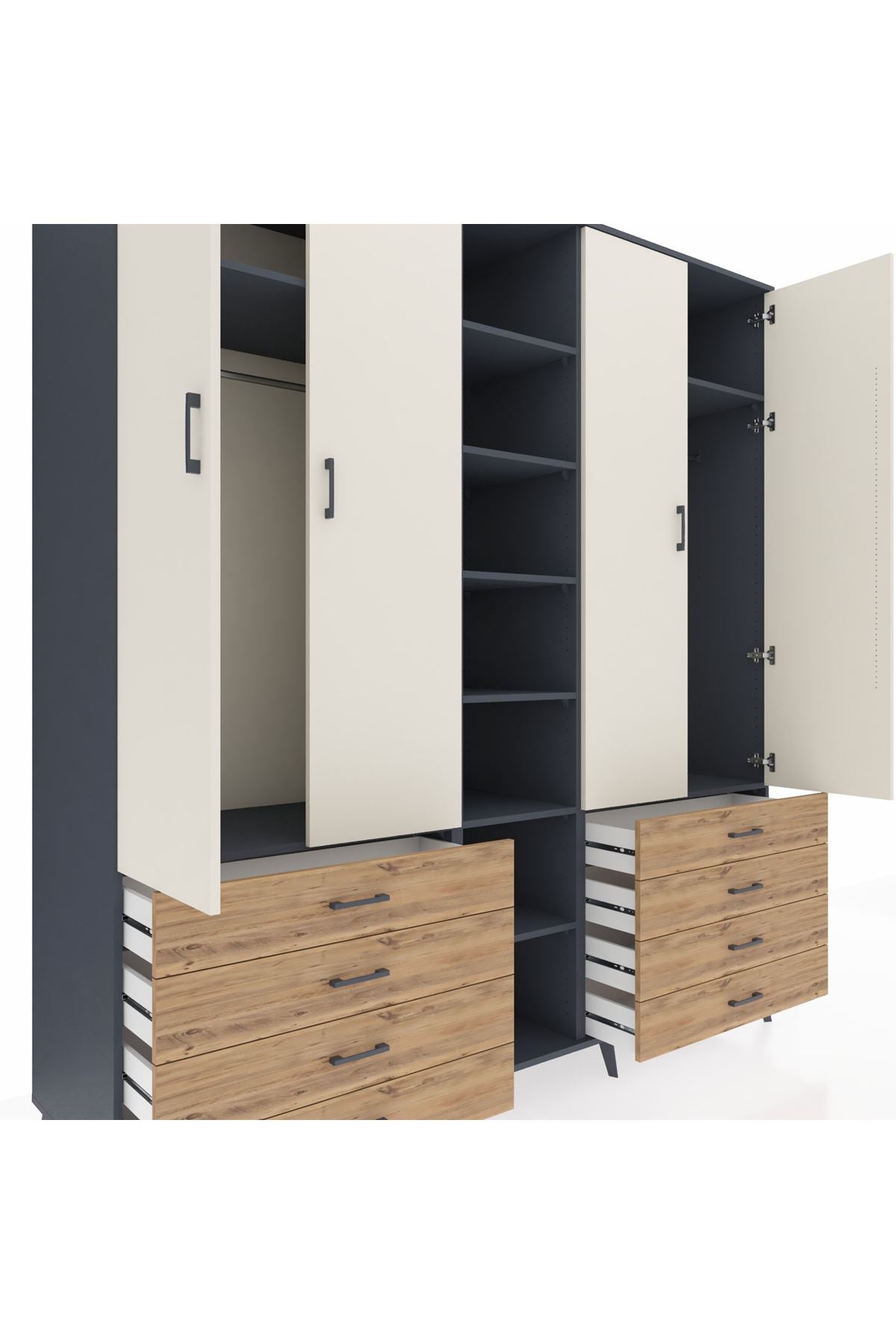 Kronos Dolap 10 Raflı 8 Çekmeceli 2 Askılı 220x59x243 Antrasit-Aytaşı/Çam