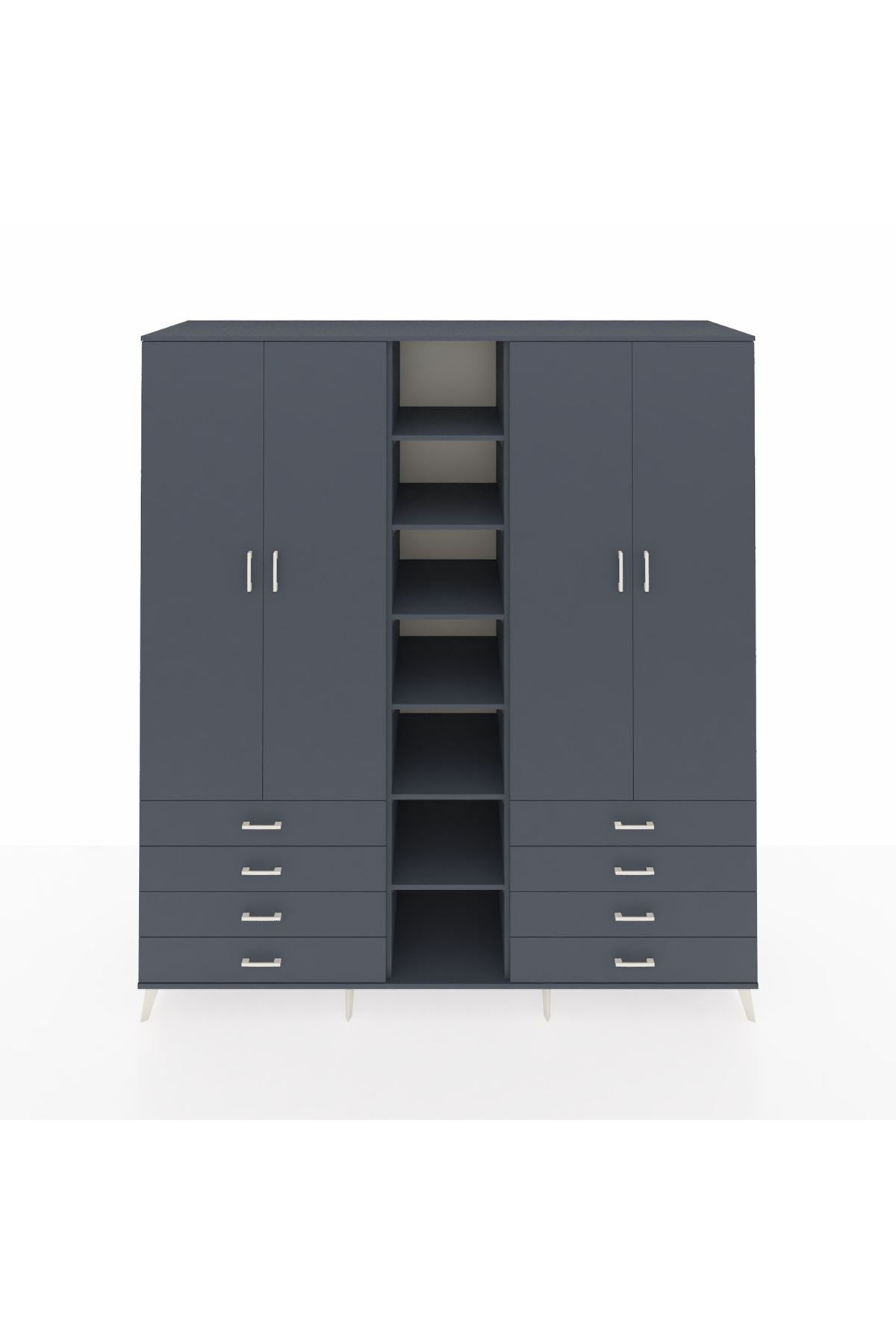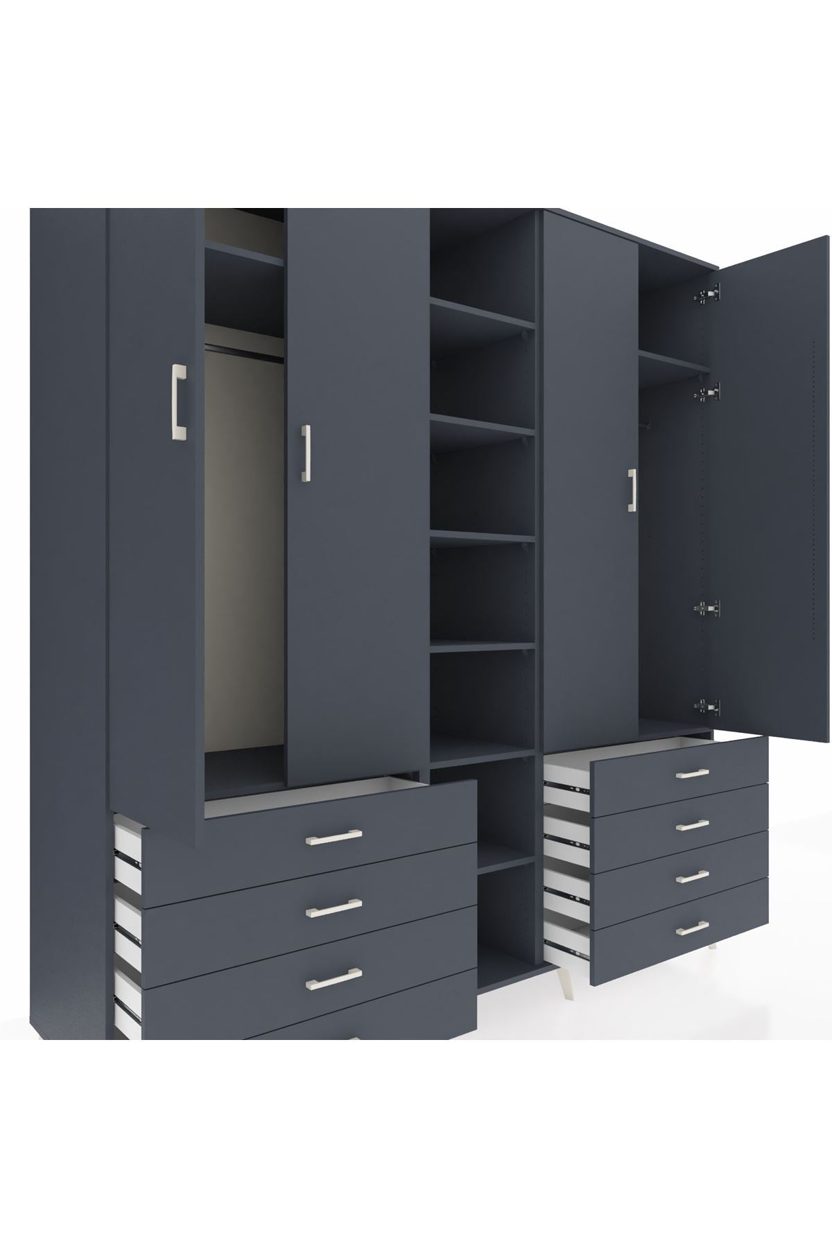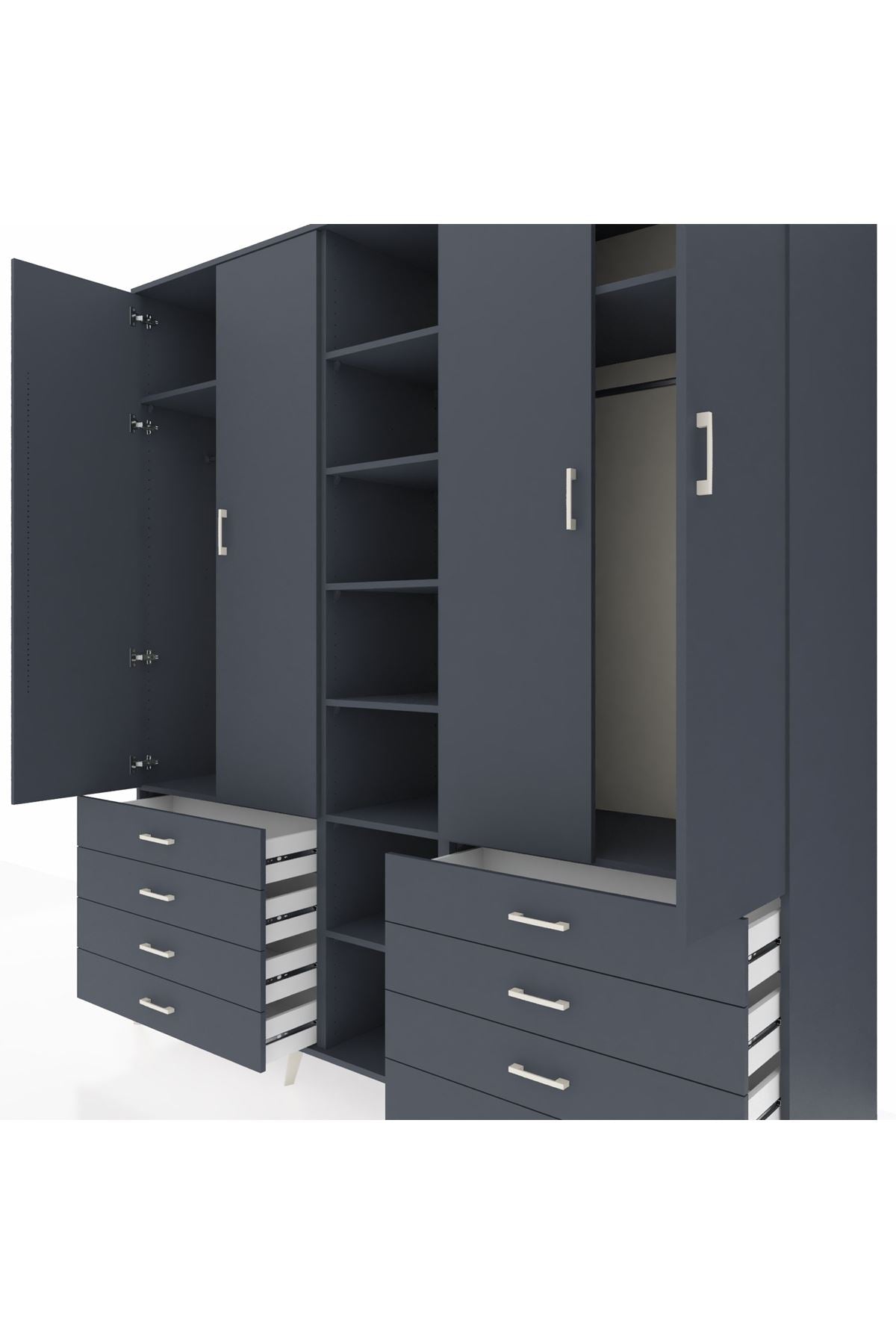 Kronos Dolap 10 Raflı 8 Çekmeceli 2 Askılı 220x59x243 Antrasit-Antrasit/Antrasit