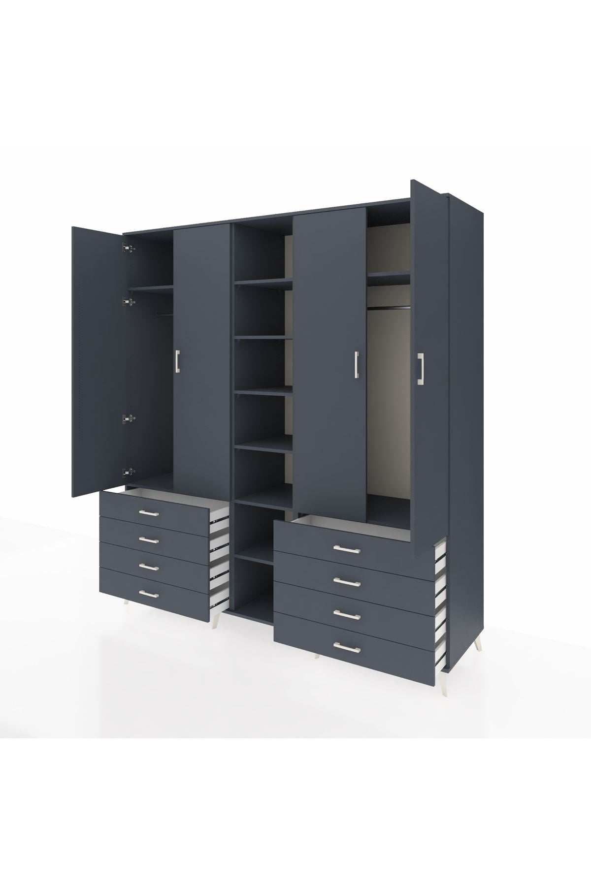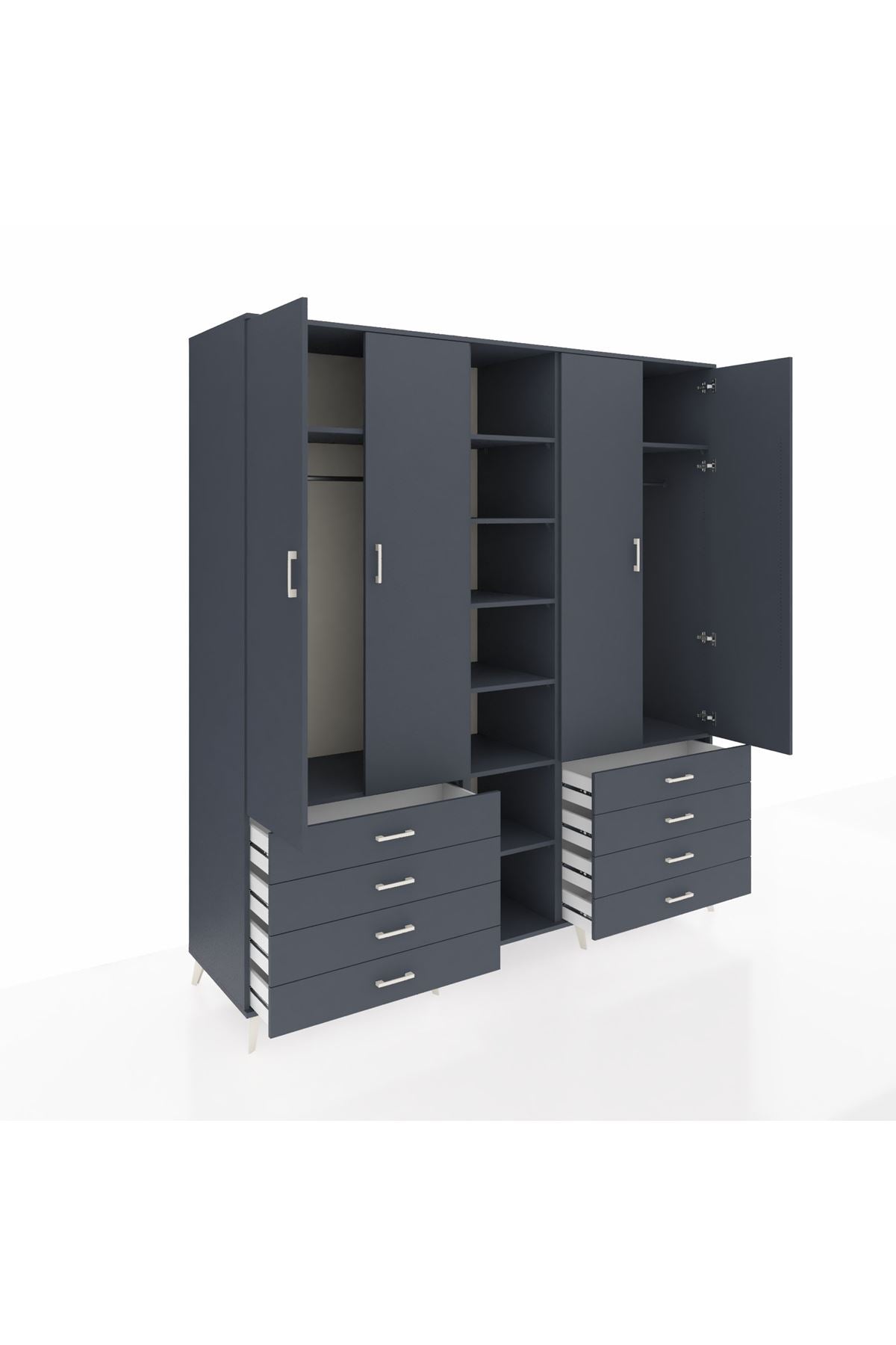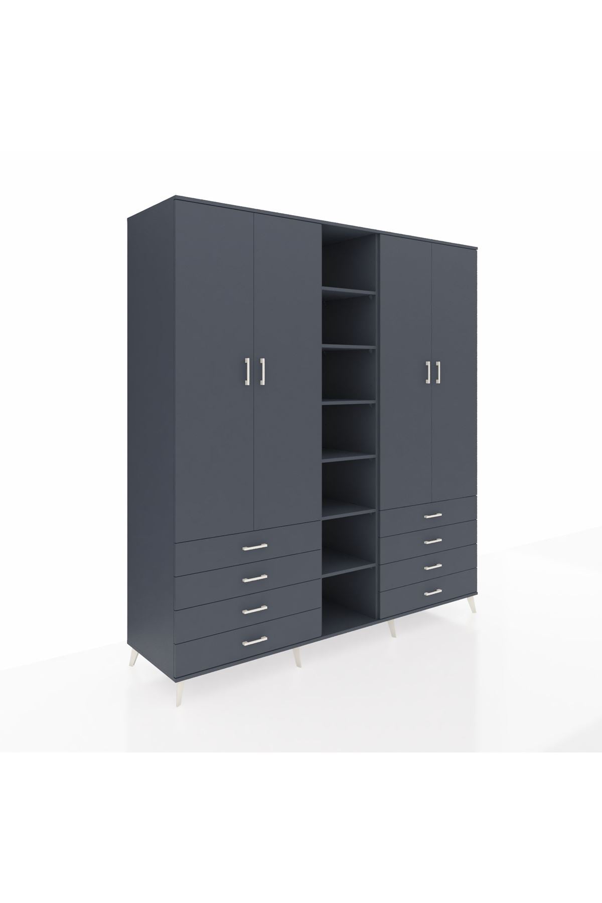 Kronos Dolap 10 Raflı 8 Çekmeceli 2 Askılı 220x59x243 Antrasit-Antrasit/Antrasit