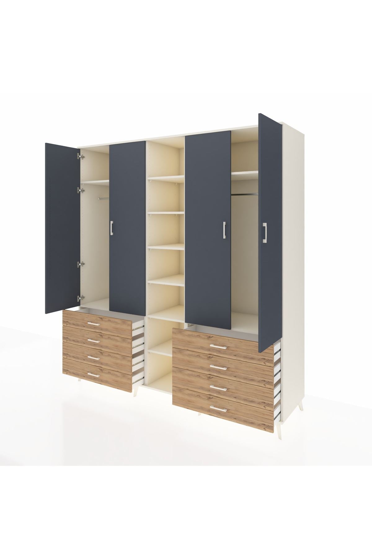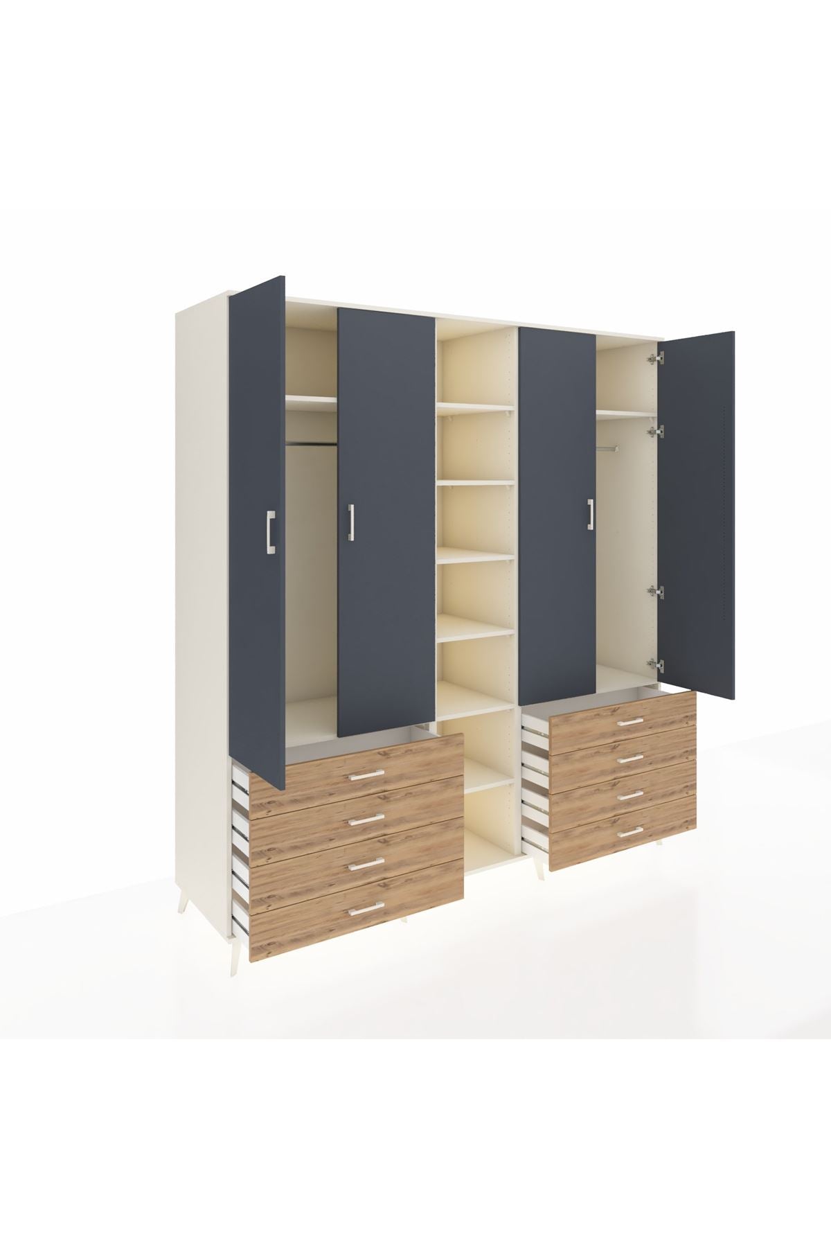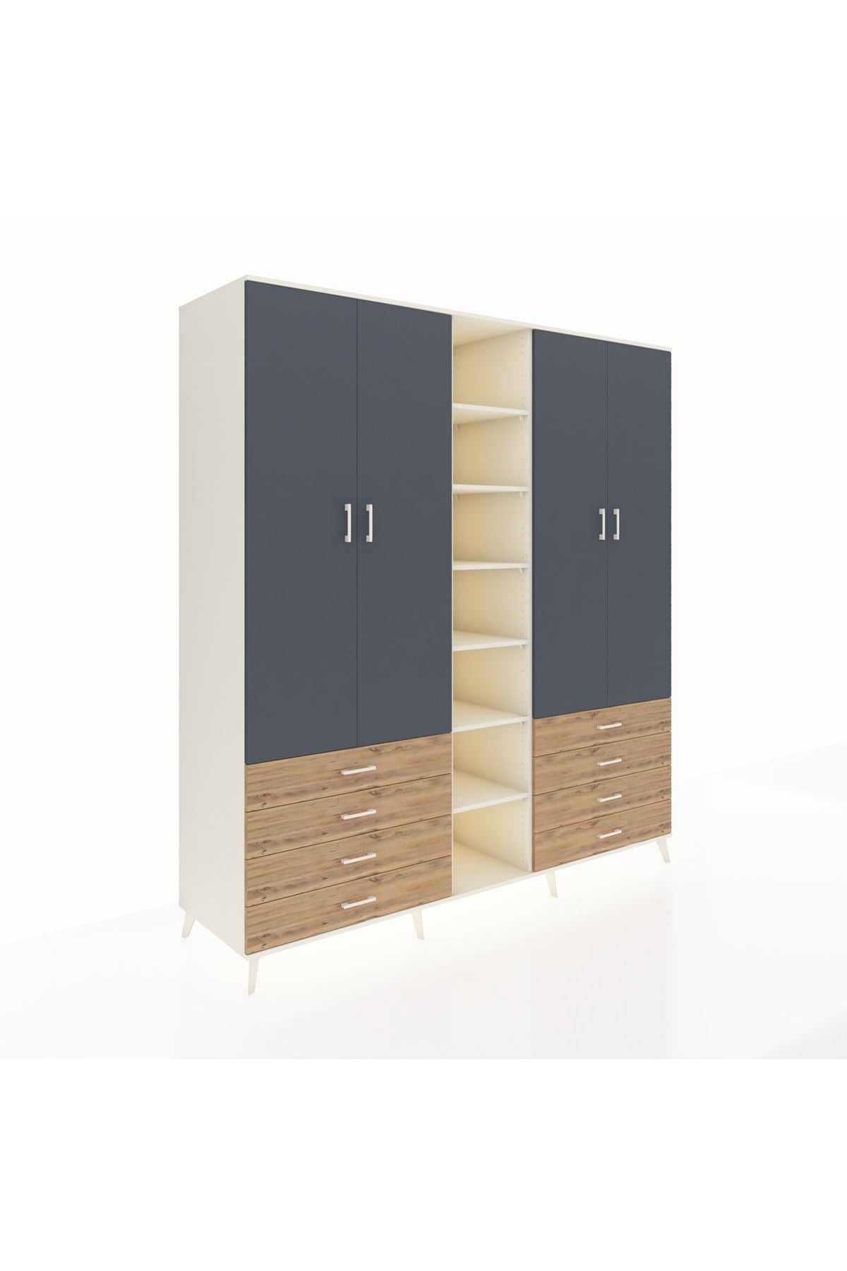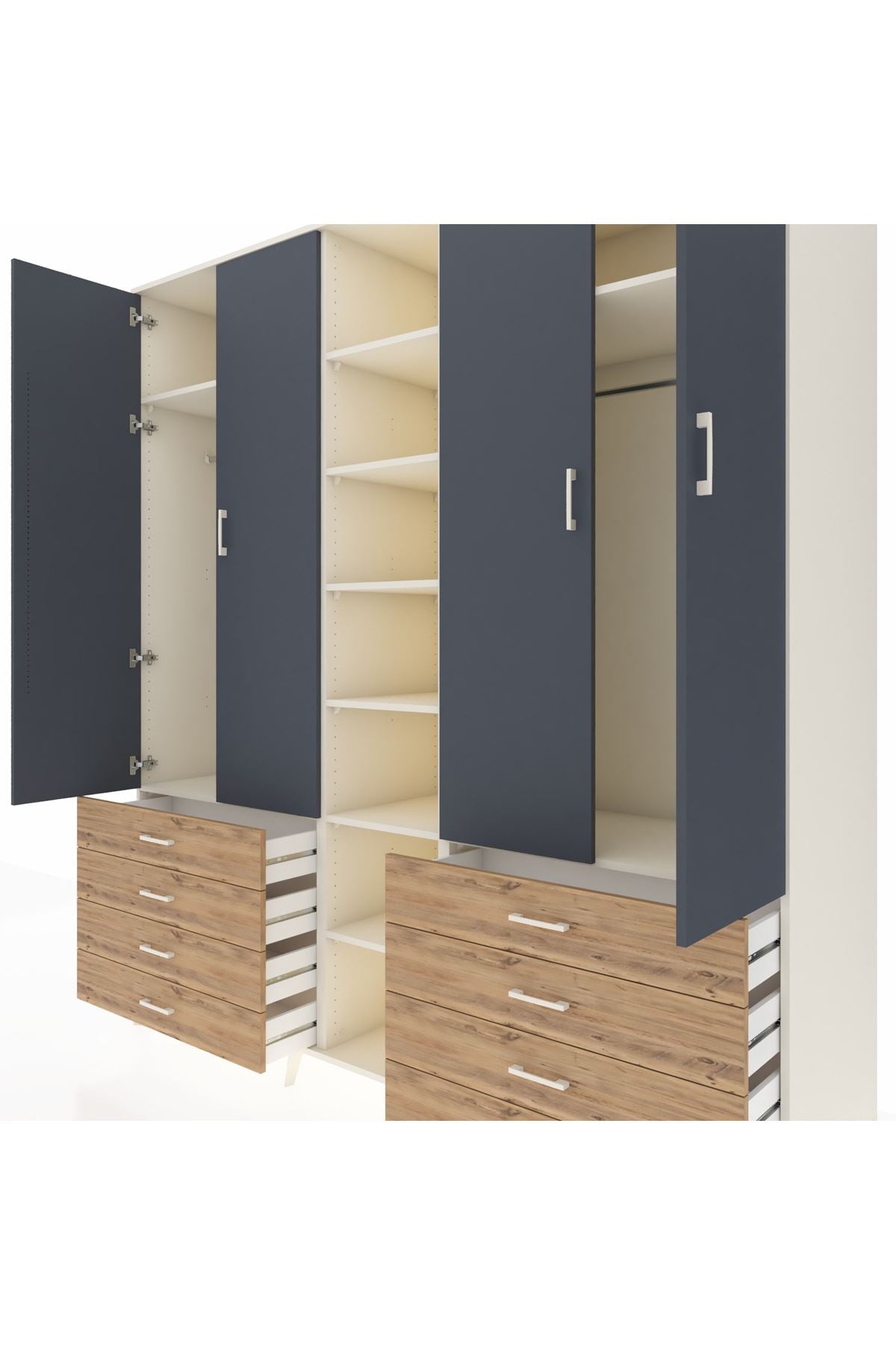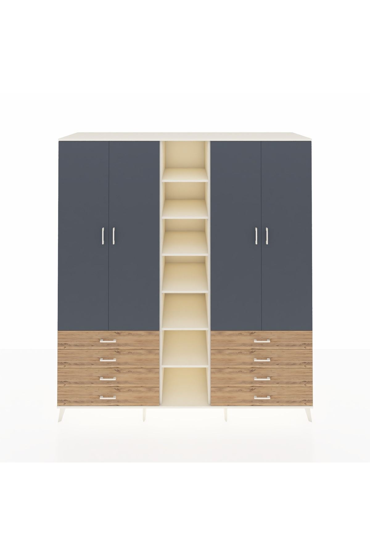 Kronos Dolap 10 Raflı 8 Çekmeceli 2 Askılı 220x59x243 Aytaşı-Antrasit/Çam