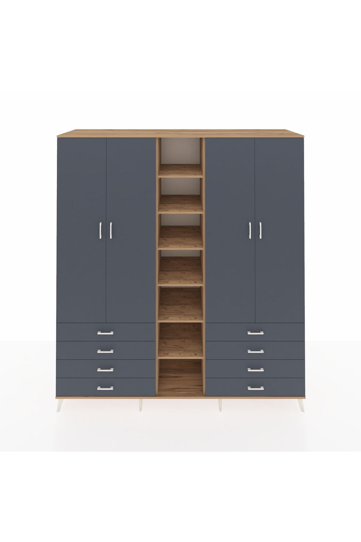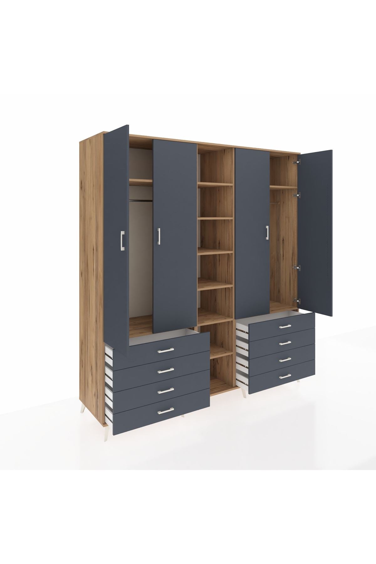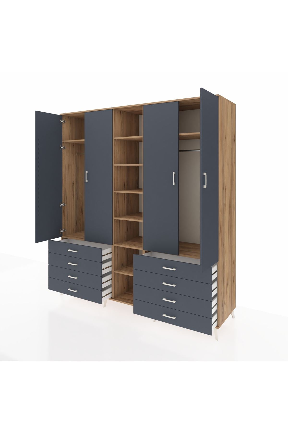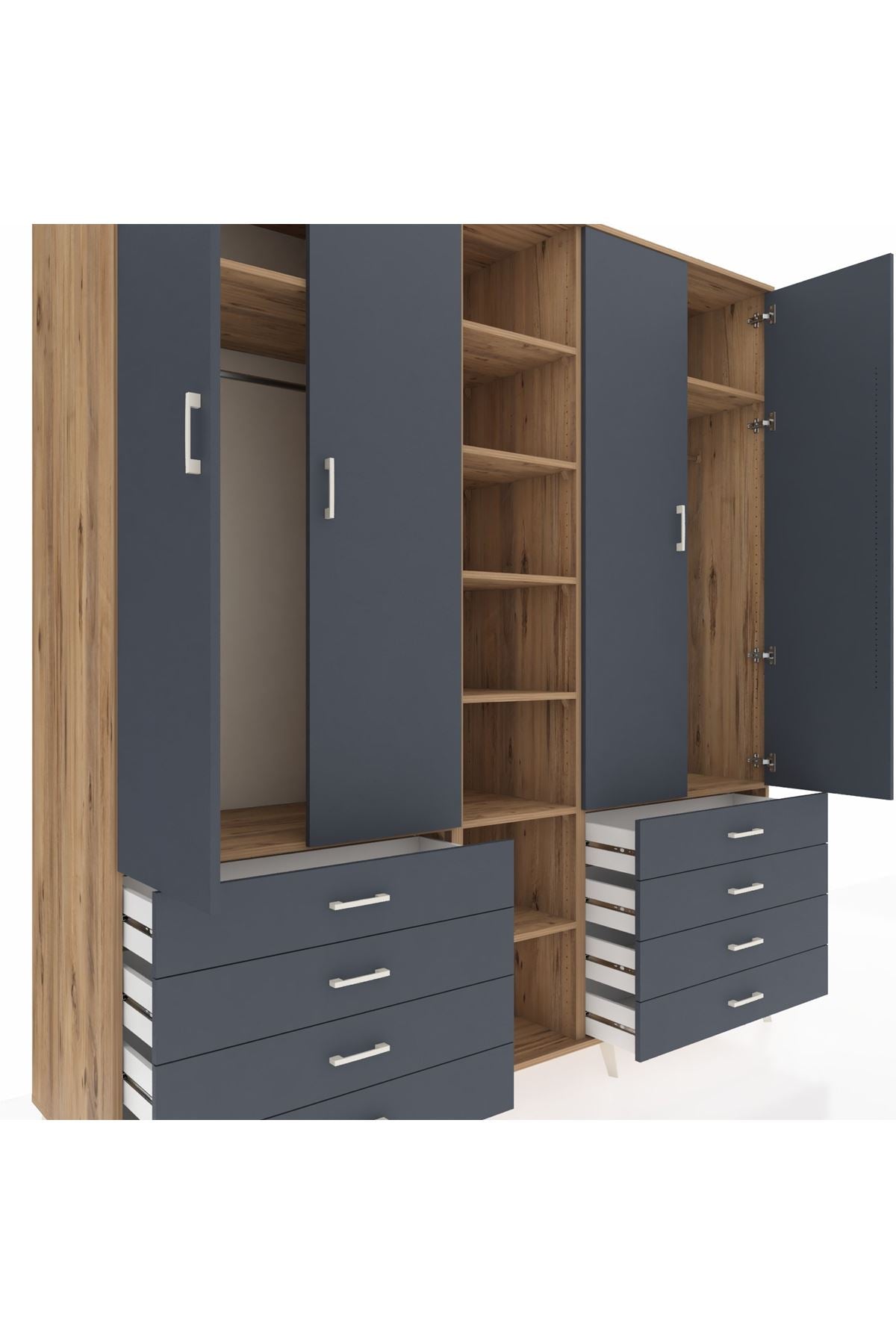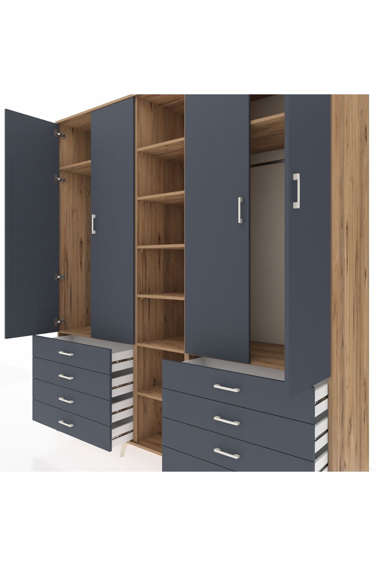 Kronos Dolap 10 Raflı 8 Çekmeceli 2 Askılı 220x59x243 Çam-Antrasit/Antrasit