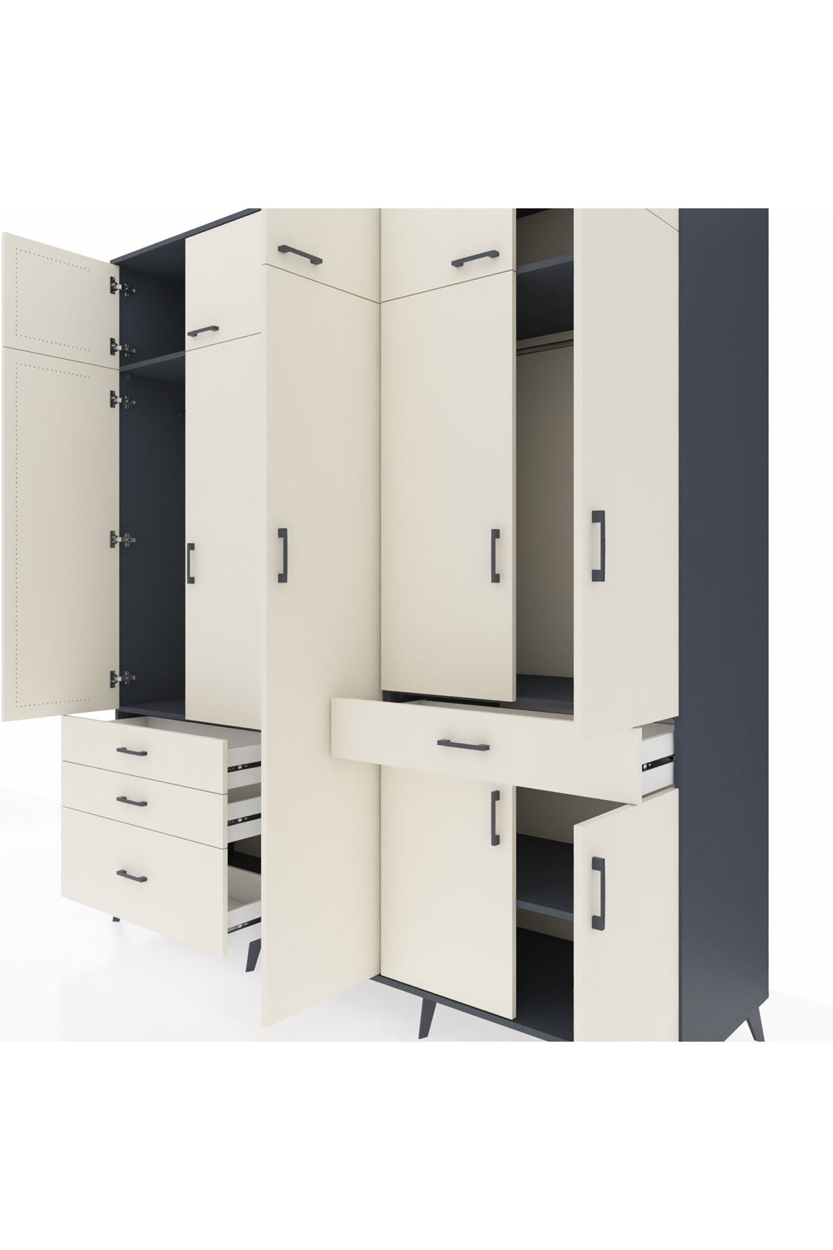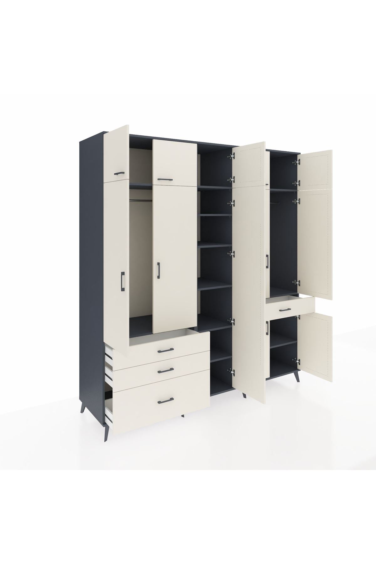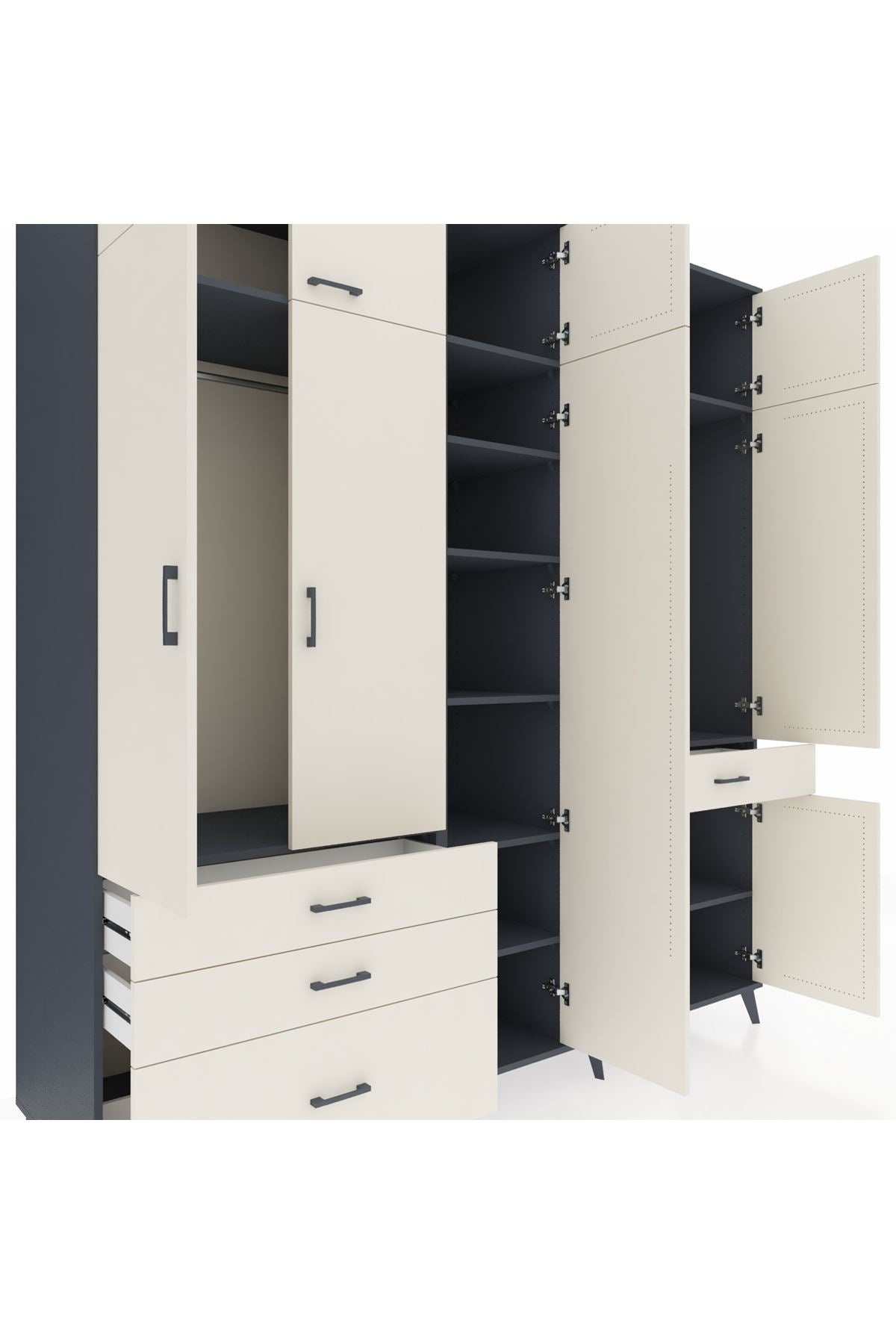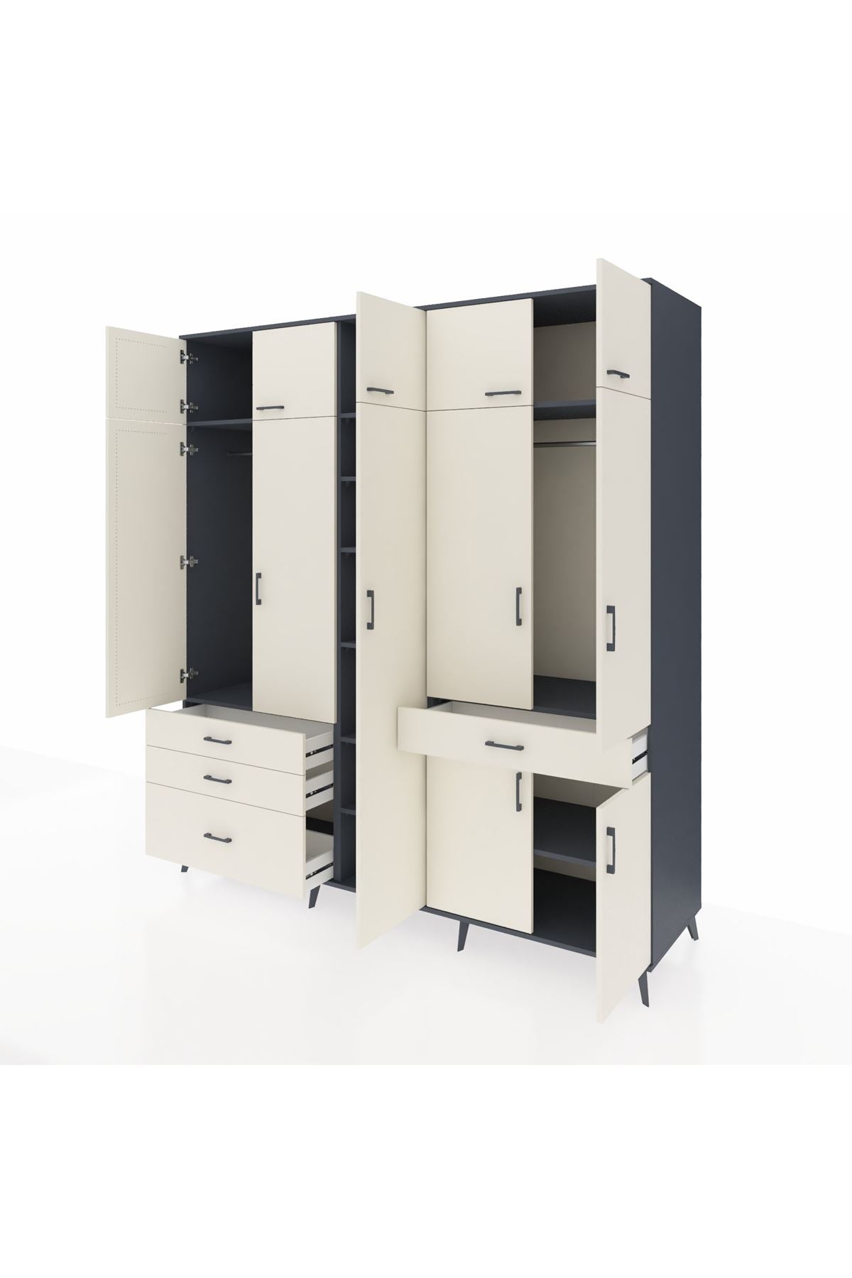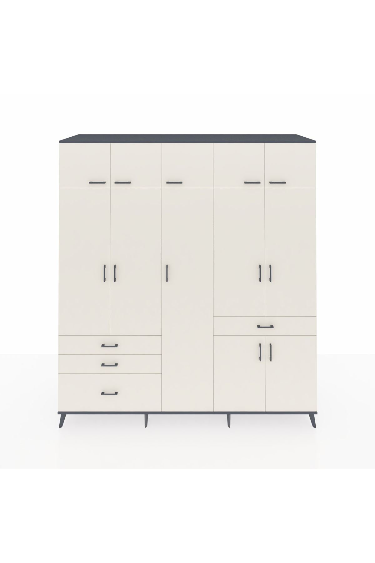 Kronos Dolap 11 Raflı 4 Çekmeceli 2 Askılı 220x59x243 Antrasit-Aytaşı/Aytaşı