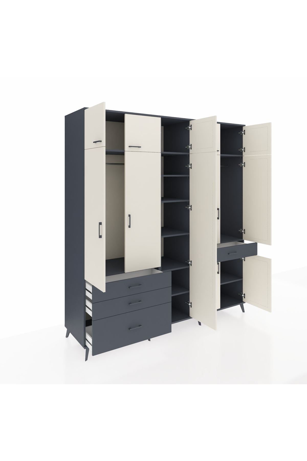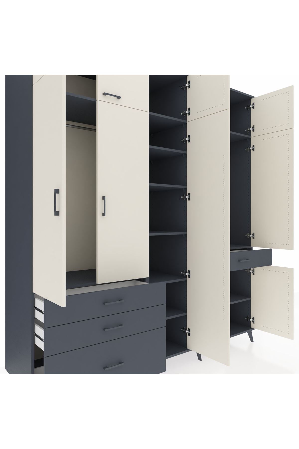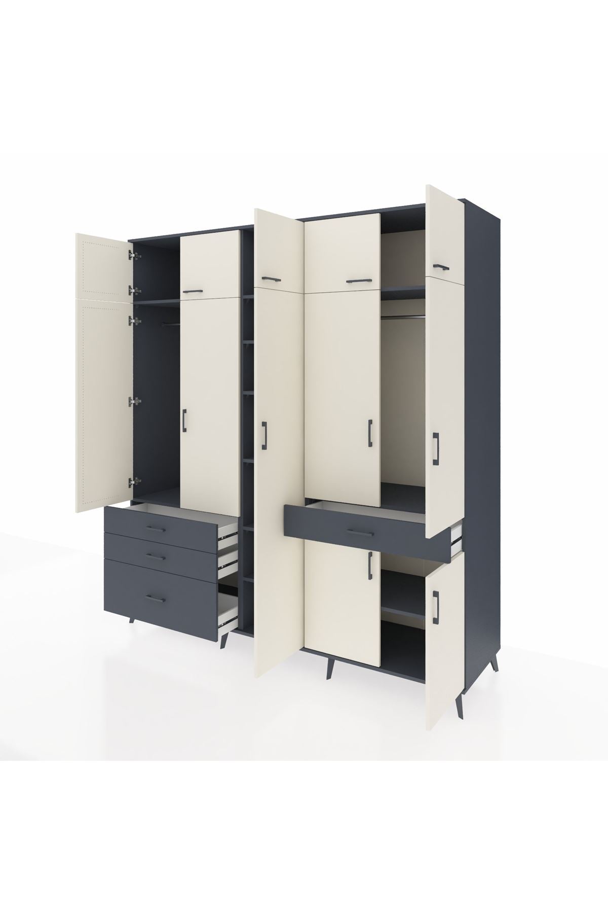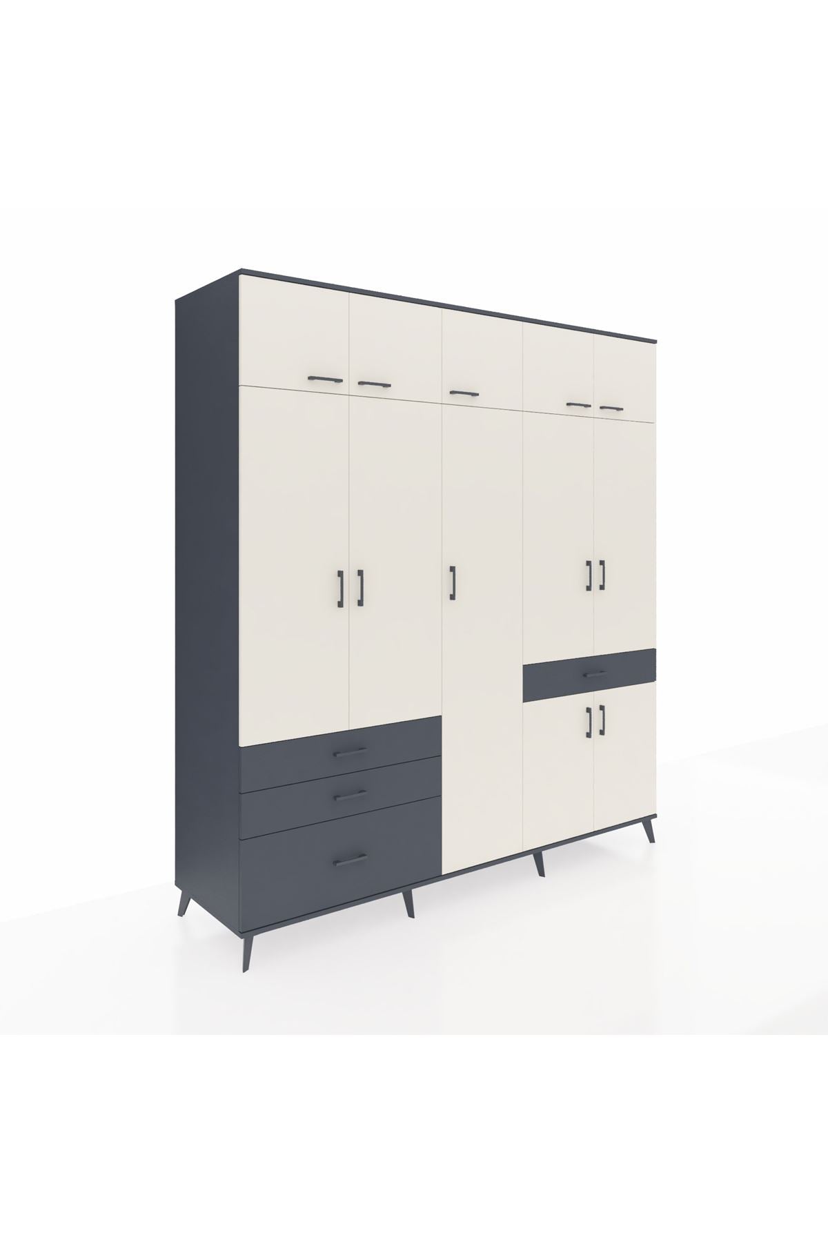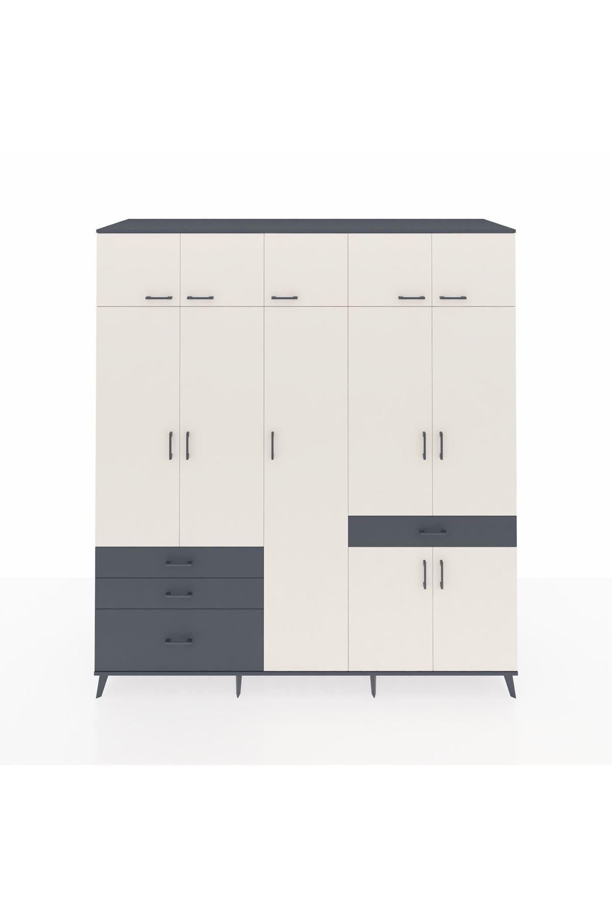 Kronos Dolap 11 Raflı 4 Çekmeceli 2 Askılı 220x59x243 Antrasit-Aytaşı/Antrasit