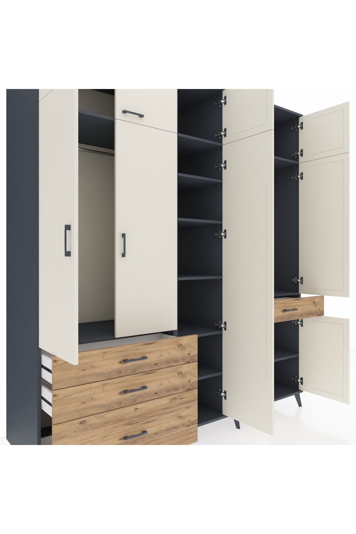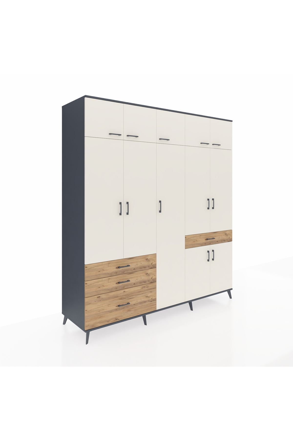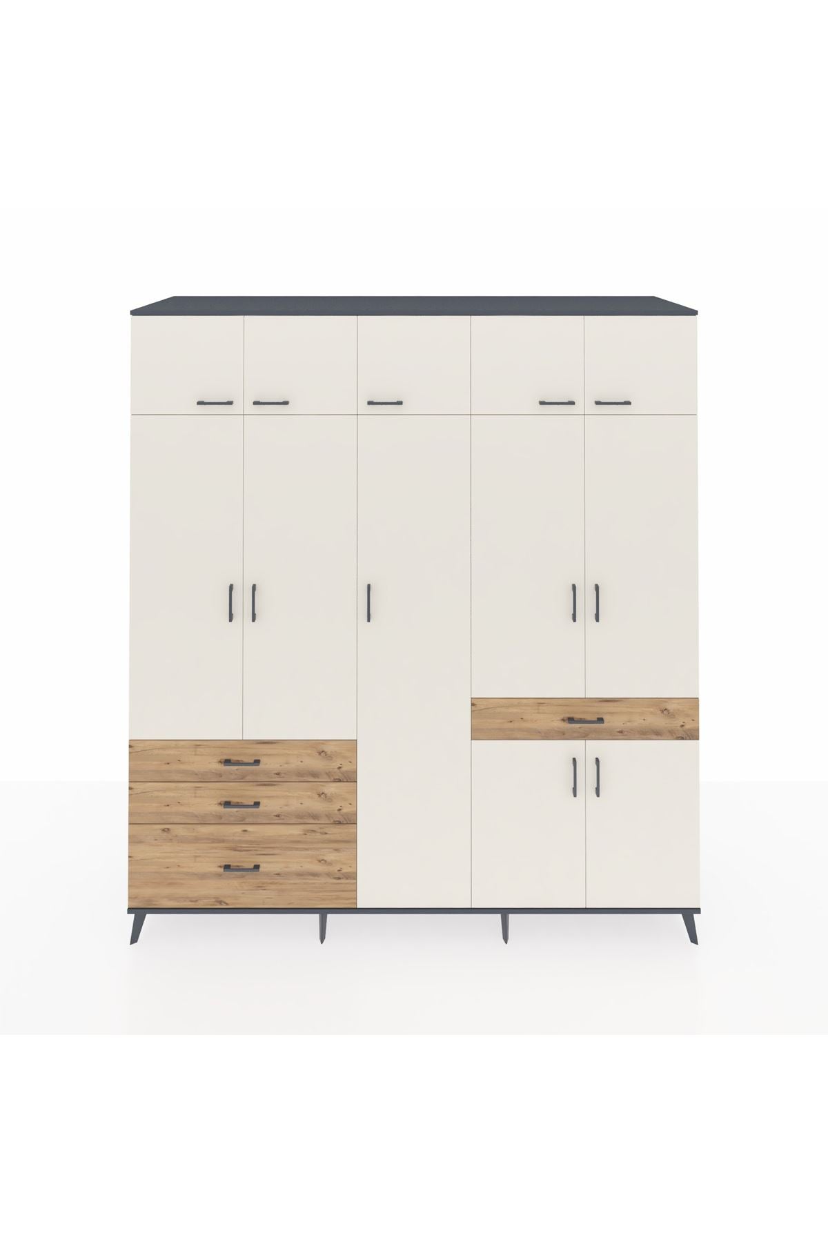 Kronos Dolap 11 Raflı 4 Çekmeceli 2 Askılı 220x59x243 Antrasit-Aytaşı/Çam