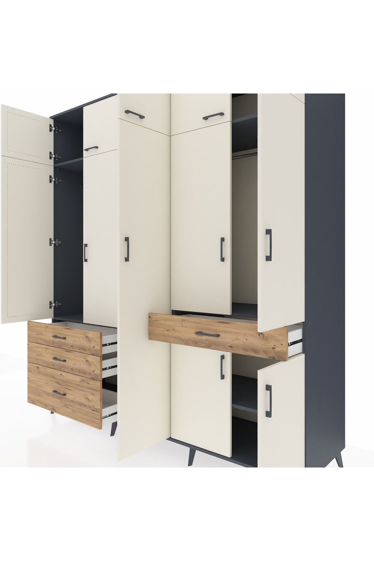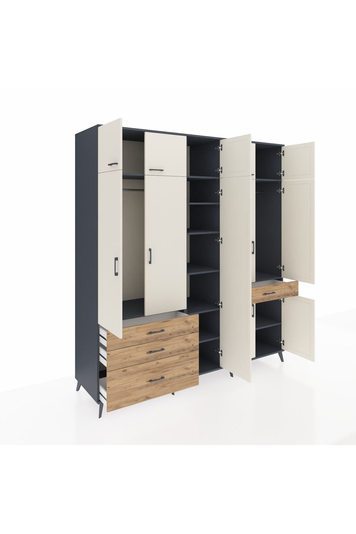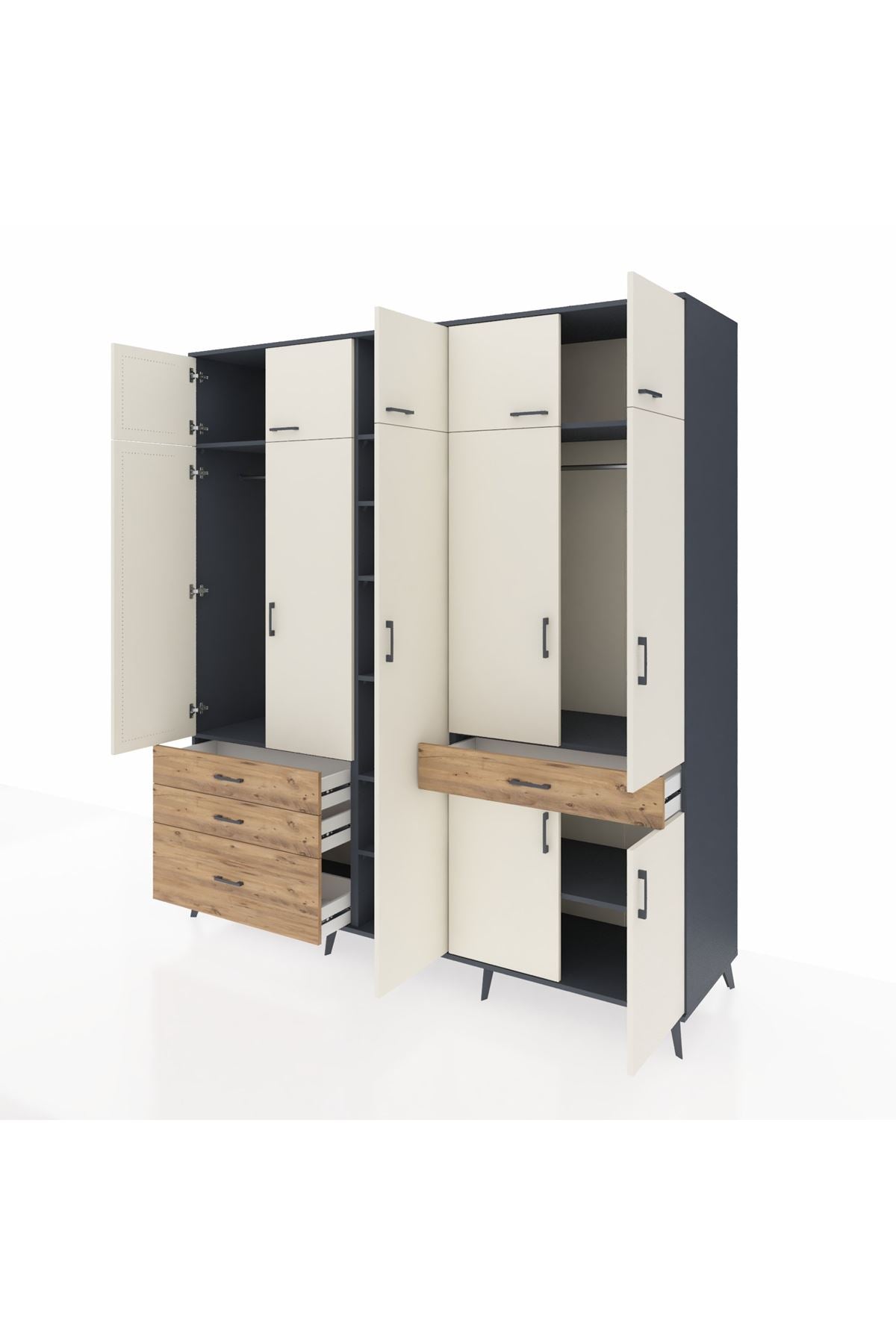 Kronos Dolap 11 Raflı 4 Çekmeceli 2 Askılı 220x59x243 Antrasit-Aytaşı/Çam