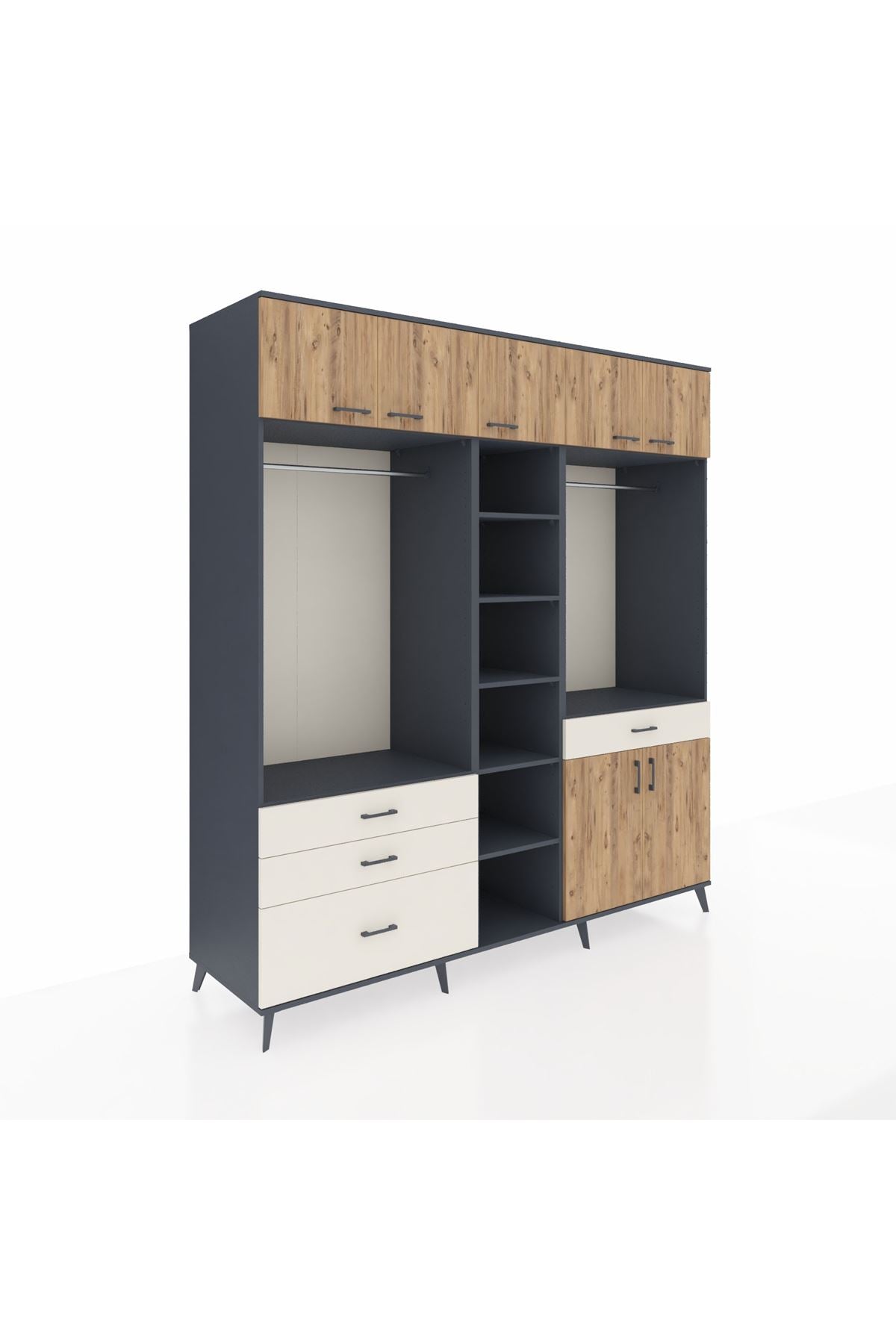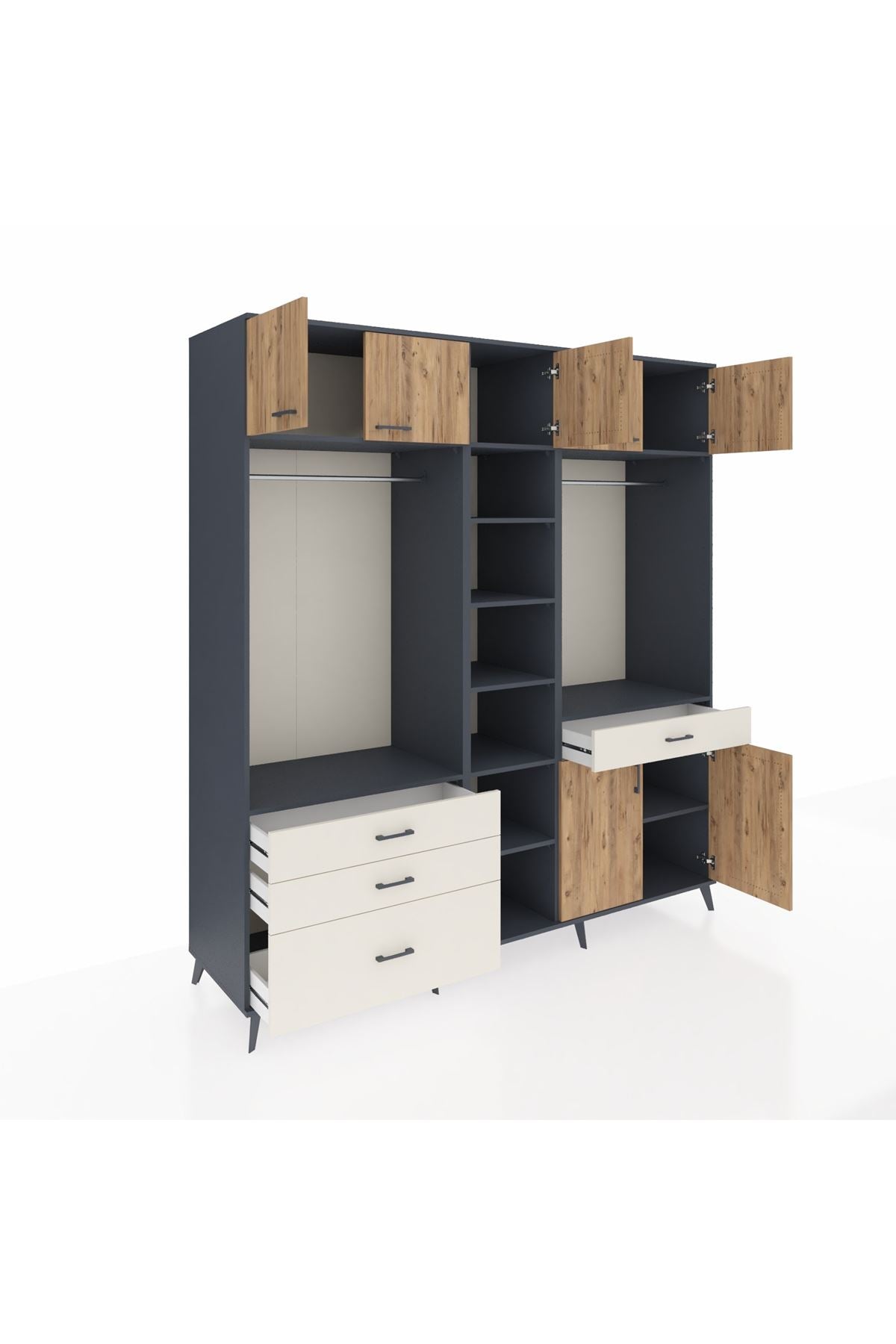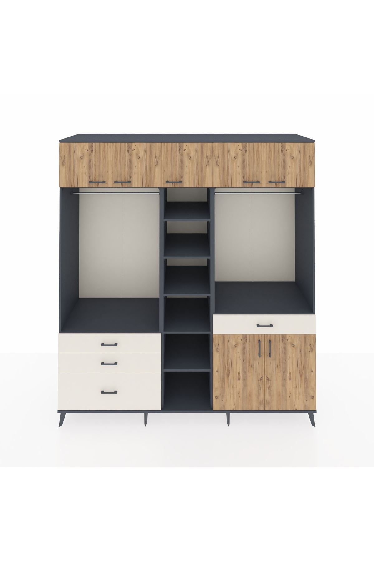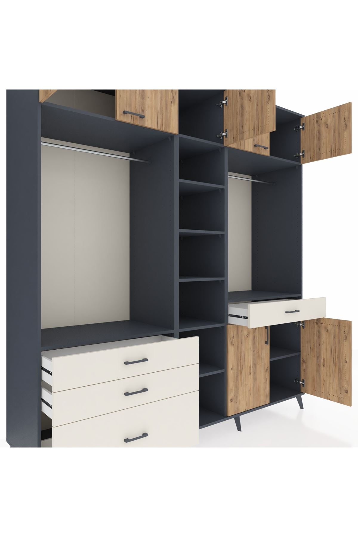 Kronos Dolap 11 Raflı 4 Çekmeceli 2 Askılı 220x59x243 Antrasit-Çam/Aytaşı