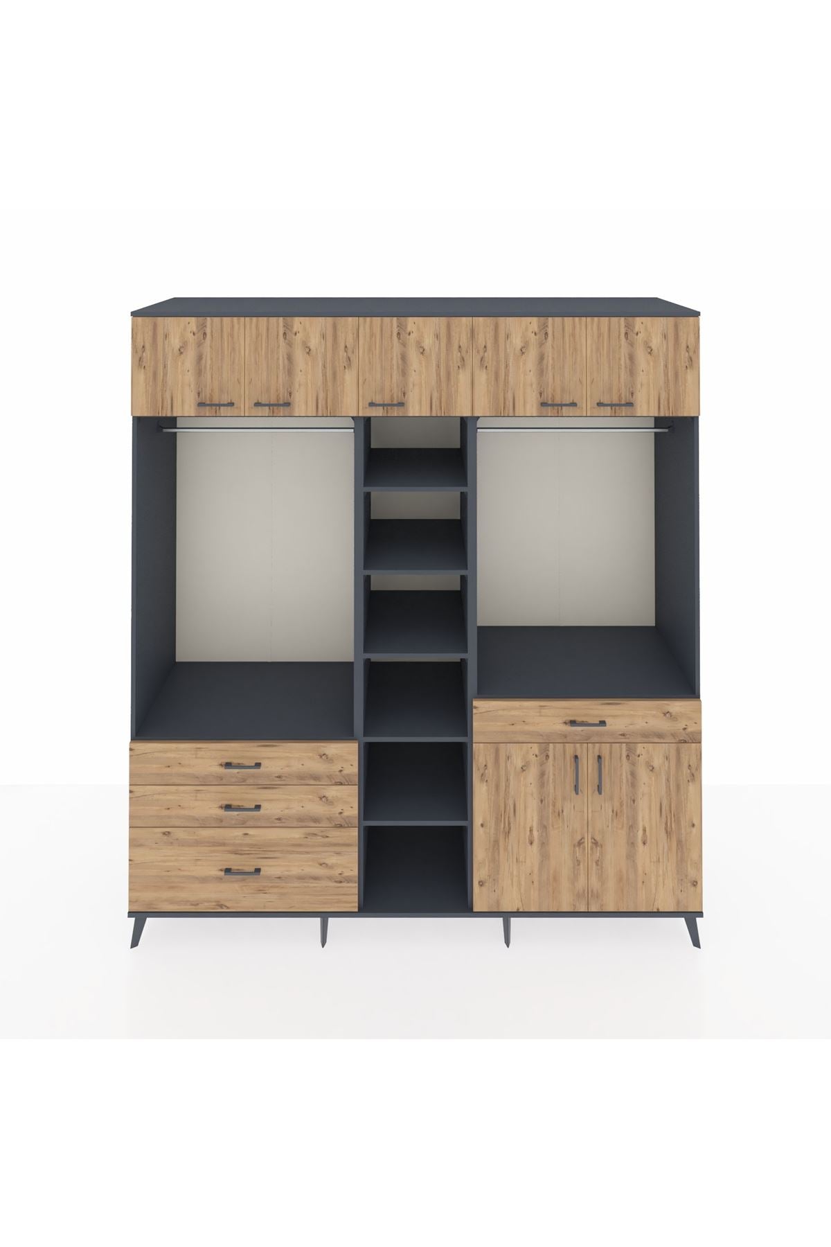 Kronos Dolap 11 Raflı 4 Çekmeceli 2 Askılı 220x59x243 Antrasit-Çam/Çam