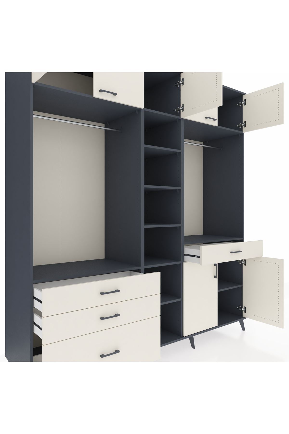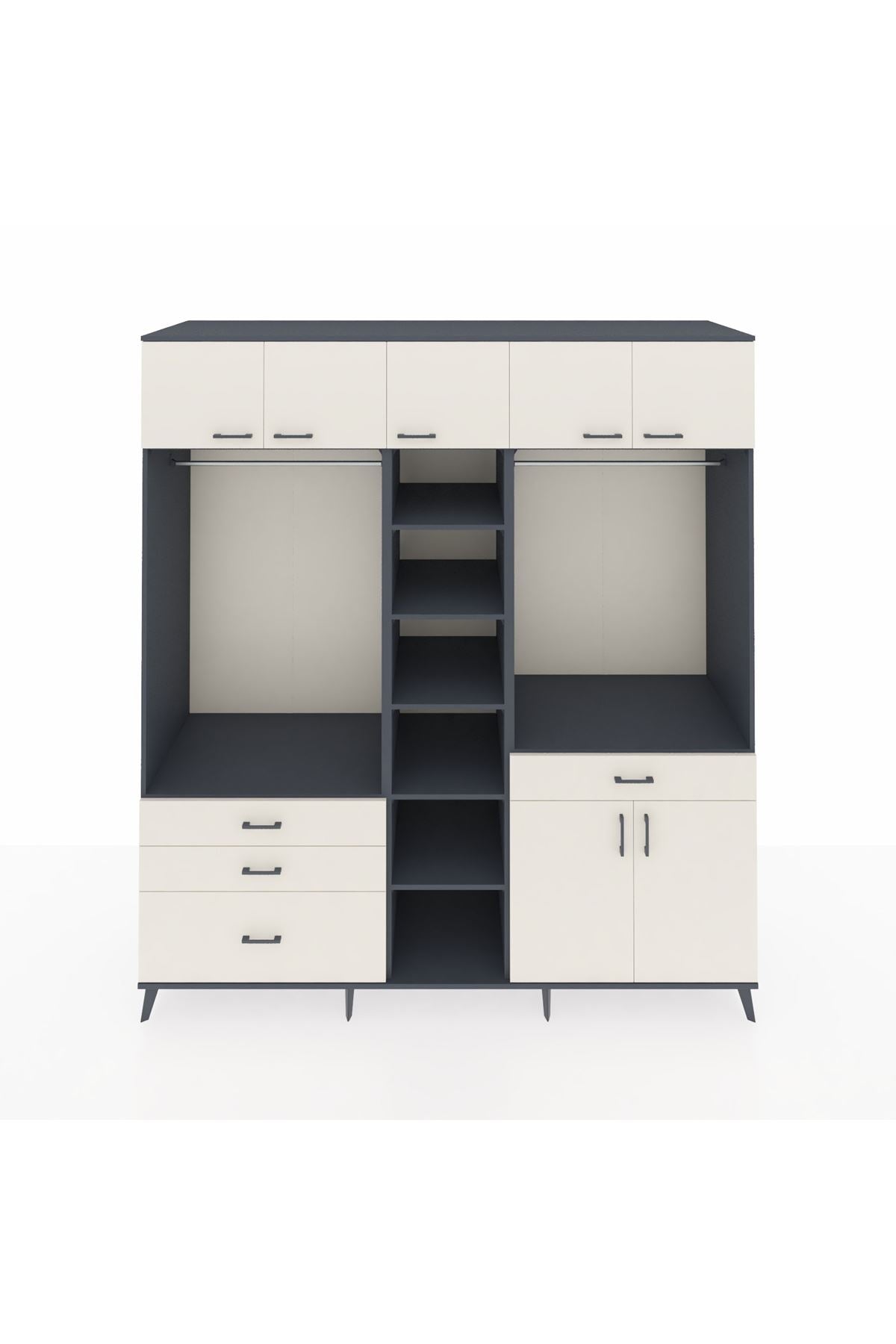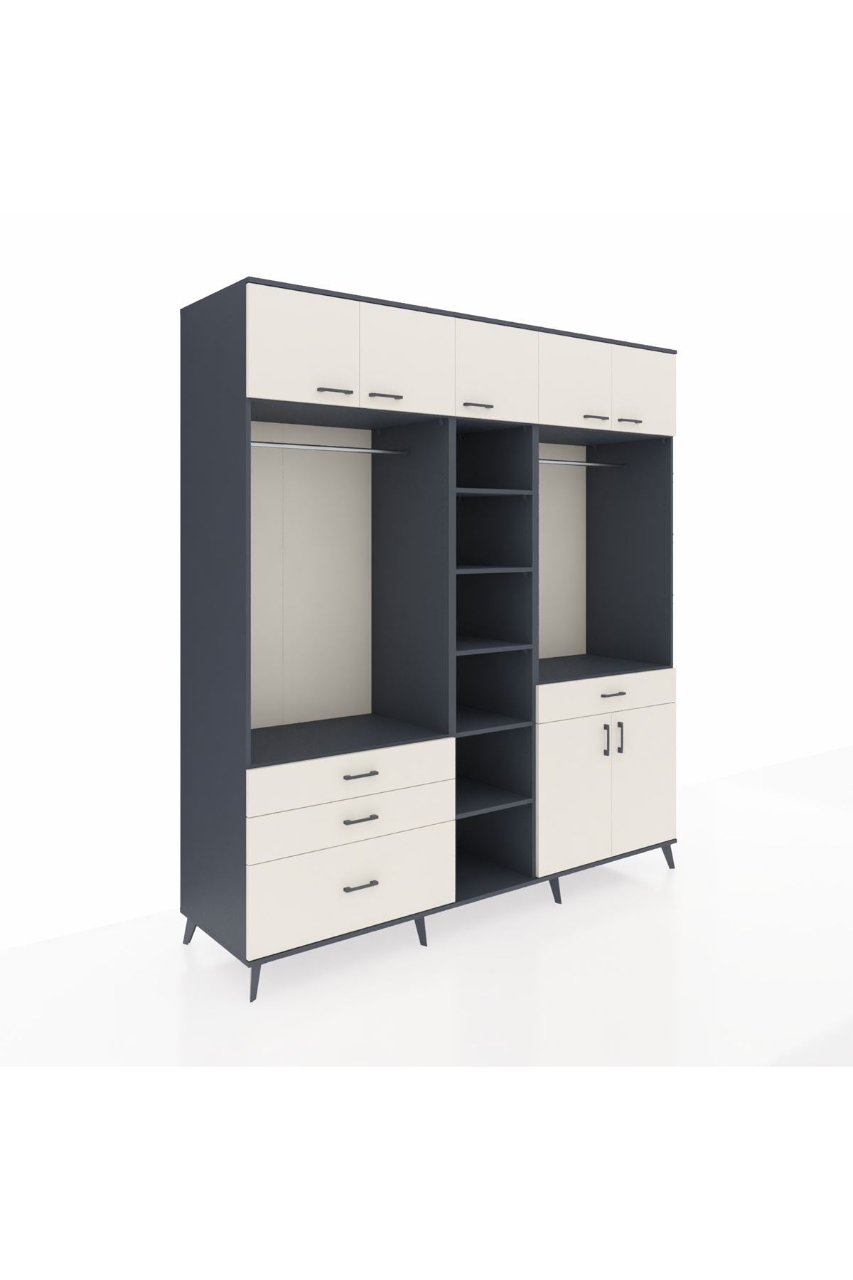 Kronos Dolap 11 Raflı 4 Çekmeceli 2 Askılı 220x59x243 Antrasit-Aytaşı/Aytaşı