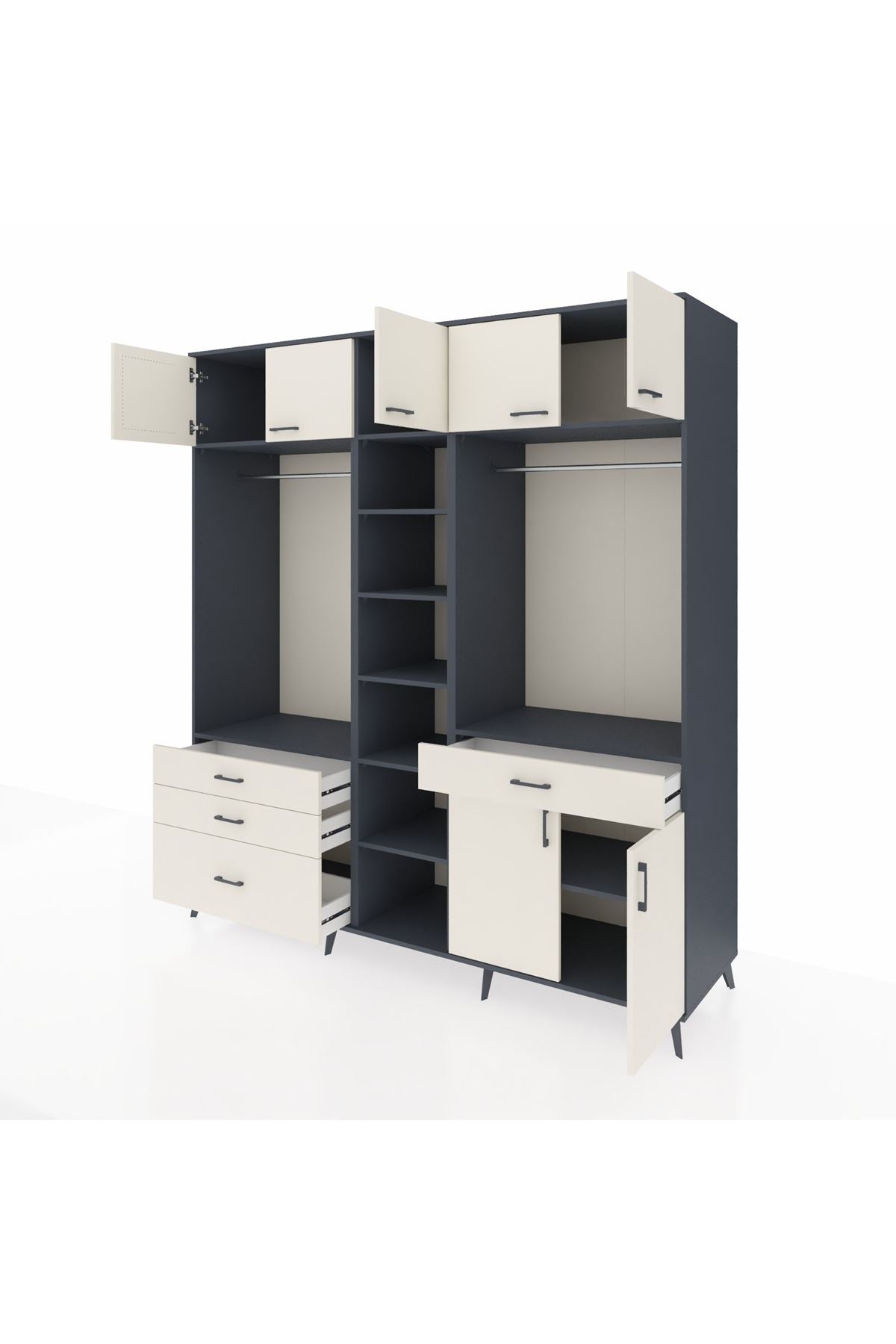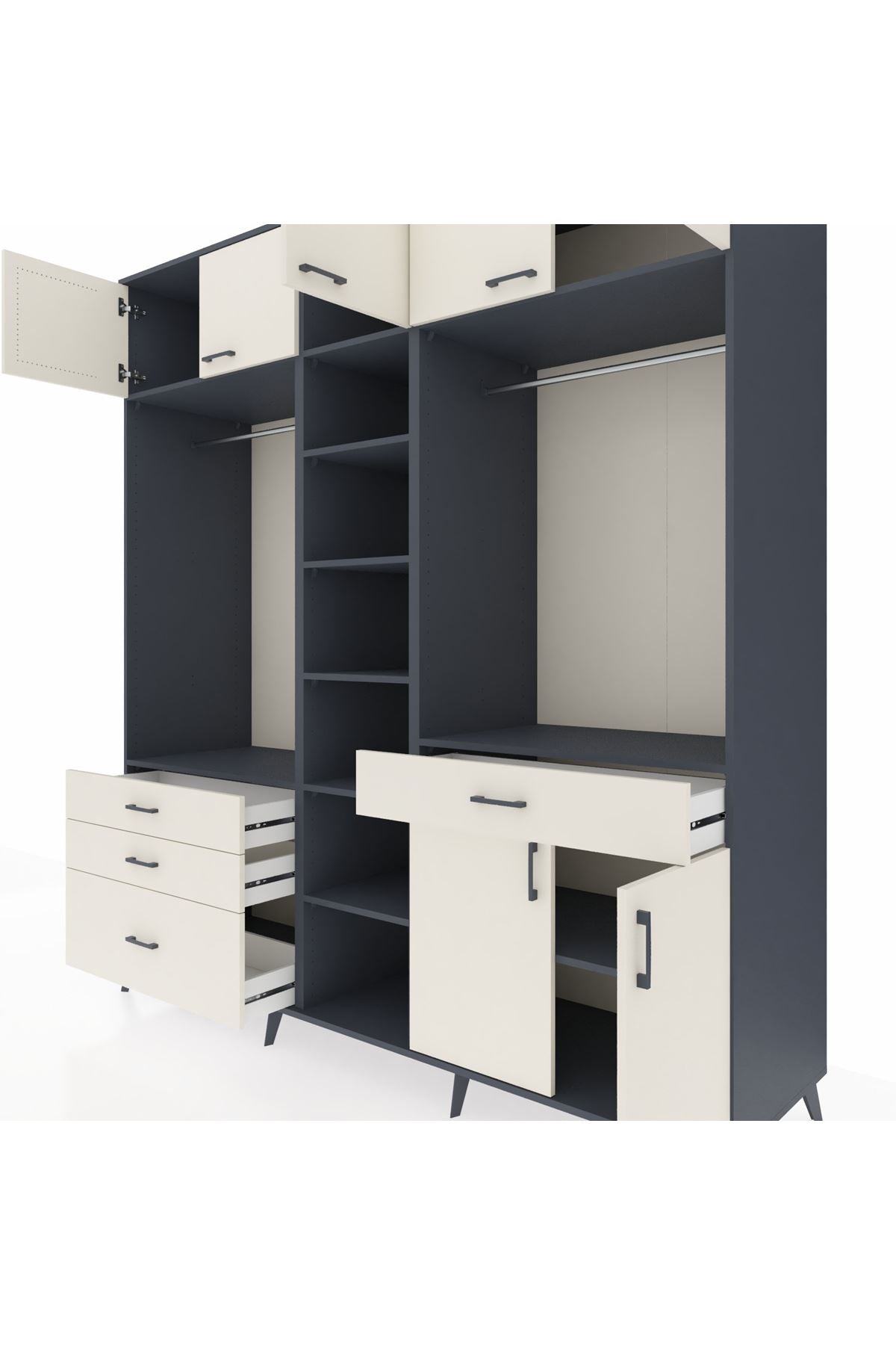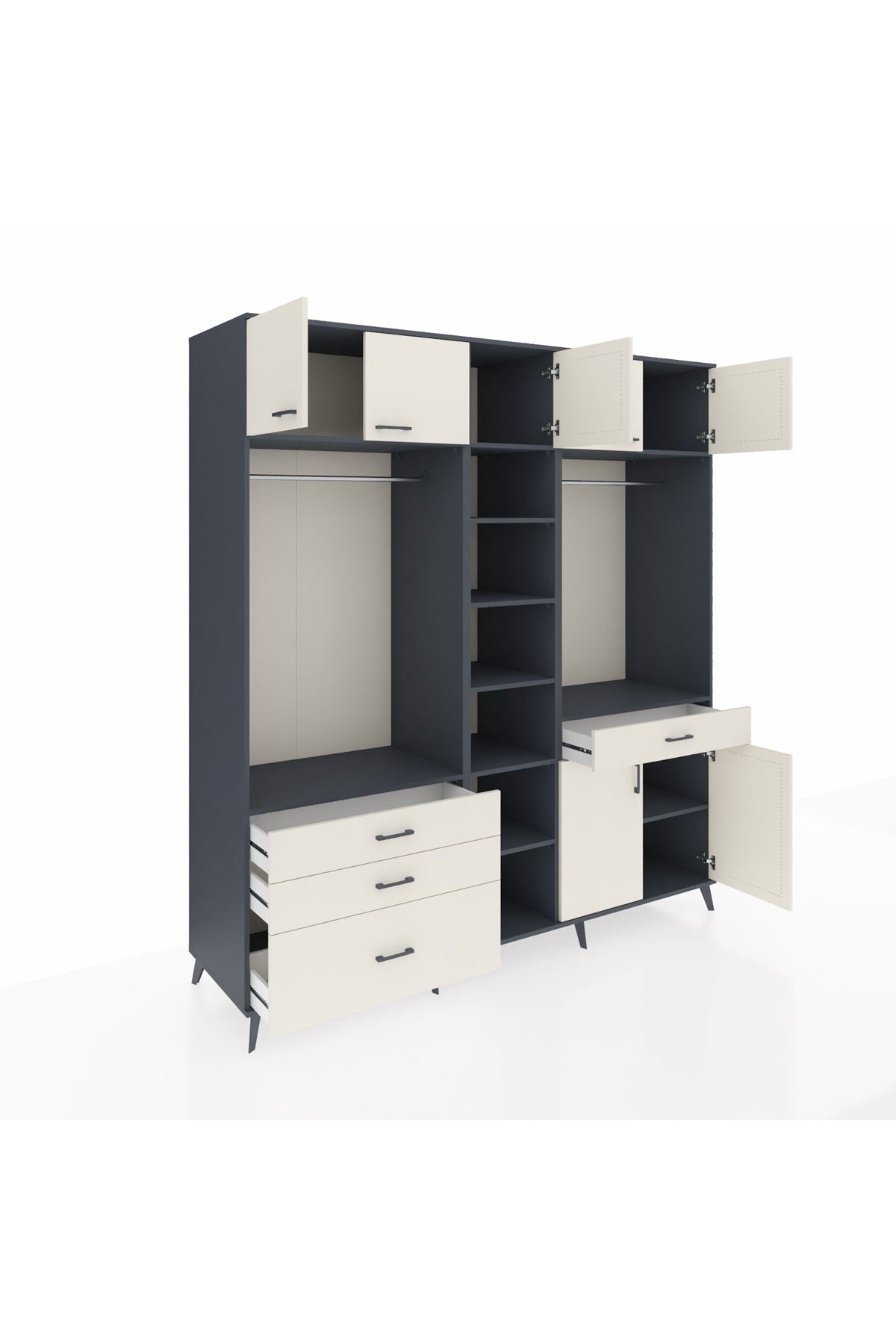 Kronos Dolap 11 Raflı 4 Çekmeceli 2 Askılı 220x59x243 Antrasit-Aytaşı/Aytaşı