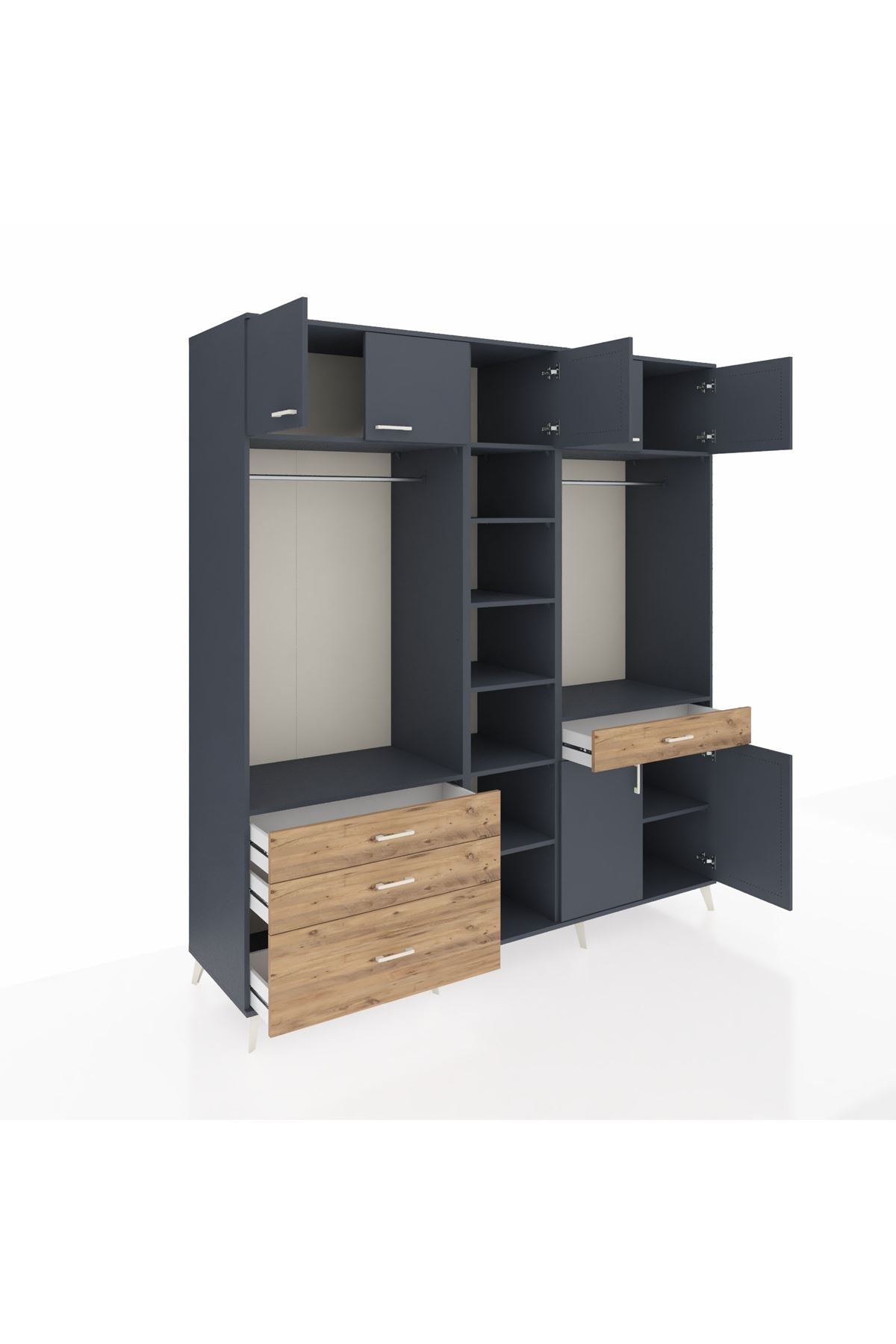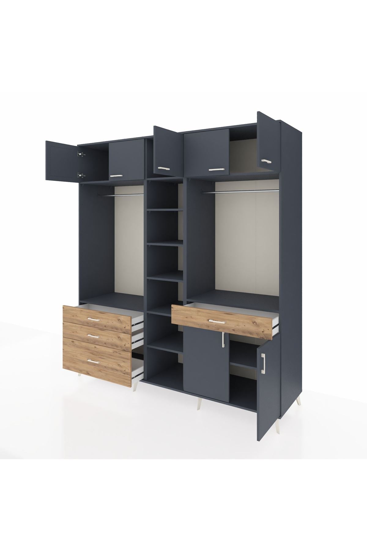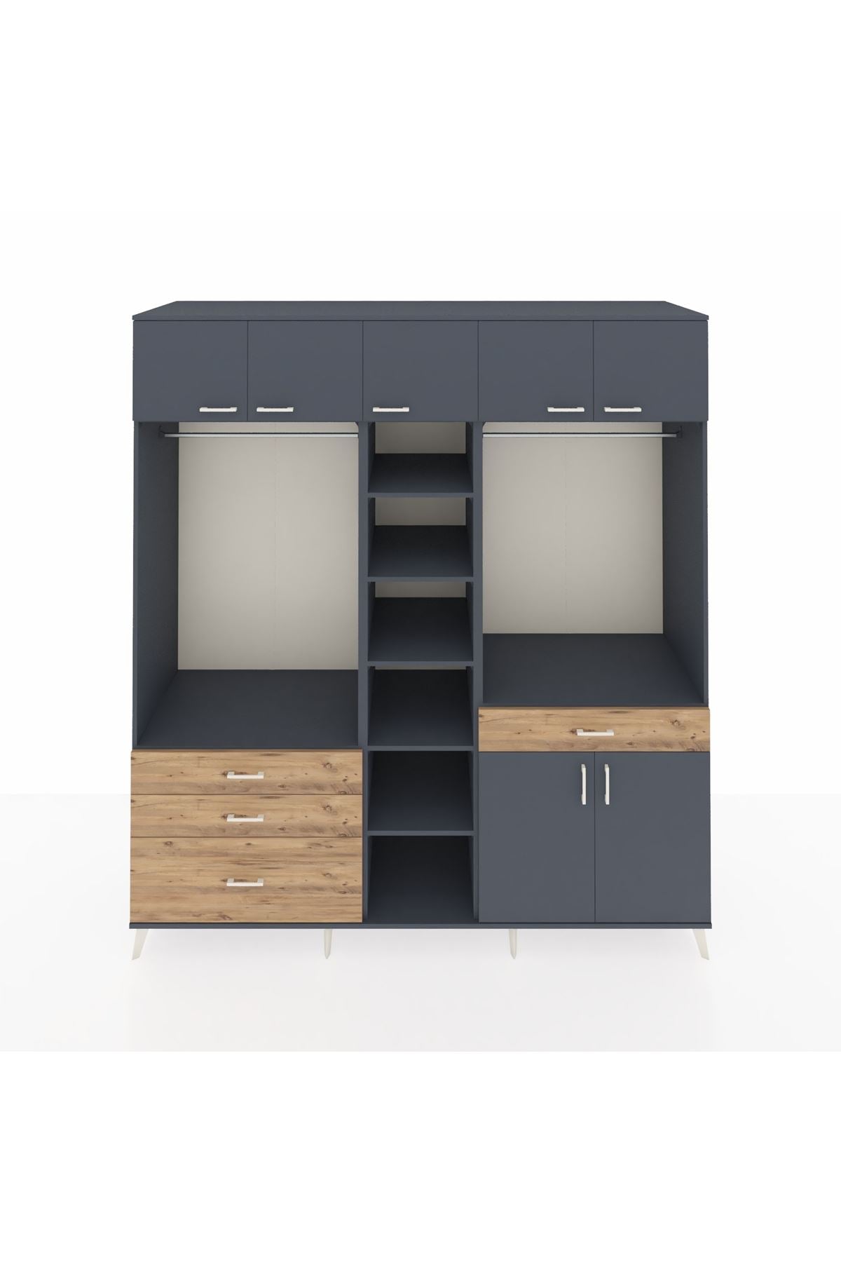 Kronos Dolap 11 Raflı 4 Çekmeceli 2 Askılı 220x59x243 Antrasit-Antrasit/Çam