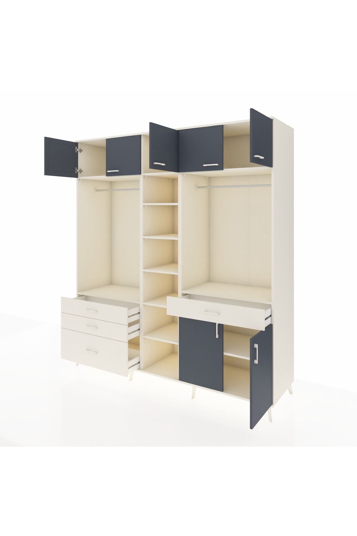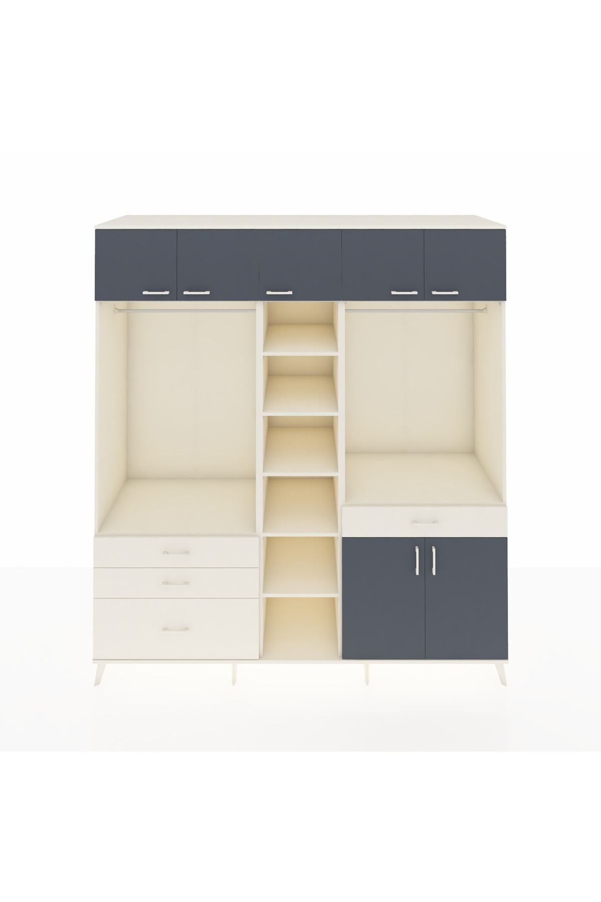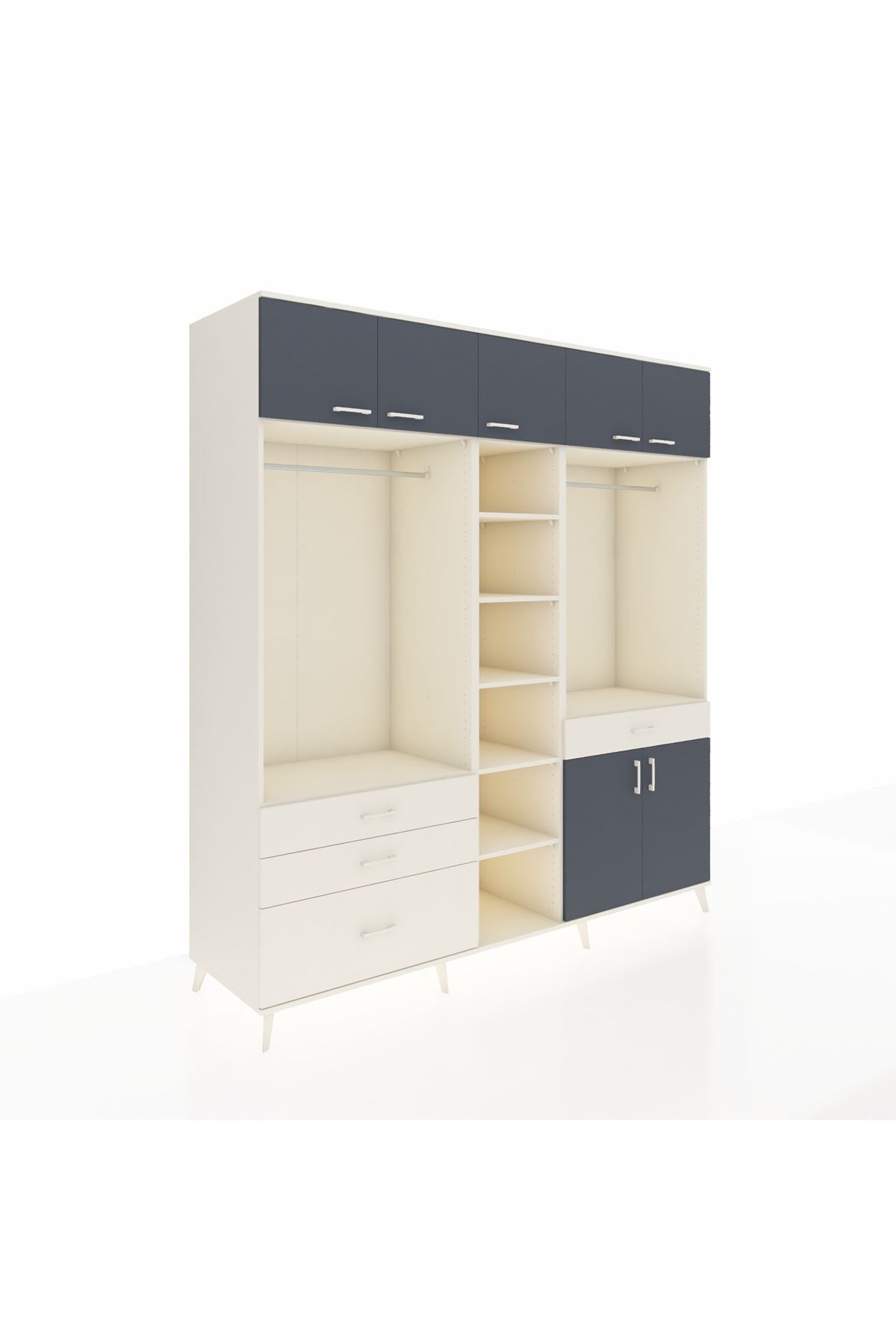 Kronos Dolap 11 Raflı 4 Çekmeceli 2 Askılı 220x59x243 Aytaşı-Antrasit/Aytaşı