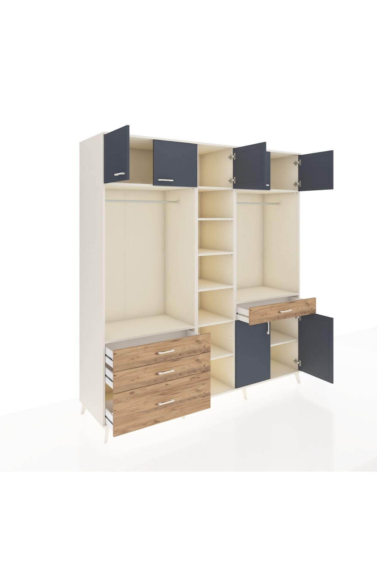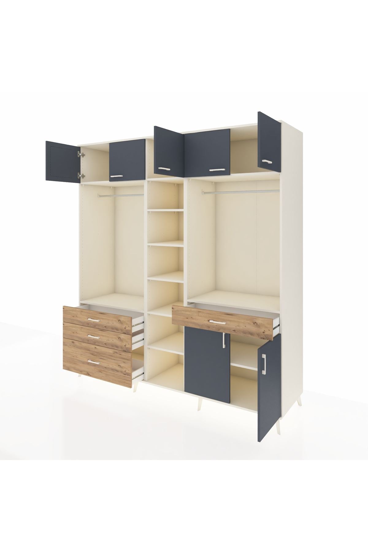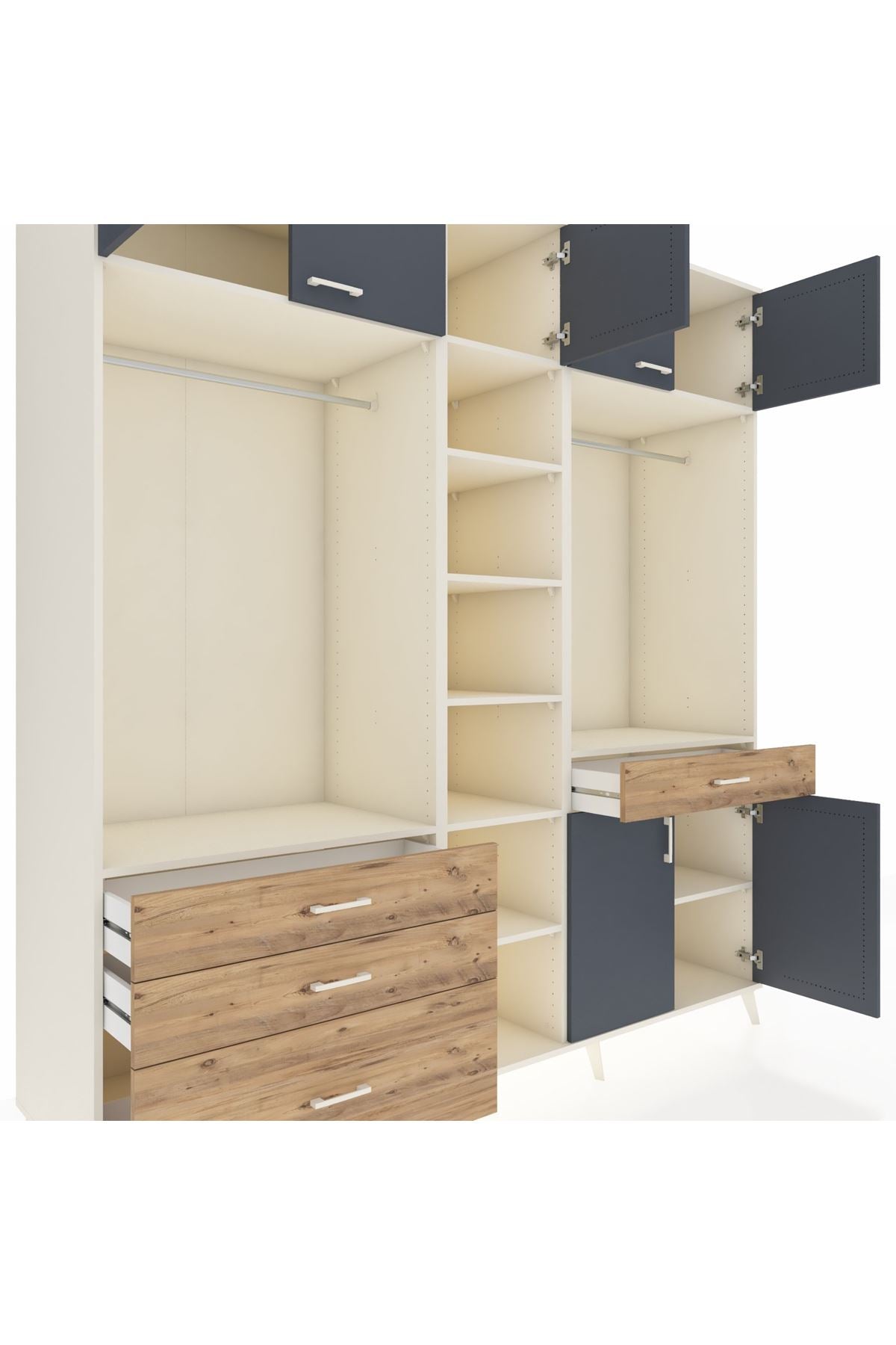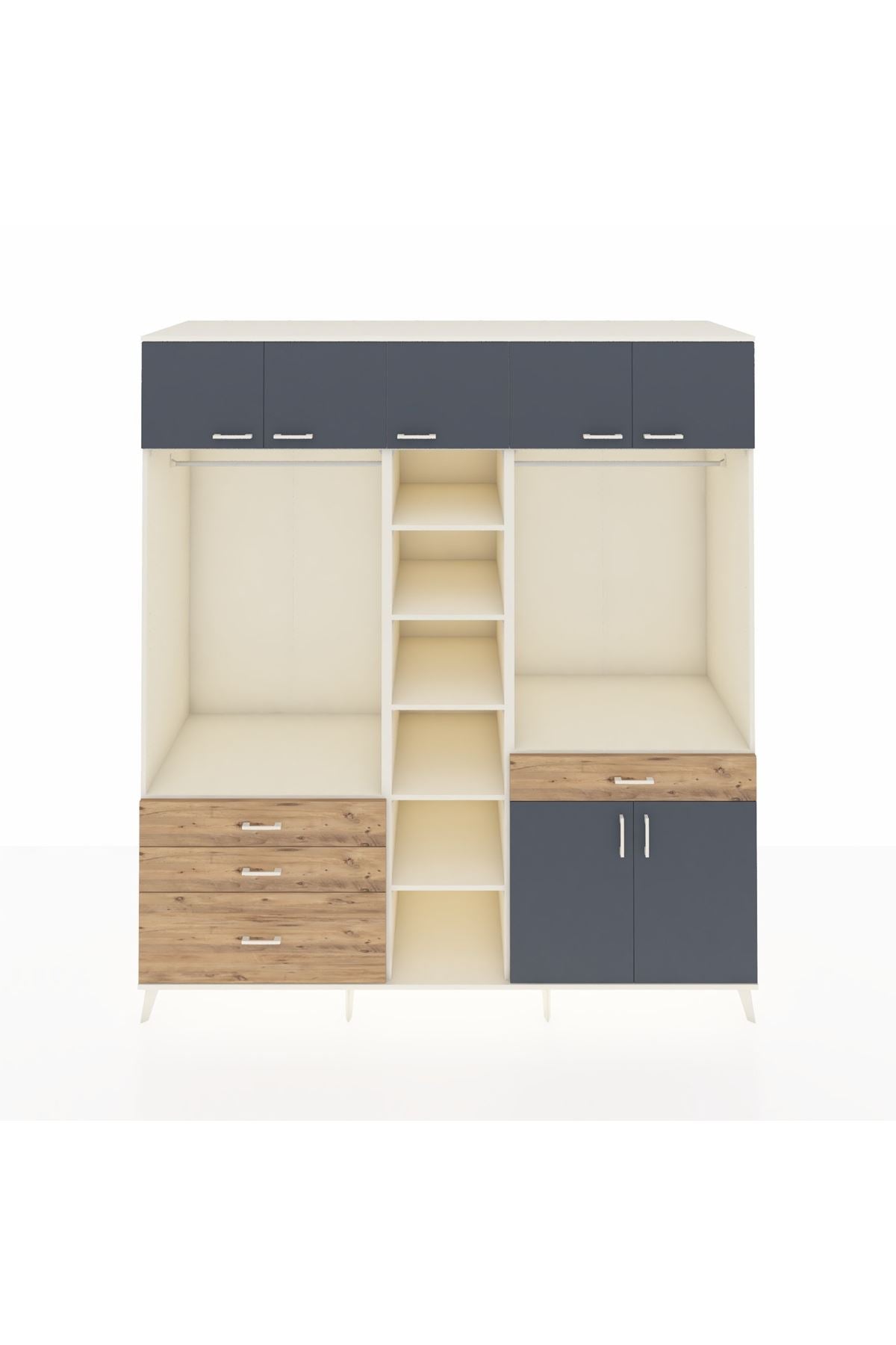 Kronos Dolap 11 Raflı 4 Çekmeceli 2 Askılı 220x59x243 Aytaşı-Antrasit/Çam