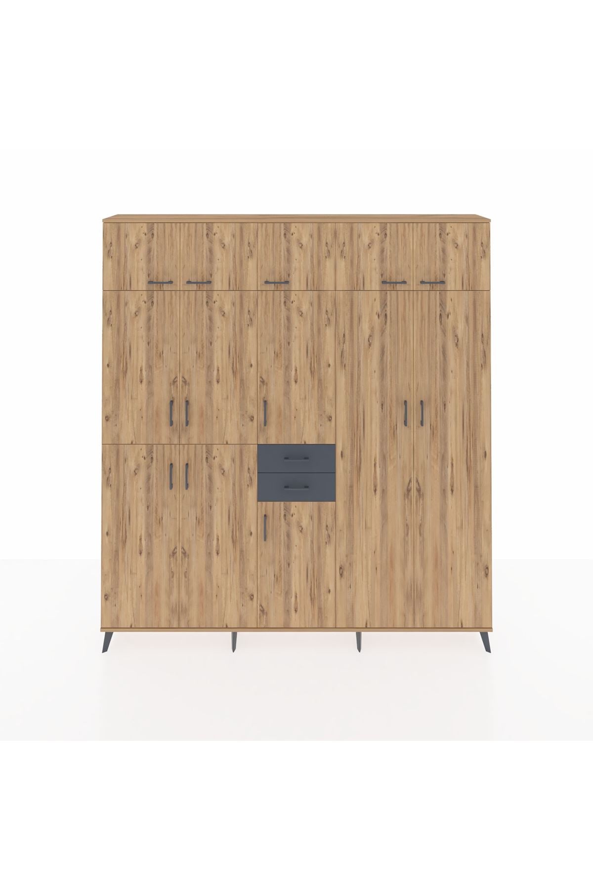 Arges Dolap 10 Raflı 2 Çekmeceli 3 Askılı 220x30x243 Çam-Çam/Antrasit