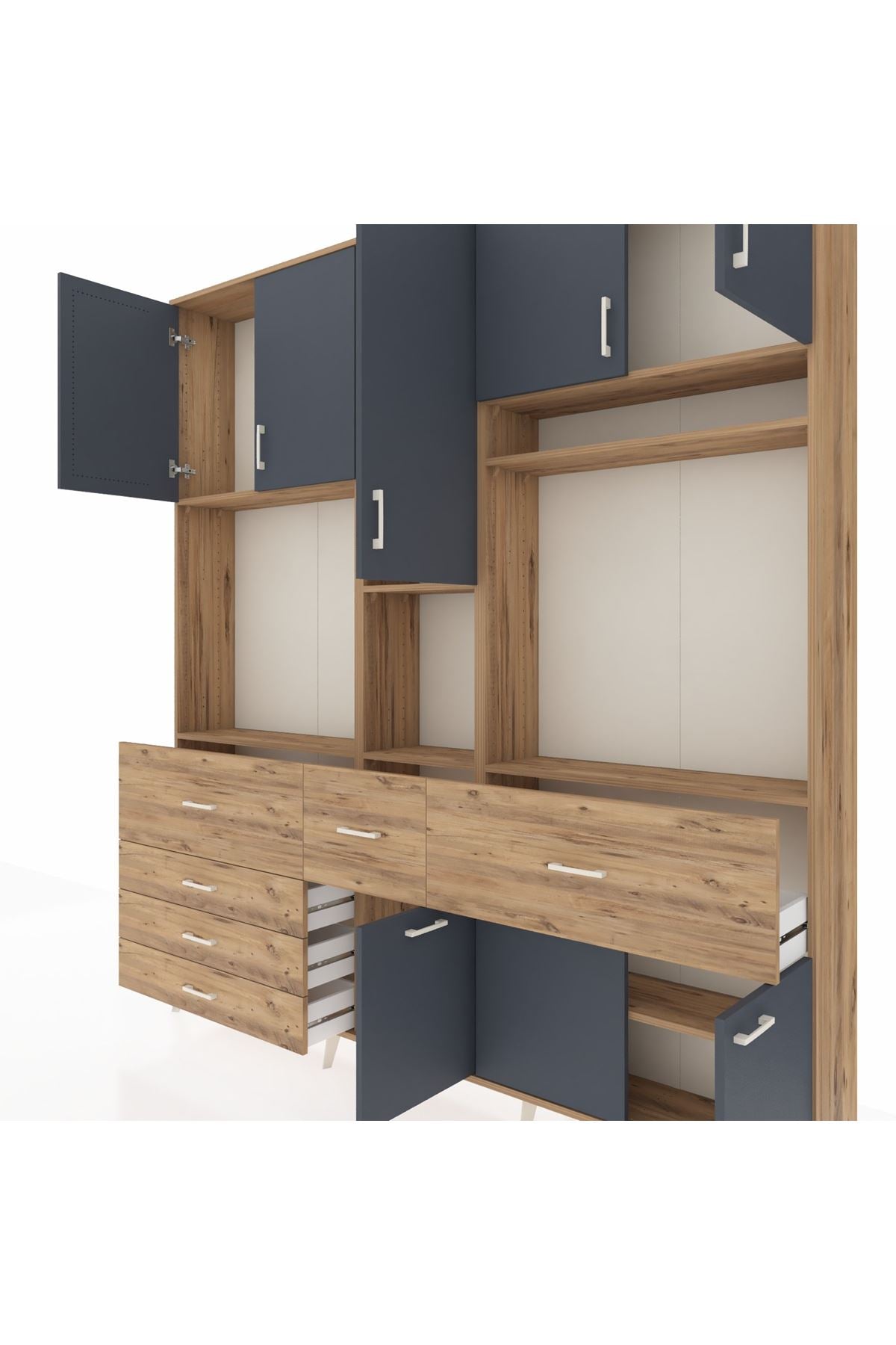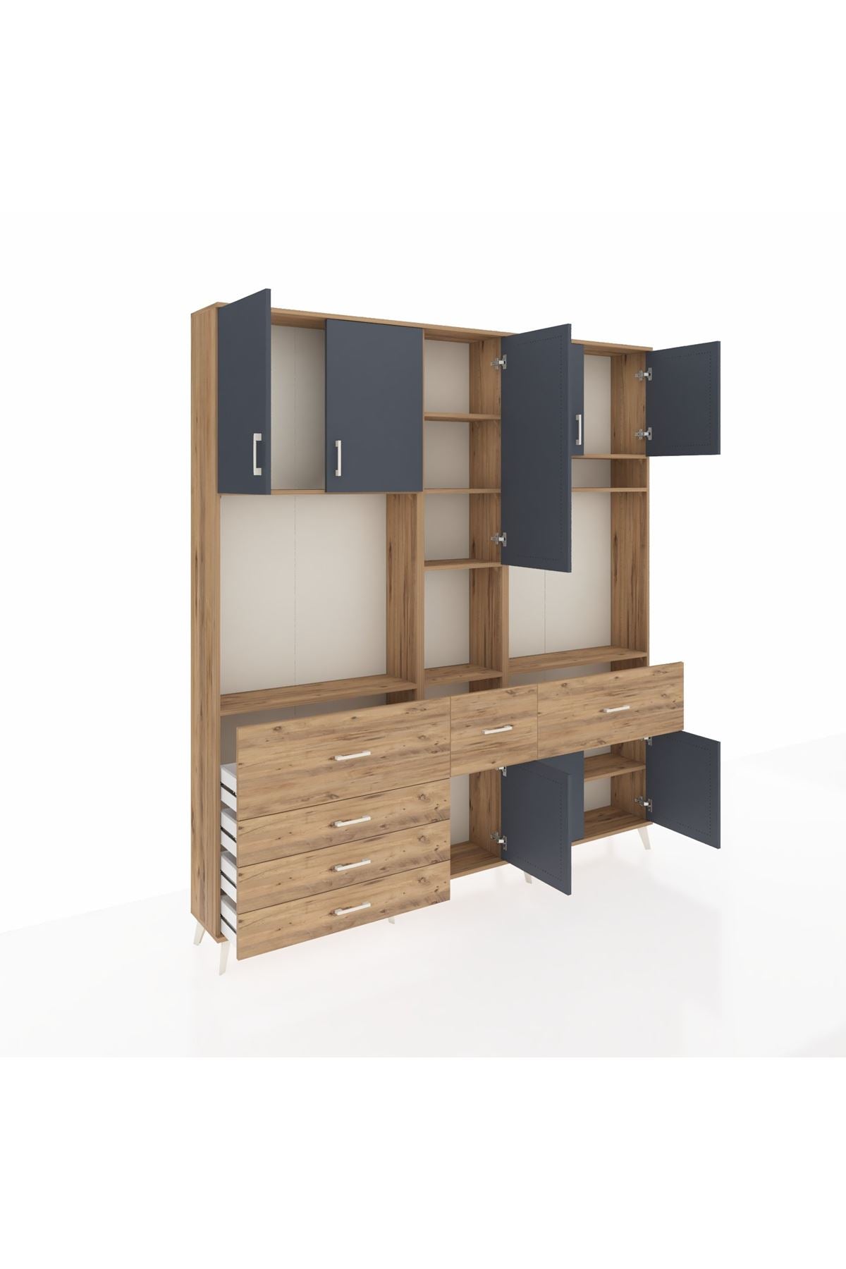 Arges Dolap 10 Raflı 6 Çekmeceli 8 Kapaklı 220x30x243 Çam-Antrasit/Çam