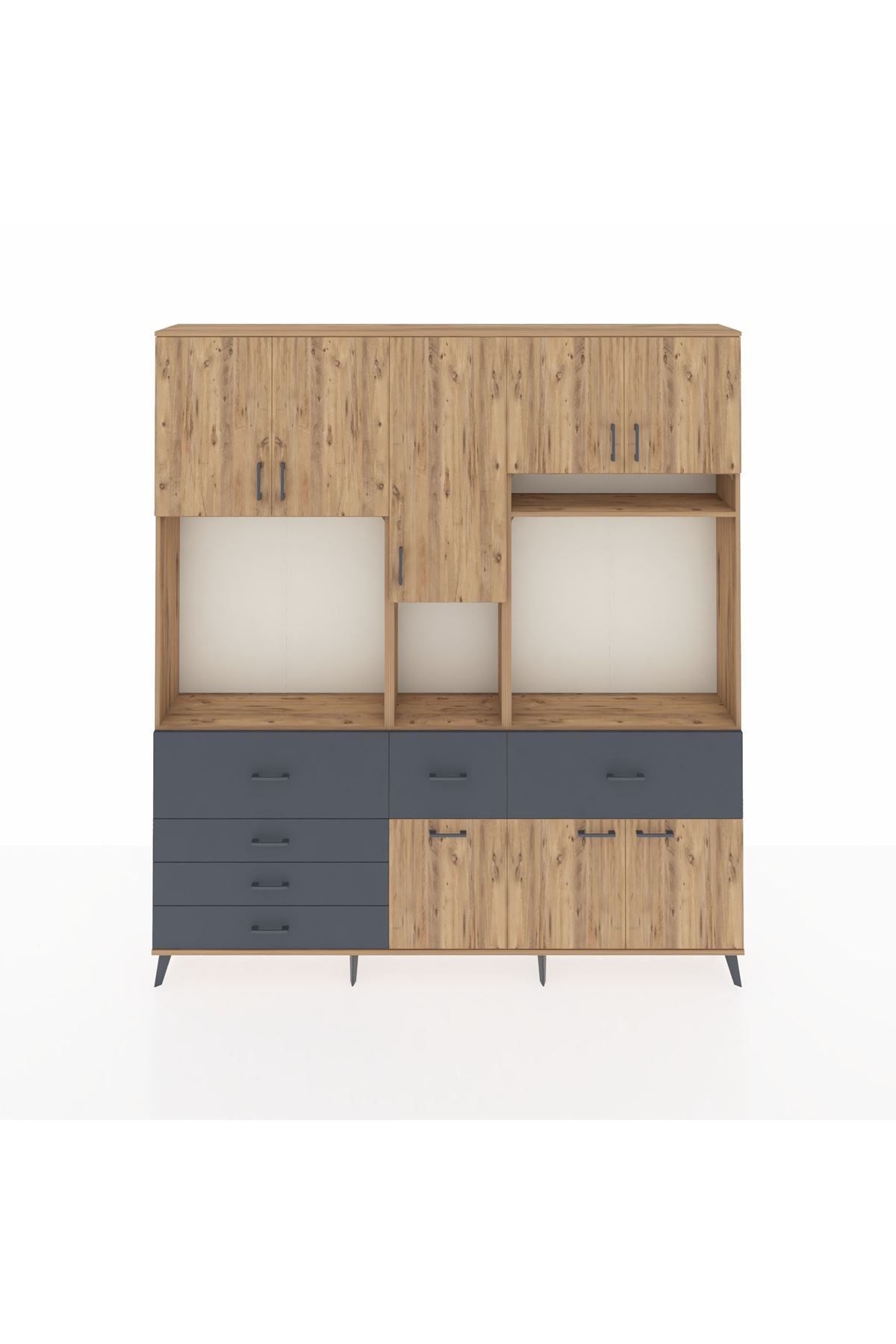 Arges Dolap 10 Raflı 6 Çekmeceli 8 Kapaklı 220x30x243 Çam-Çam/Antrasit