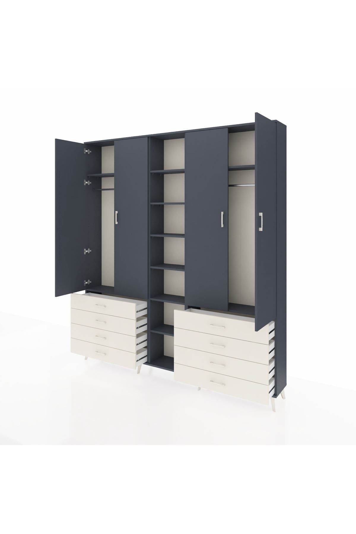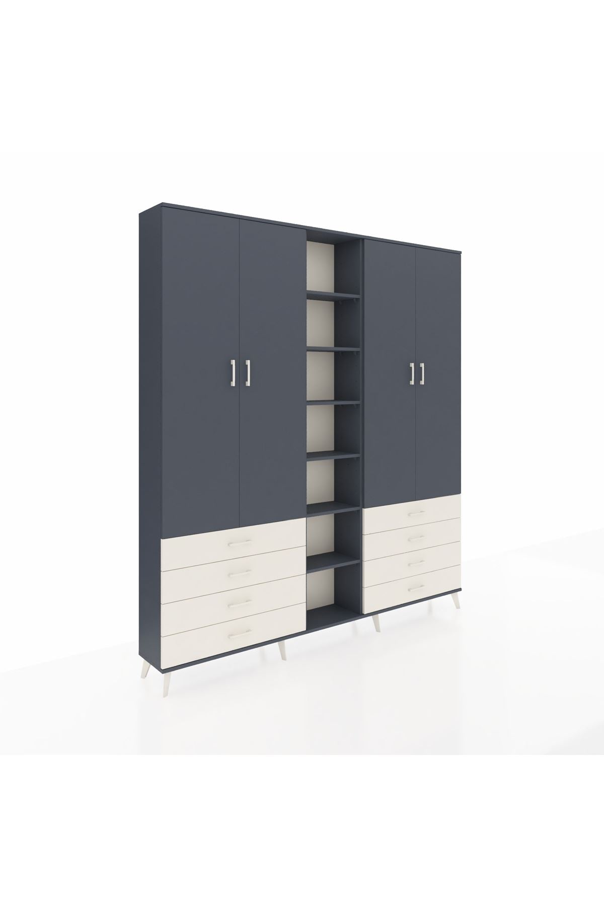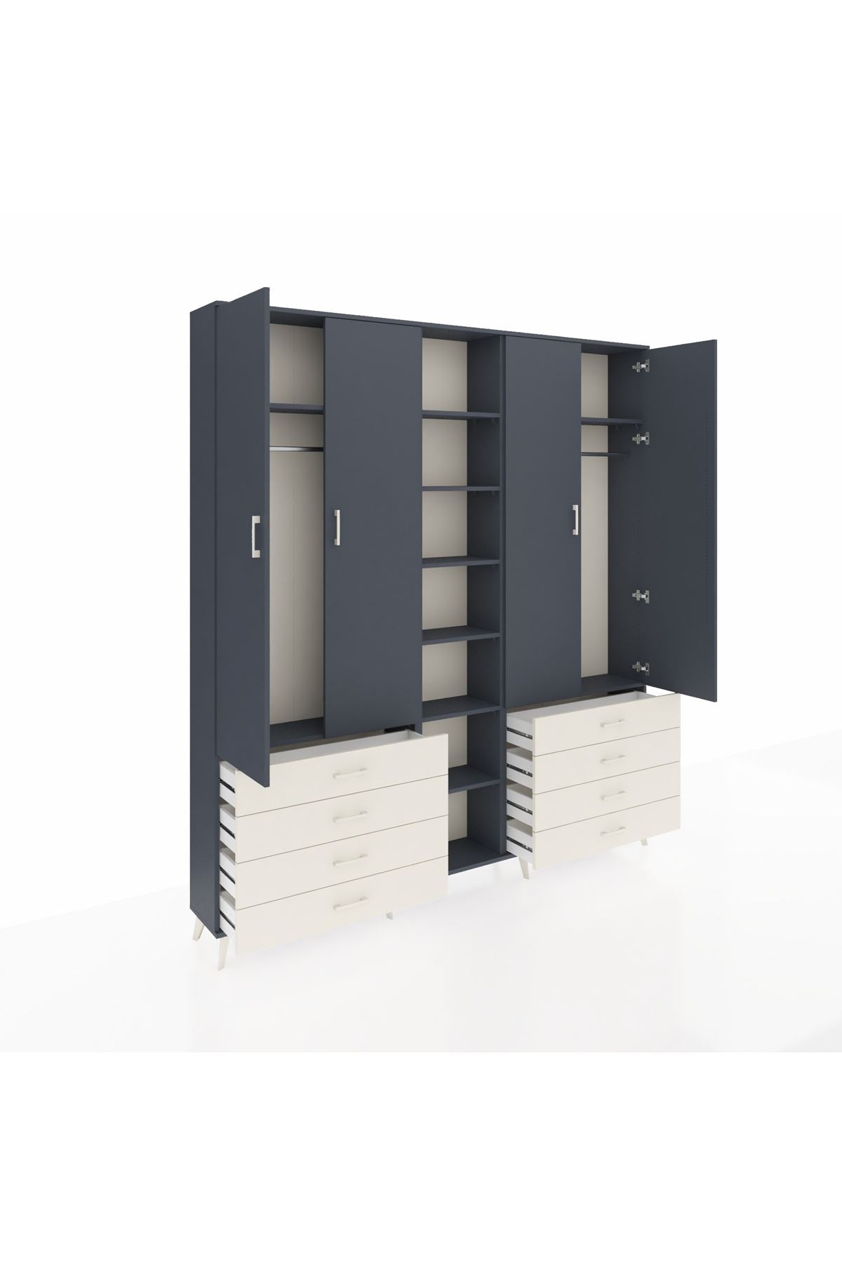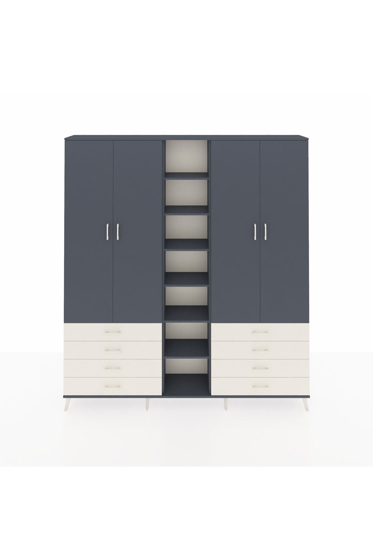 Arges Dolap 10 Raflı 8 Çekmeceli 2 Askılı 220x30x243 Antrasit-Antrasit/Aytaşı
