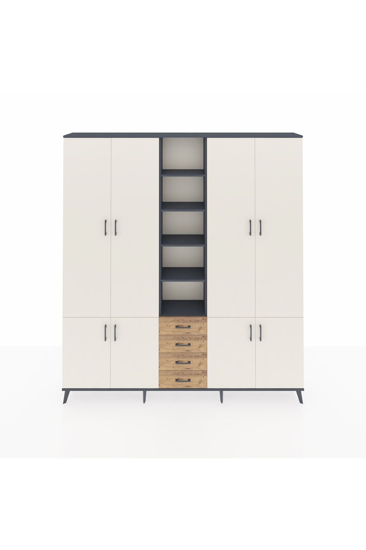 Arges Dolap 17 Raflı 4 Çekmeceli 8 Kapaklı 220x30x243 Antrasit-Aytaşı/Çam