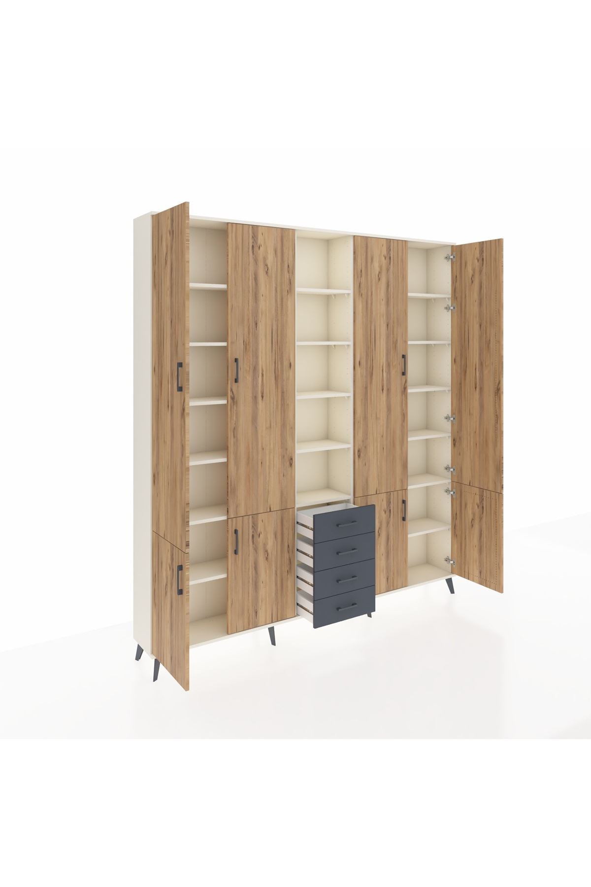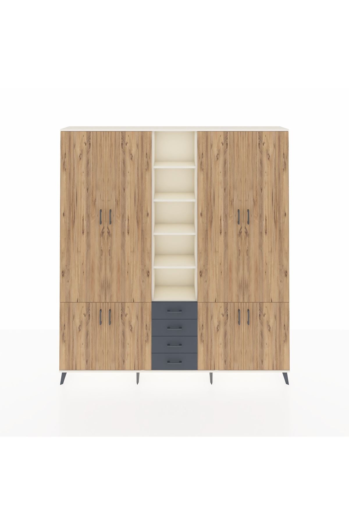 Arges Dolap 17 Raflı 4 Çekmeceli 8 Kapaklı 220x30x243 Aytaşı-Çam/Antrasit