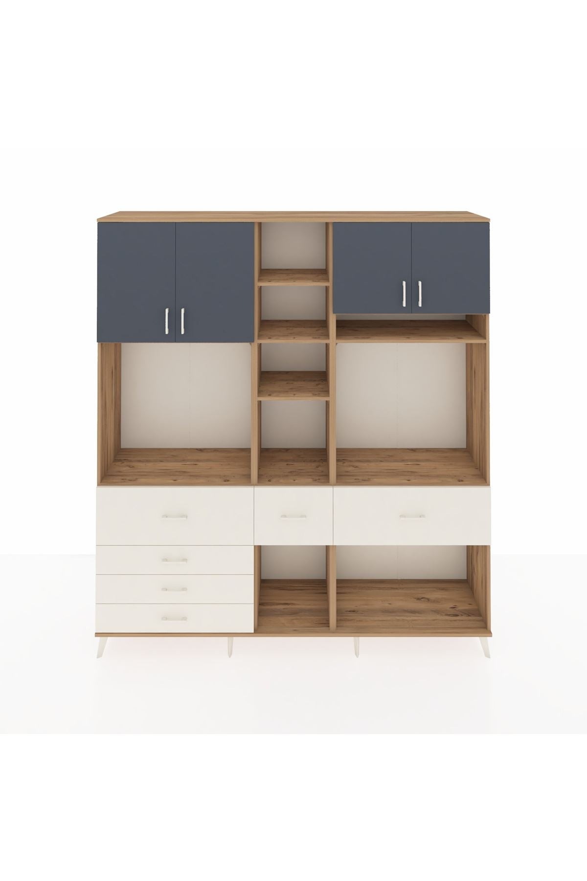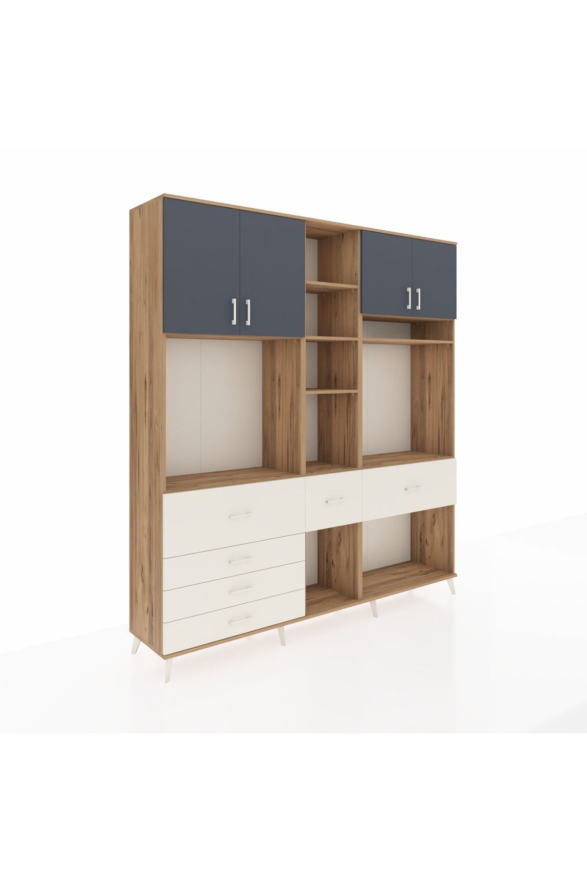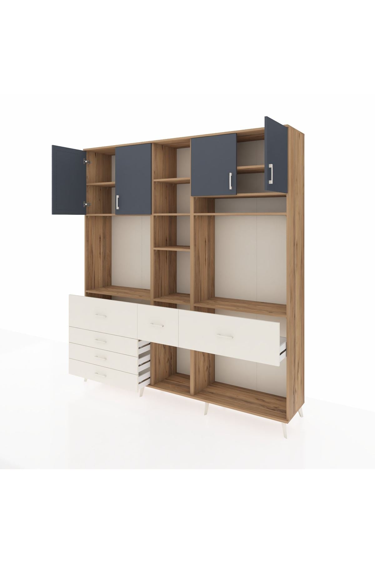 Hyperion Dolap 11 Raflı 6 Çekmeceli 4 Kapaklı 220x44x243 Çam-Antrasit/Aytaşı