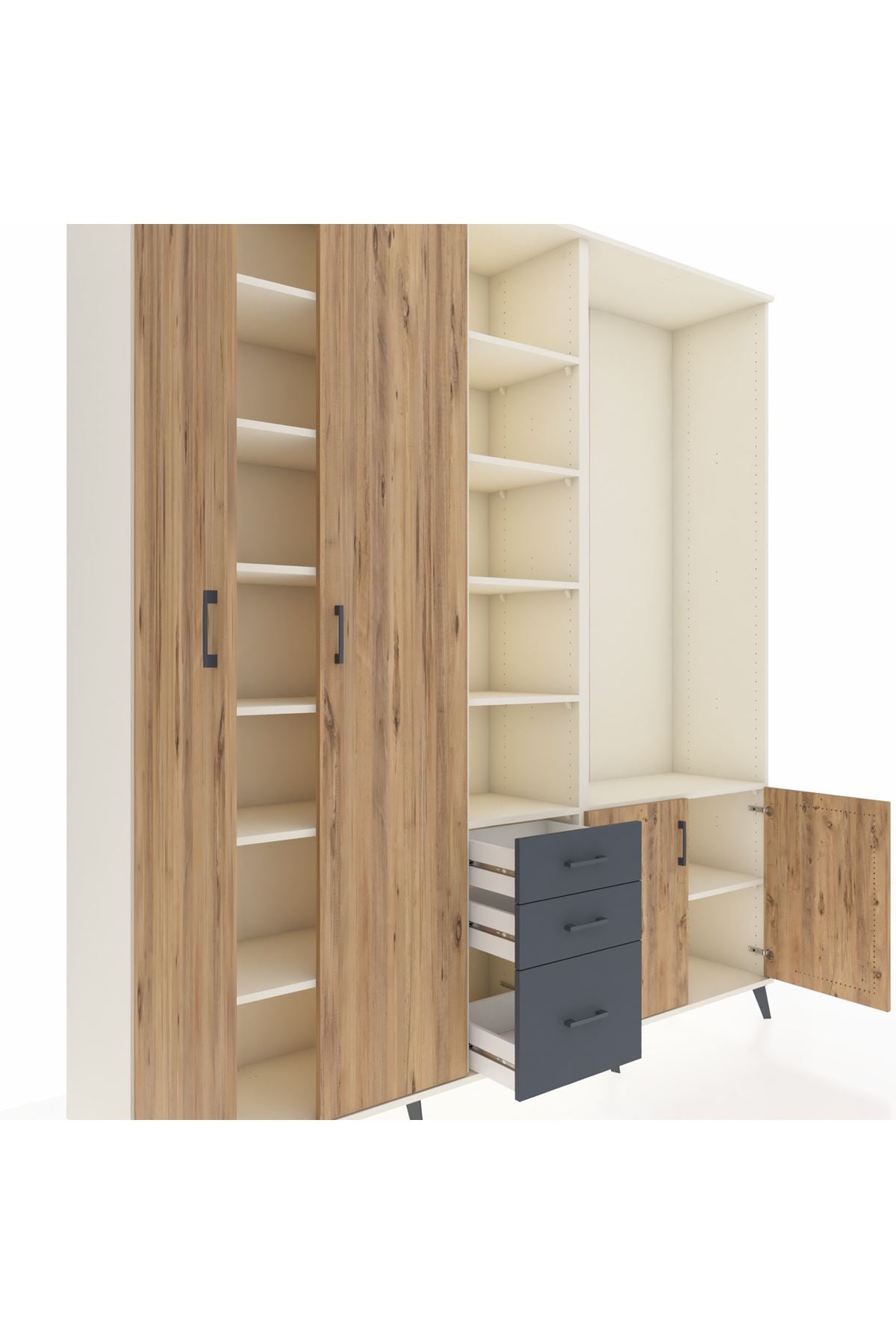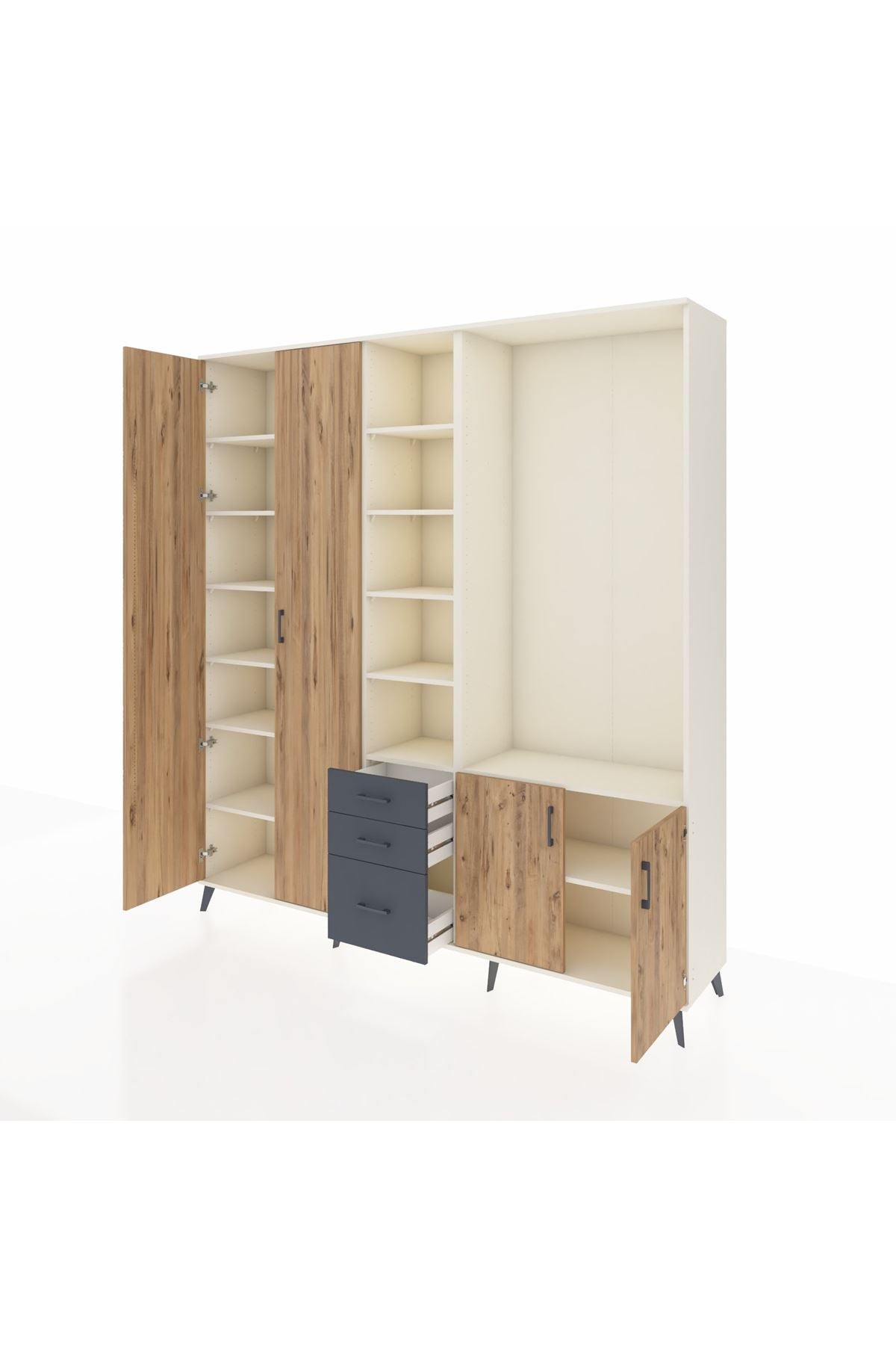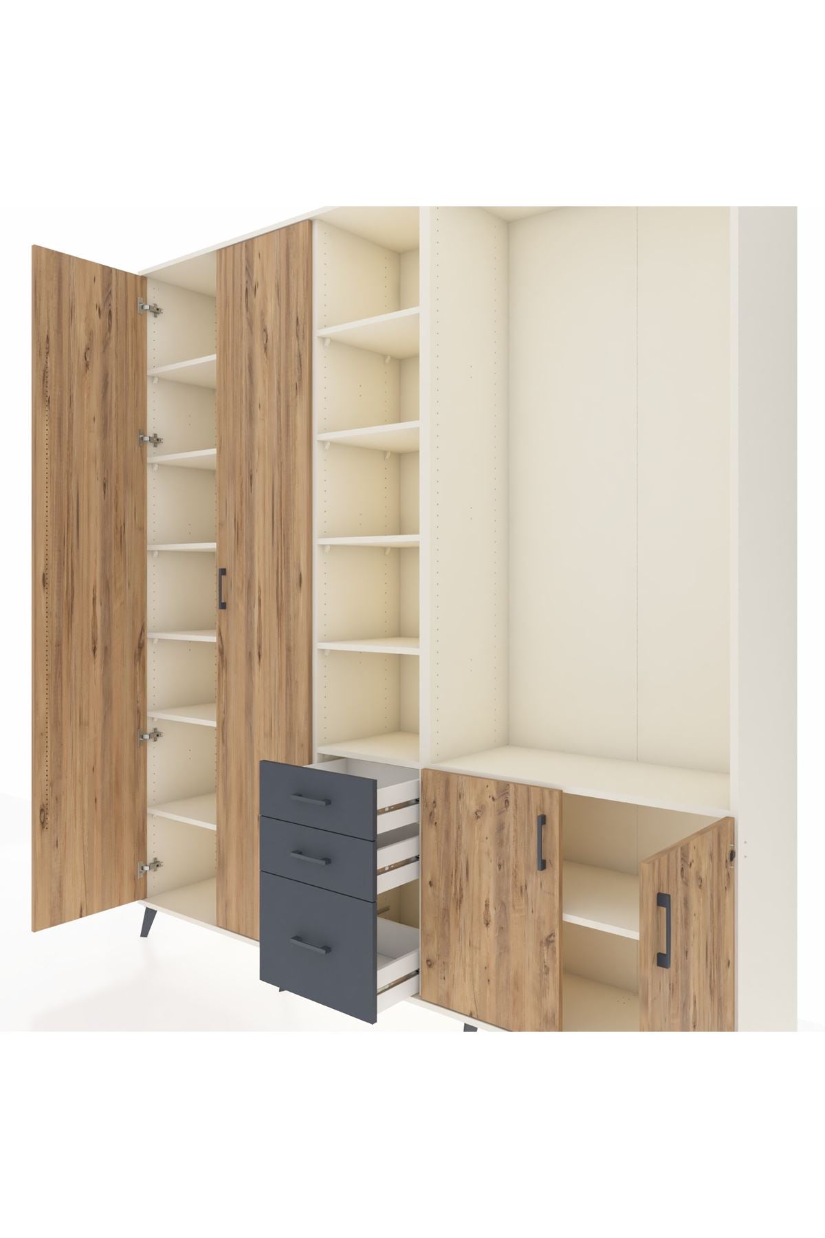 Hyperion Dolap 13 Raflı 3 Çekmeceli 4 Kapaklı 220x44x243 Aytaşı-Çam/Antrasit