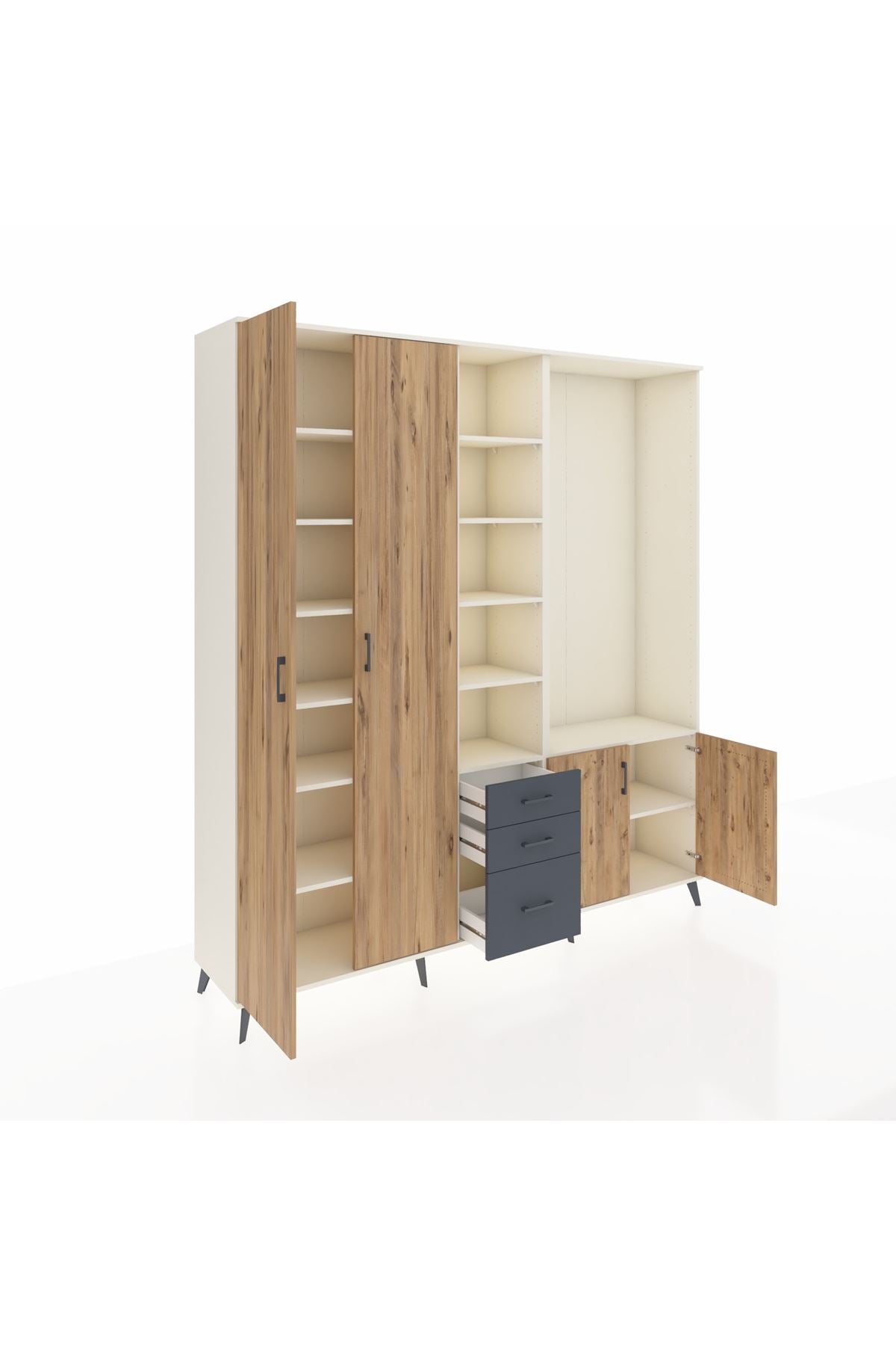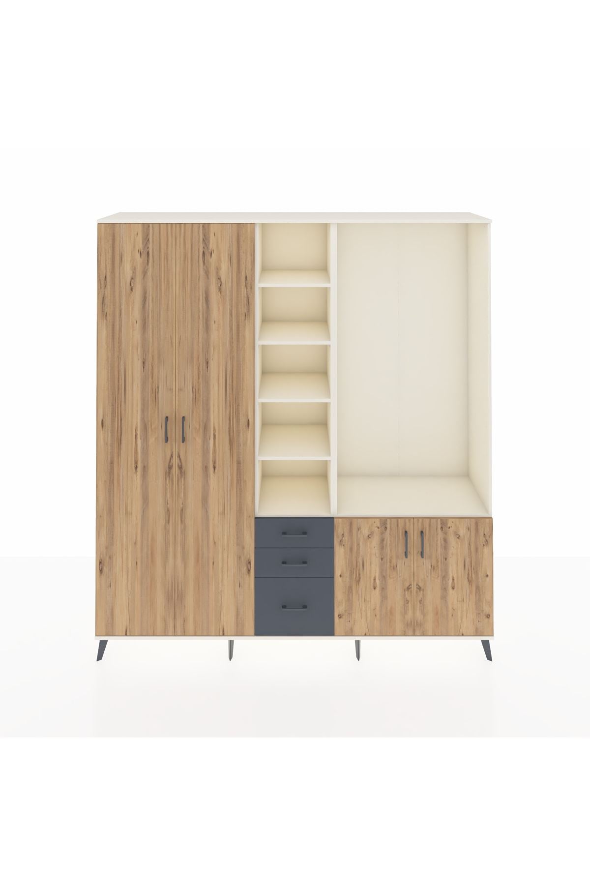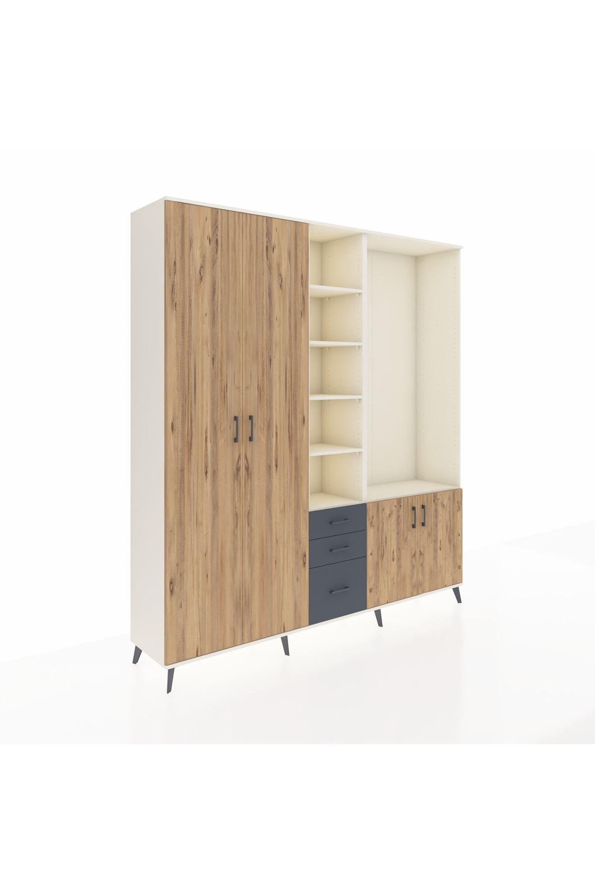 Hyperion Dolap 13 Raflı 3 Çekmeceli 4 Kapaklı 220x44x243 Aytaşı-Çam/Antrasit