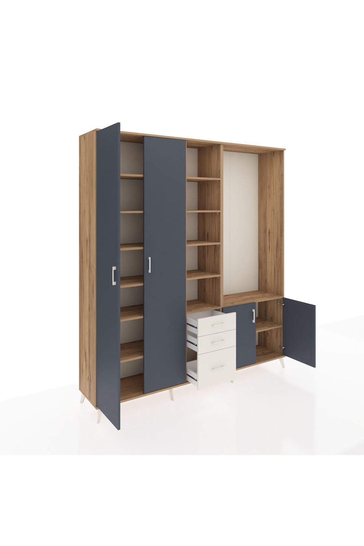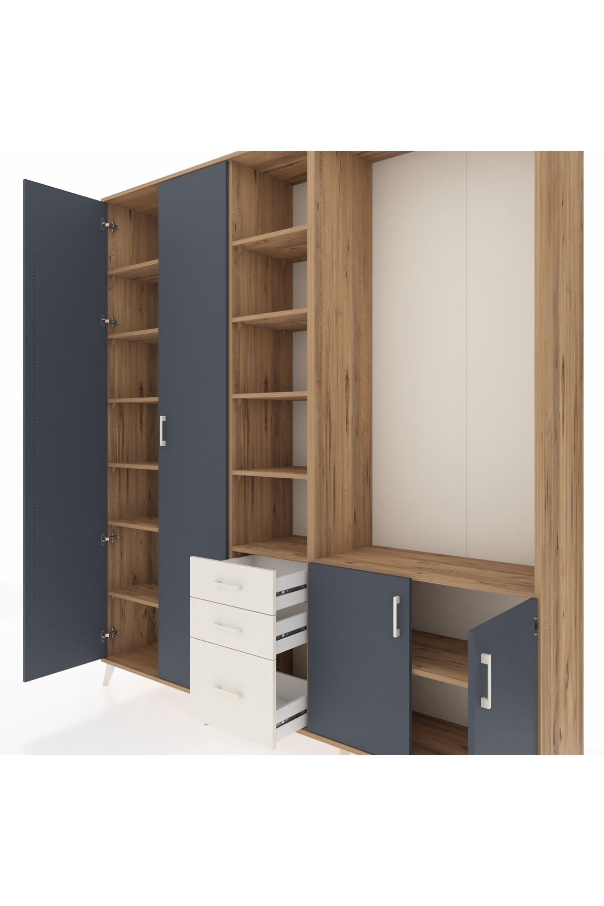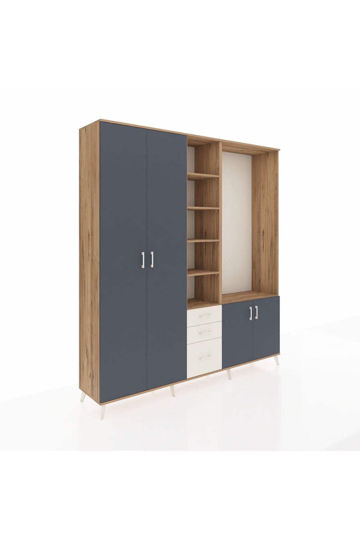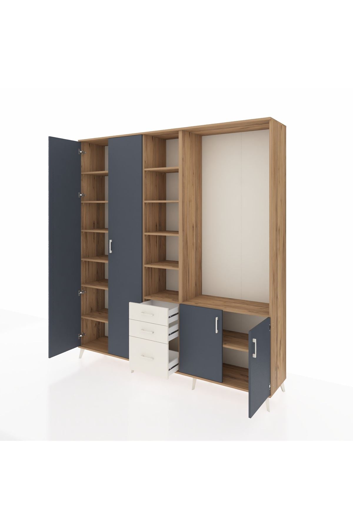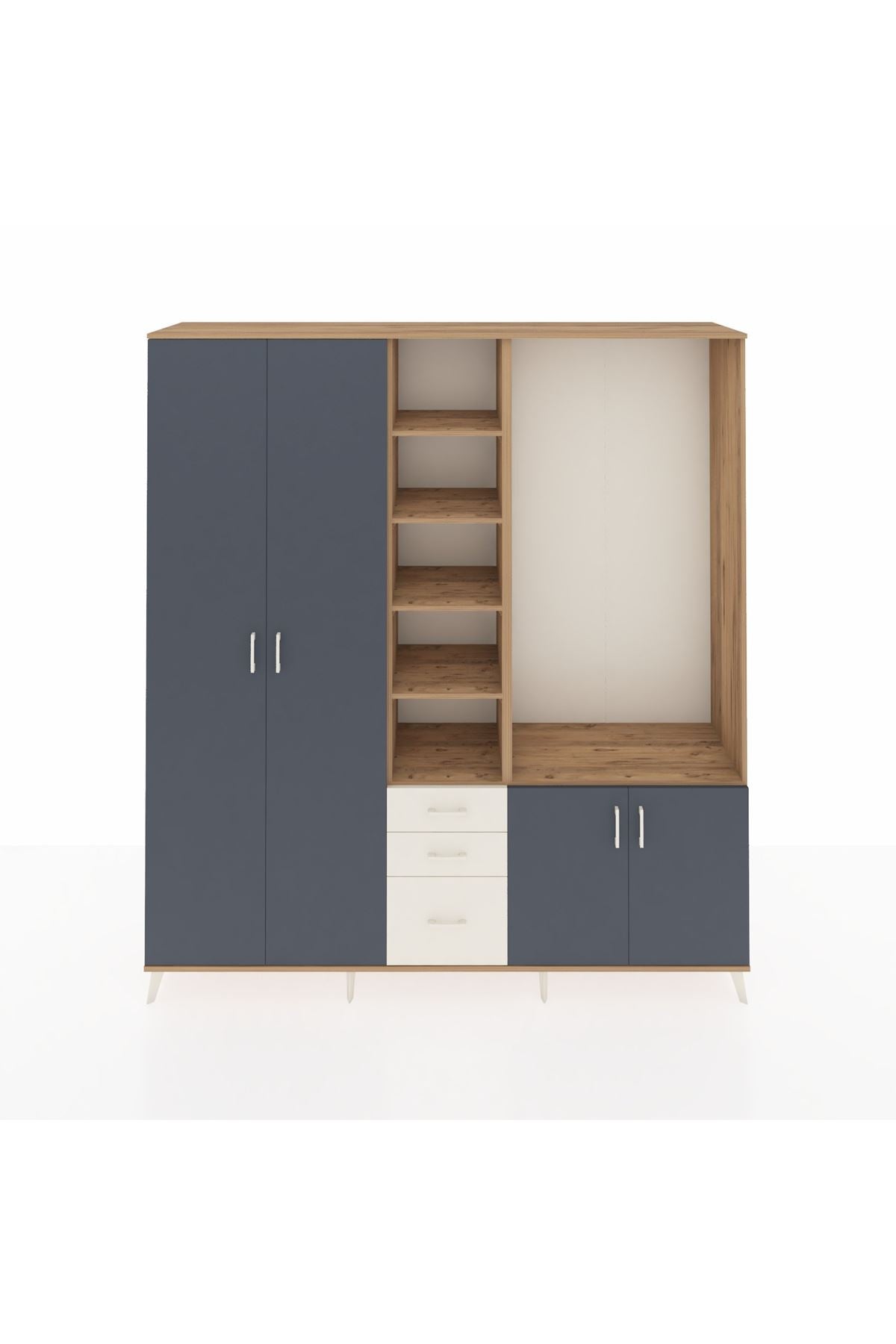 Hyperion Dolap 13 Raflı 3 Çekmeceli 4 Kapaklı 220x44x243 Çam-Antrasit/Aytaşı