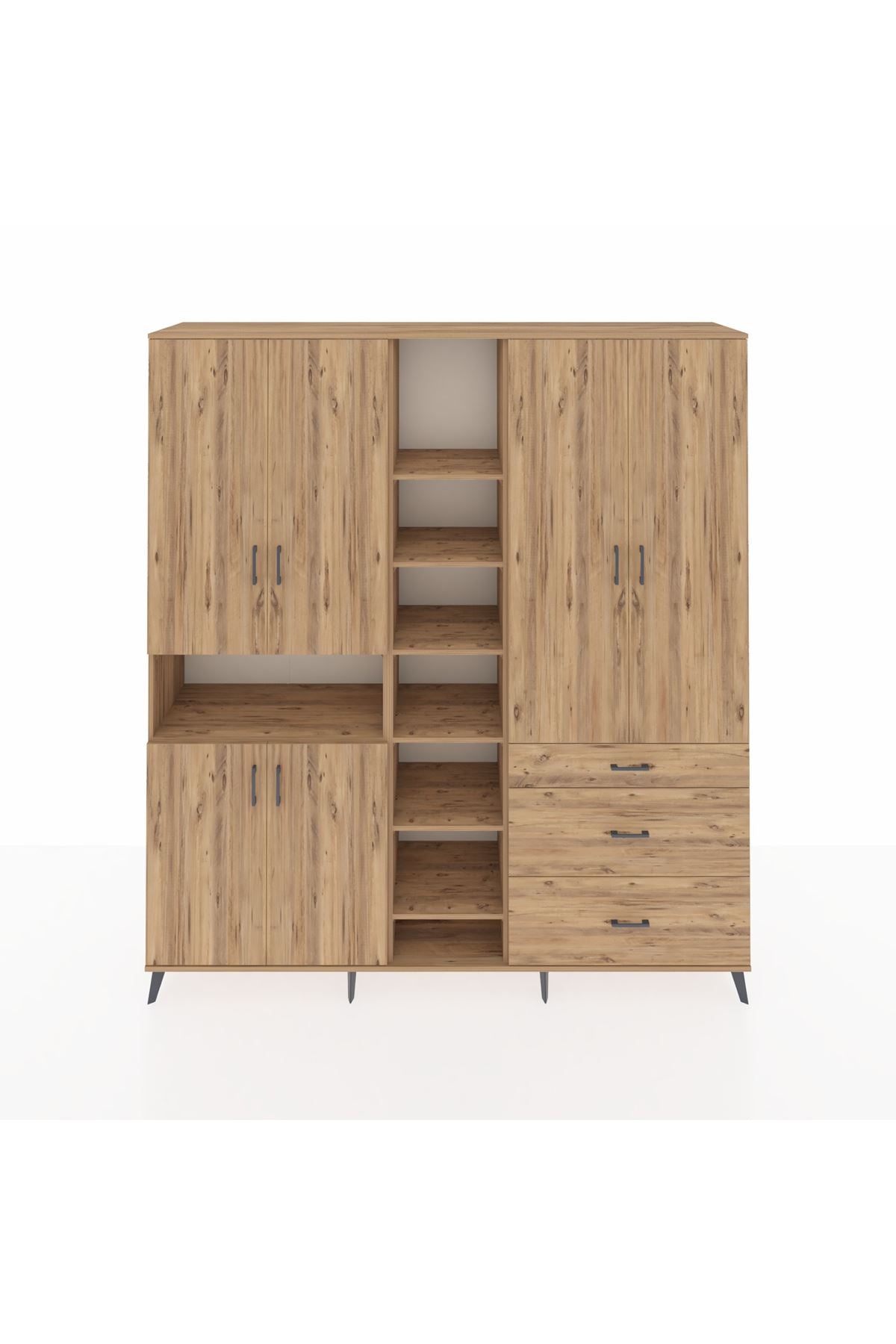 Hyperion Dolap 13 Raflı 3 Çekmeceli 6 Kapaklı 220x44x243 Çam-Çam/Çam