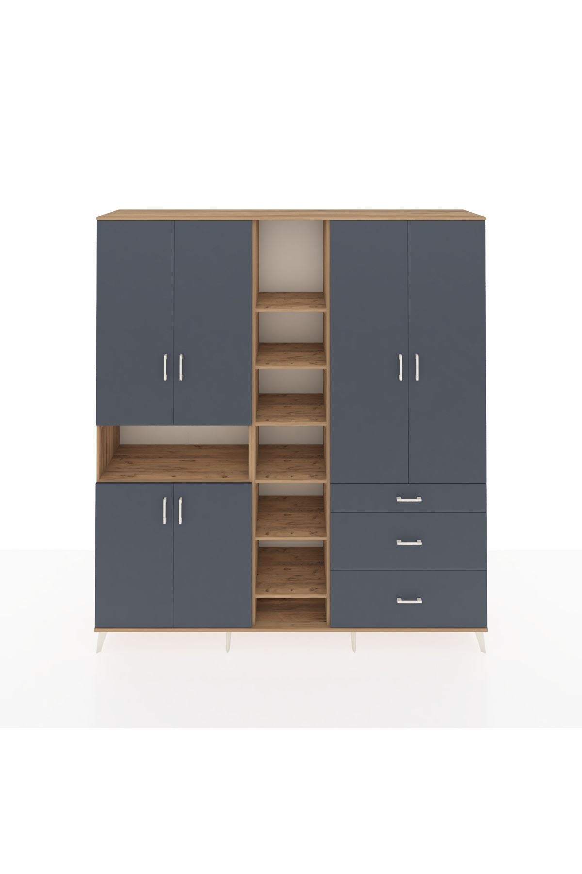 Hyperion Dolap 13 Raflı 3 Çekmeceli 6 Kapaklı 220x44x243 Çam-Antrasit/Antrasit