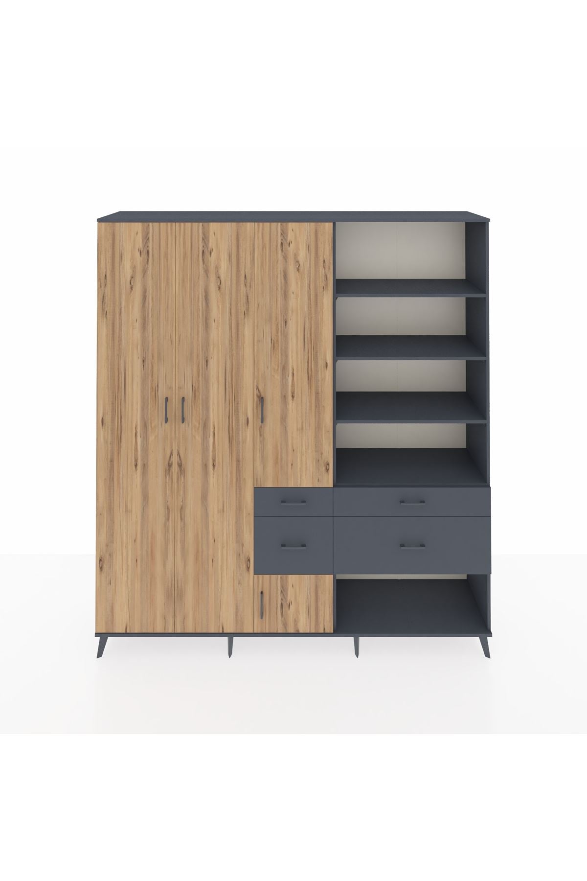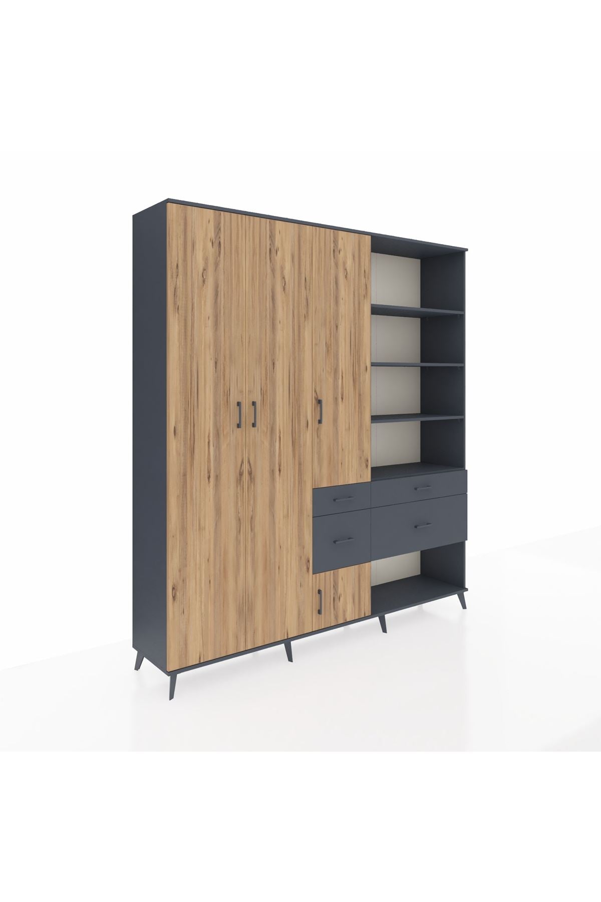 Hyperion Dolap 14 Raflı 4 Çekmeceli 4 Kapaklı 220x44x243 Antrasit-Çam/Antrasit