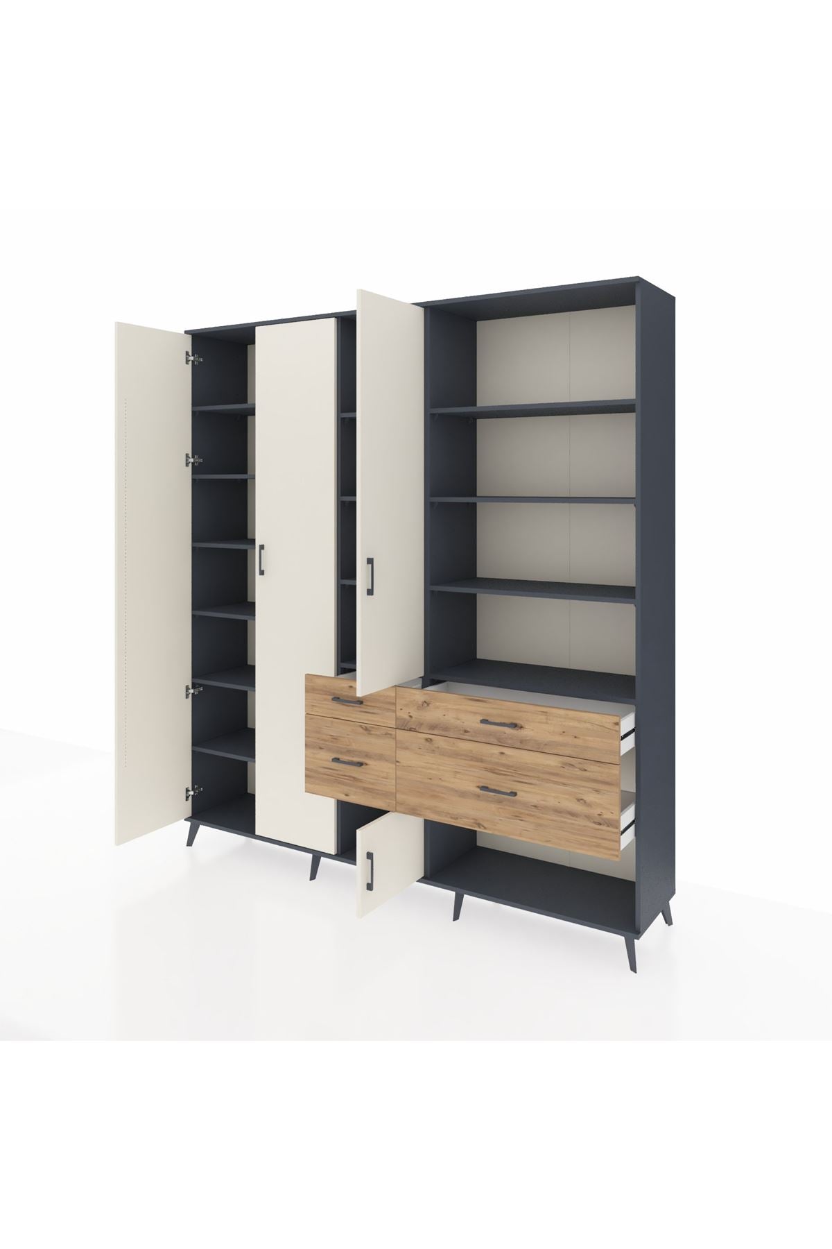 Hyperion Dolap 14 Raflı 4 Çekmeceli 4 Kapaklı 220x44x243 Antrasit-Aytaşı/Çam