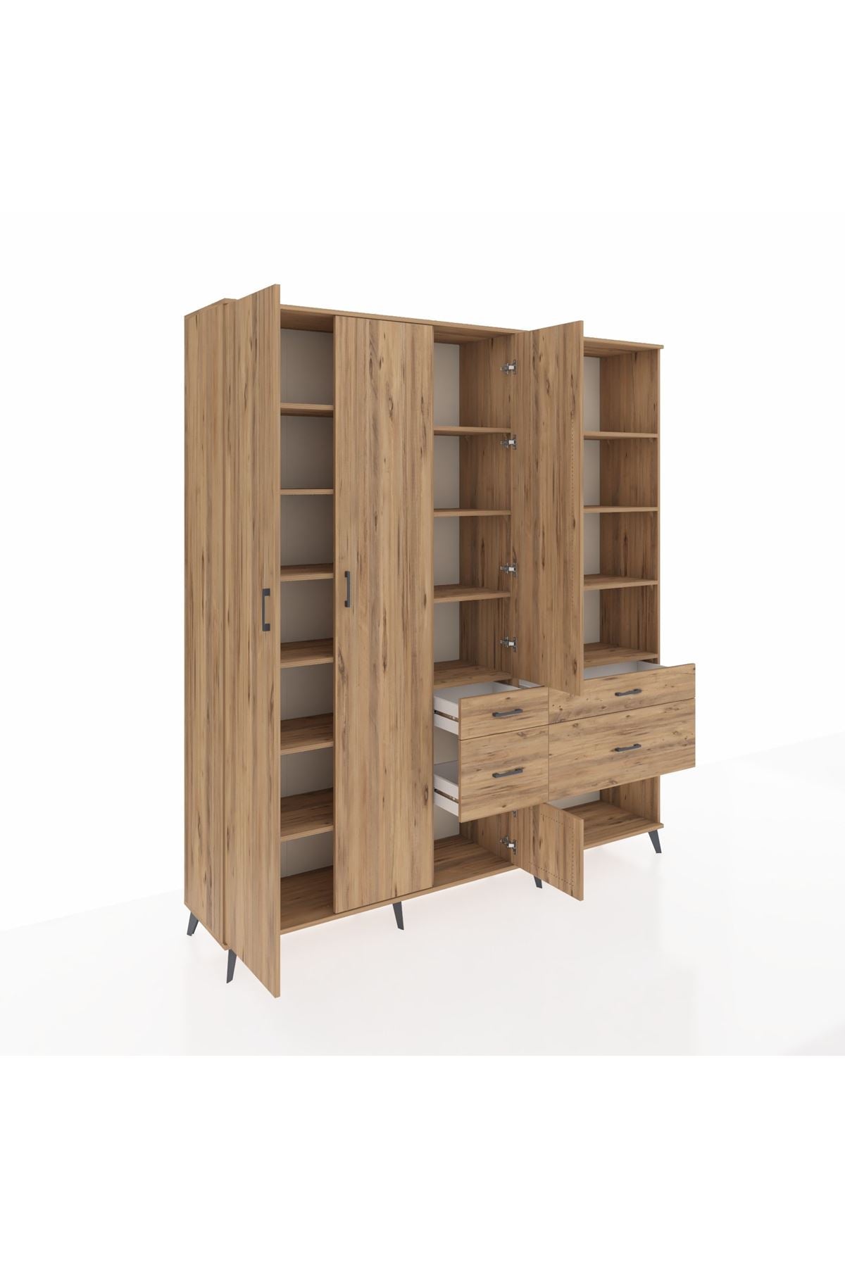 Hyperion Dolap 14 Raflı 4 Çekmeceli 4 Kapaklı 220x44x243 Çam-Çam/Çam
