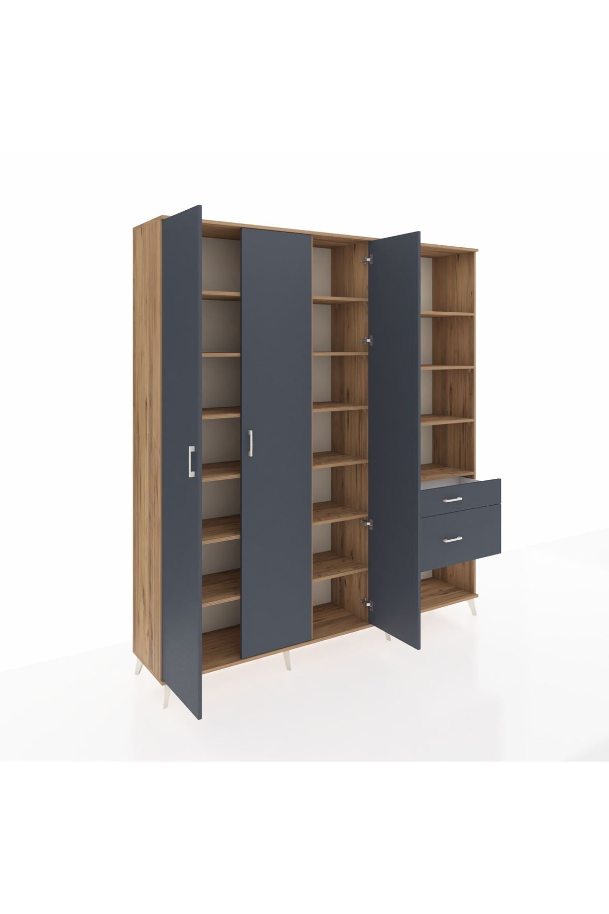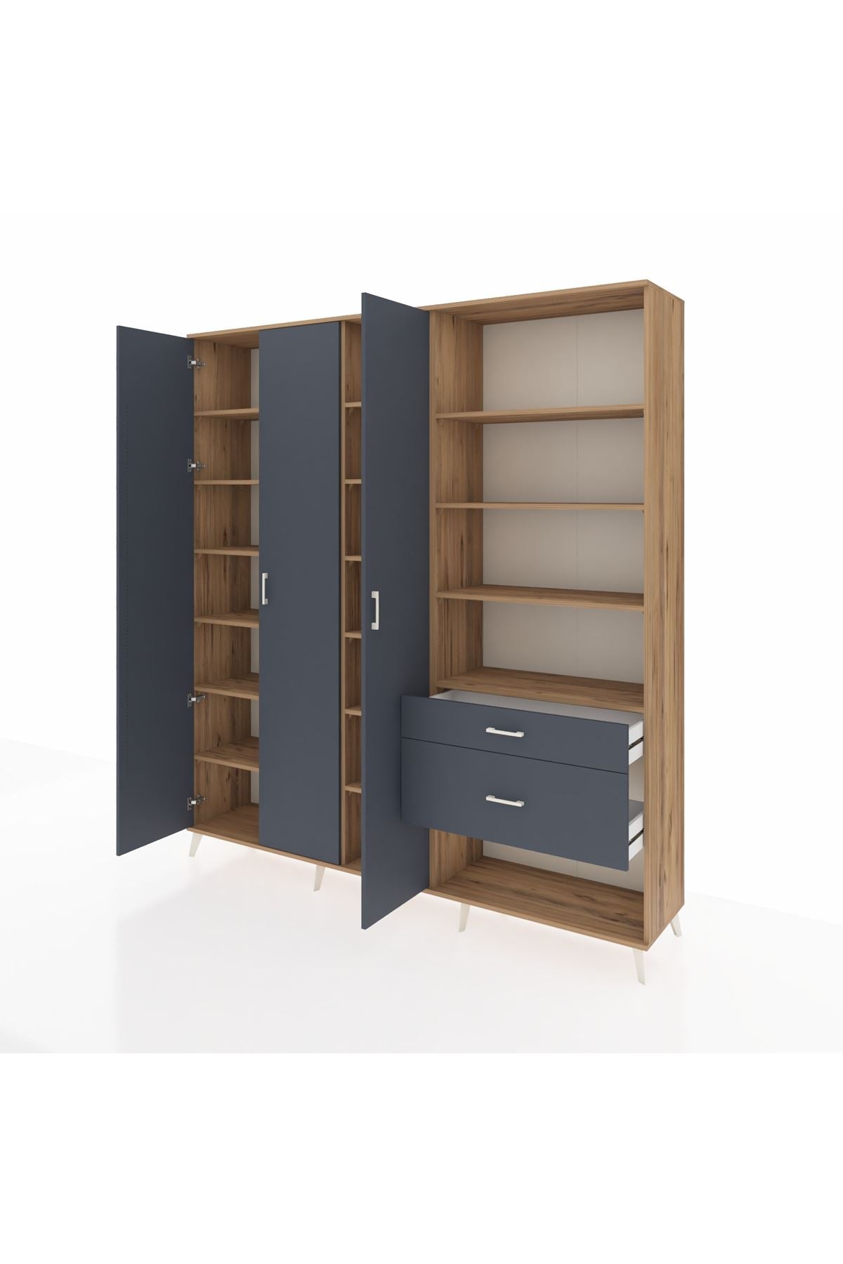 Hyperion Dolap 16 Raflı 2 Çekmeceli 3 Kapaklı 220x44x243 Çam-Antrasit/Antrasit