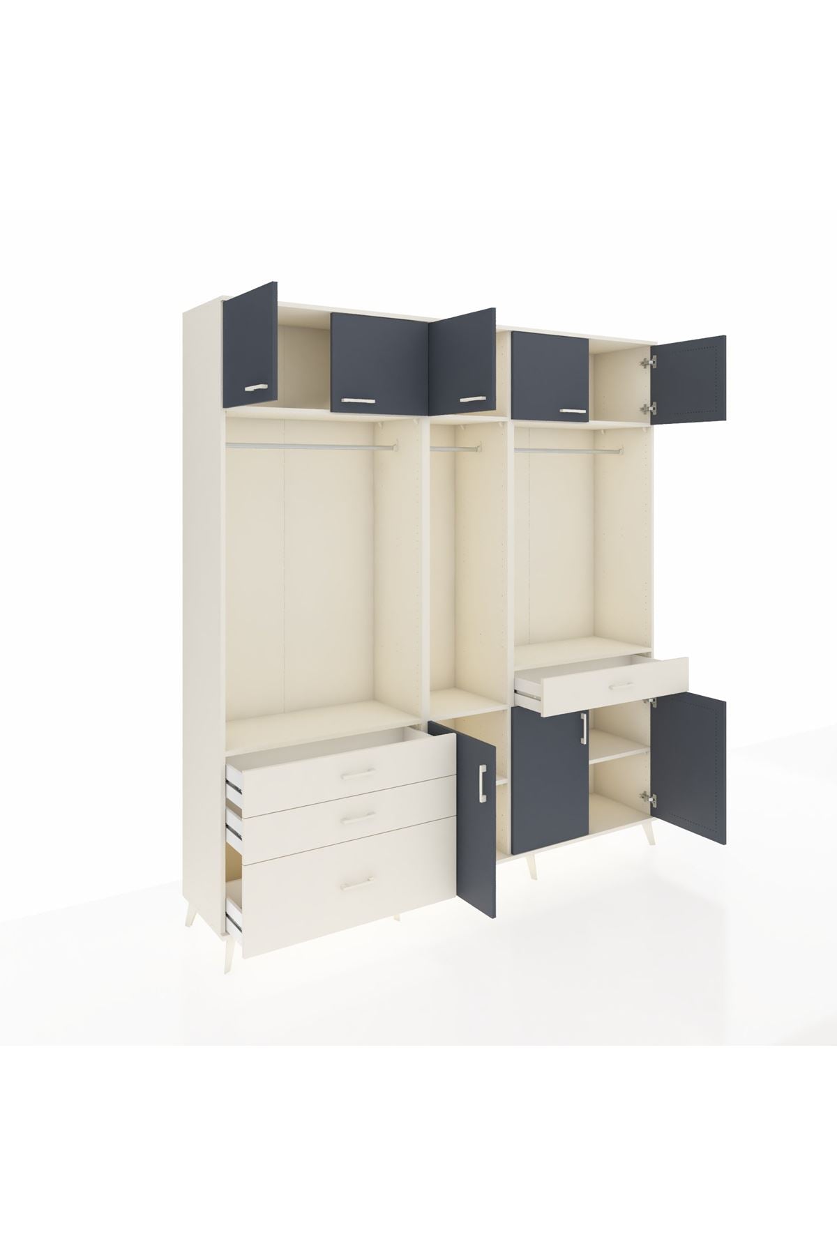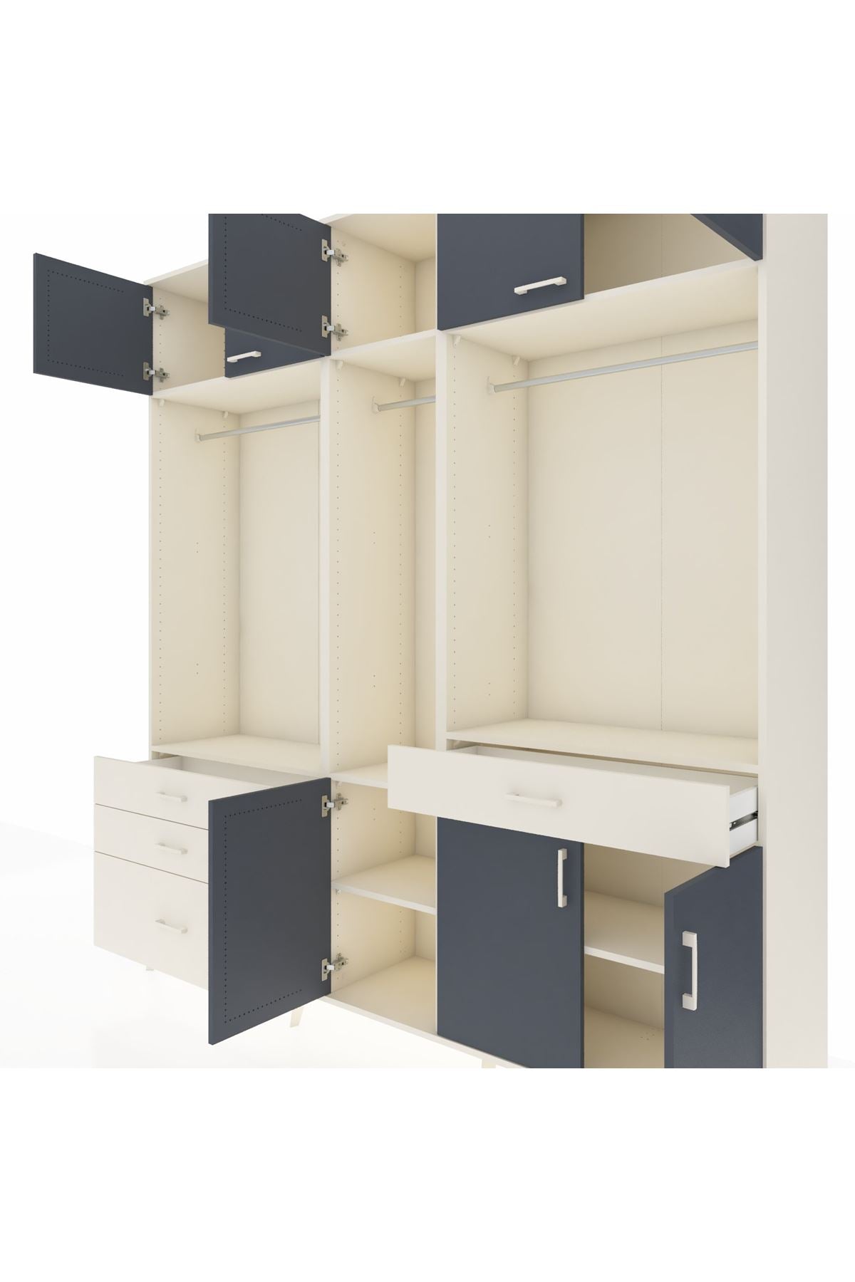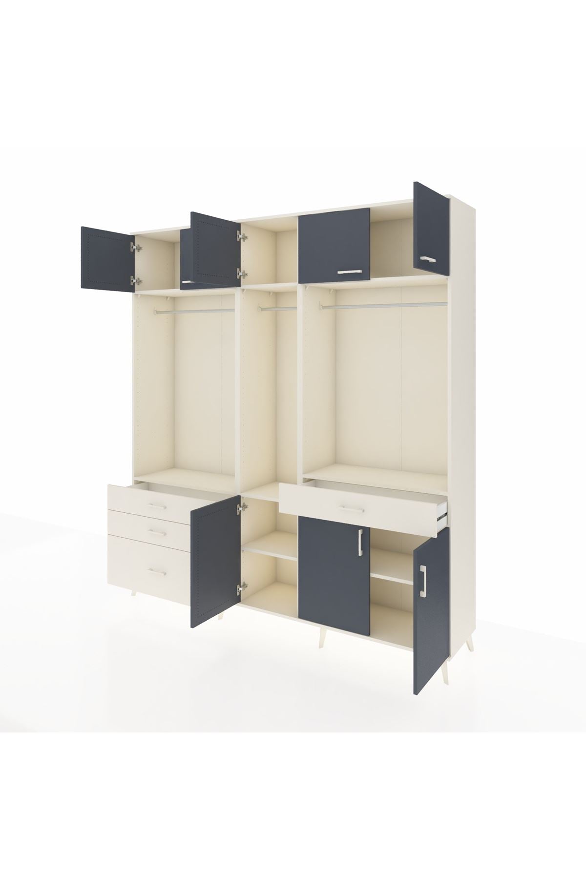 Hyperion Dolap 8 Raflı 4 Çekmeceli 3 Askılı 220x44x243 Aytaşı-Antrasit/Aytaşı