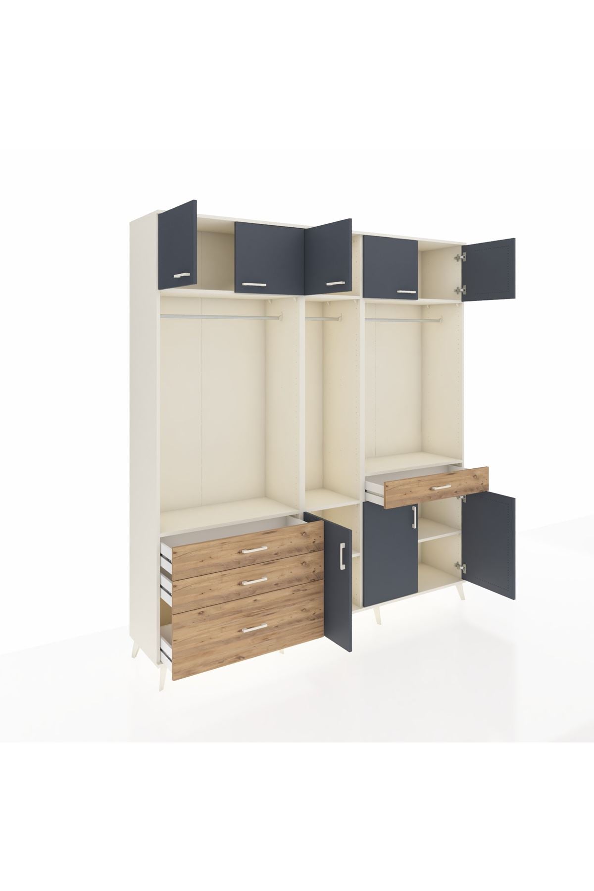 Hyperion Dolap 8 Raflı 4 Çekmeceli 3 Askılı 220x44x243 Aytaşı-Antrasit/Çam