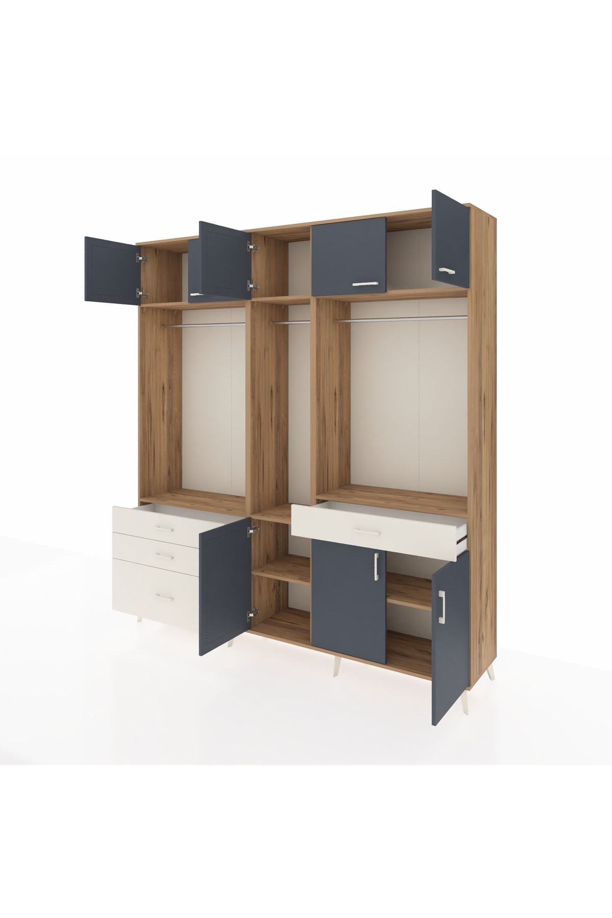 Hyperion Dolap 8 Raflı 4 Çekmeceli 3 Askılı 220x44x243 Çam-Antrasit/Aytaşı