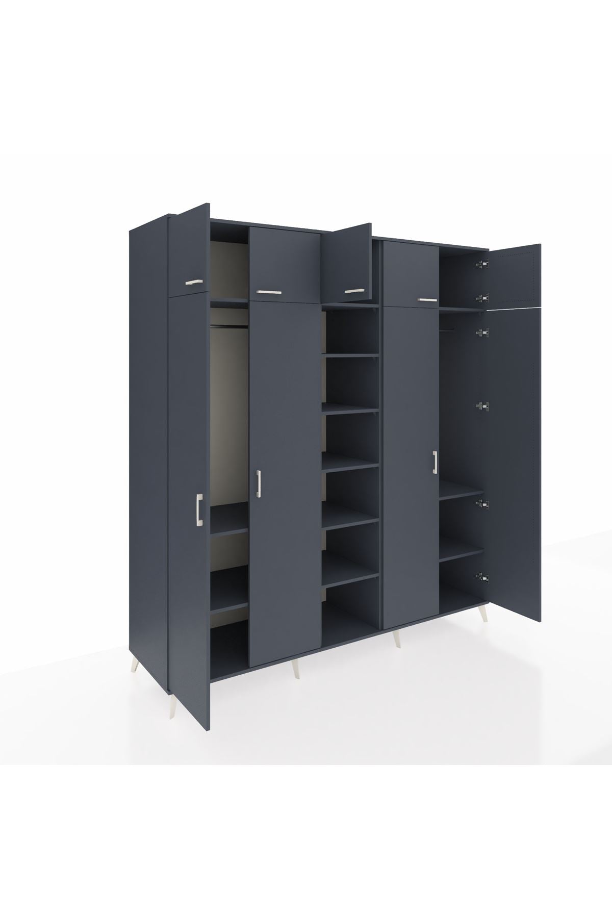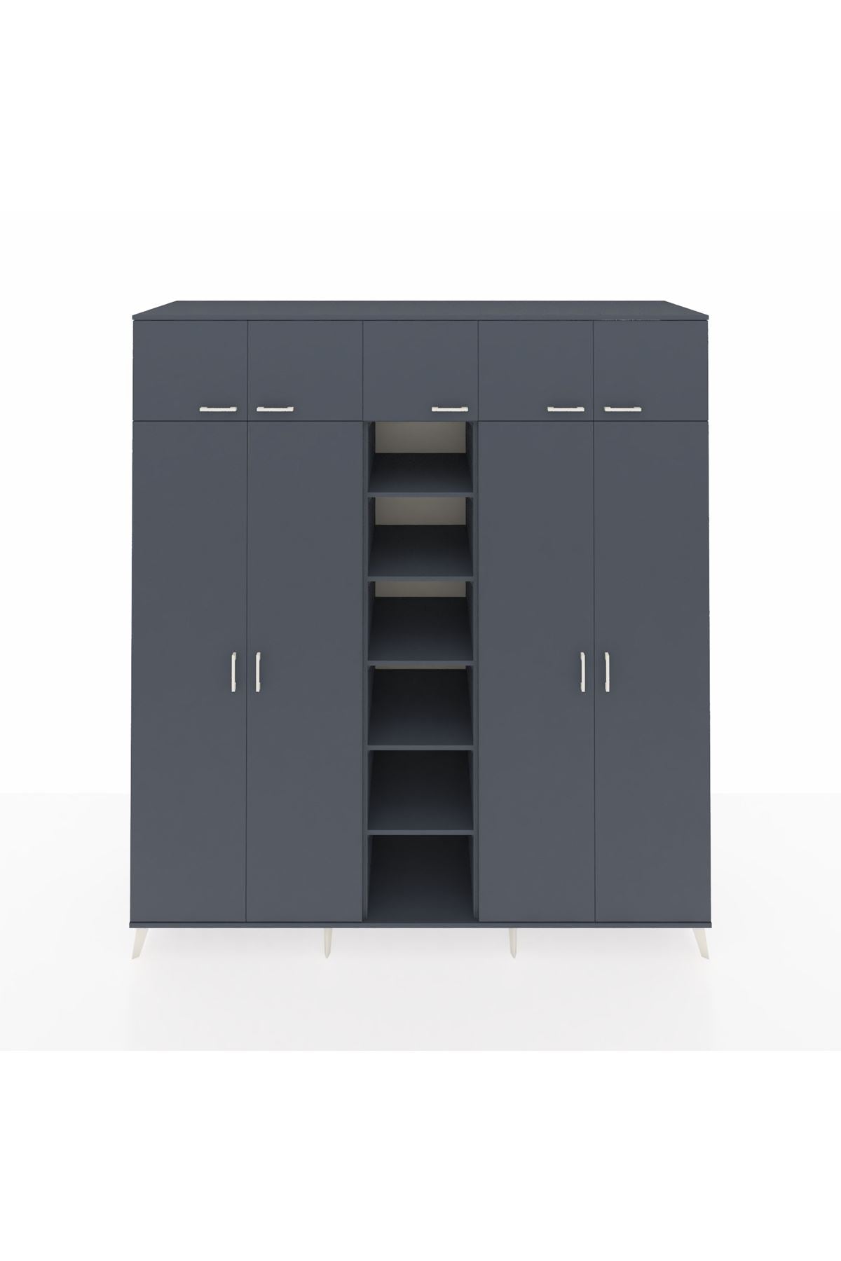 Kronos Dolap 12 Raflı 9 Kapaklı 2 Askılı 220x59x243 Antrasit-Antrasit/Antrasit