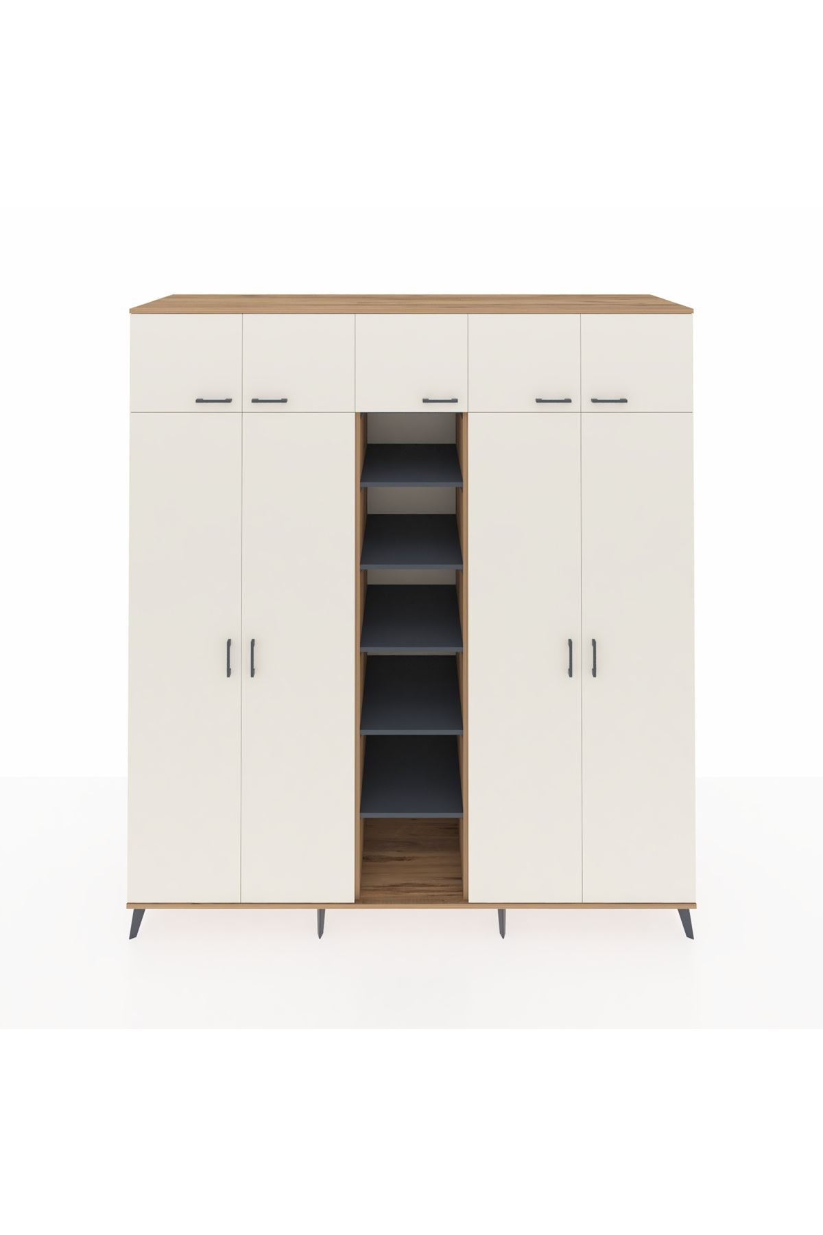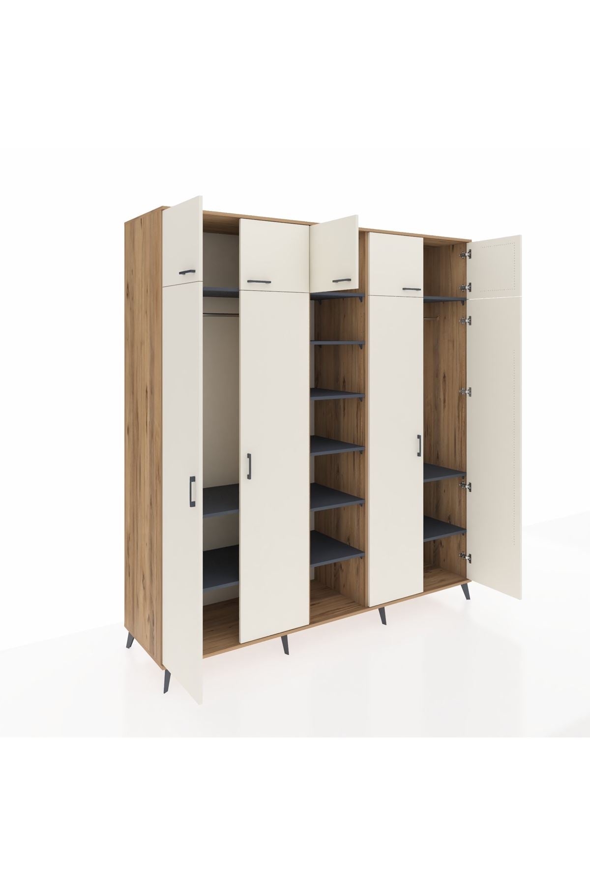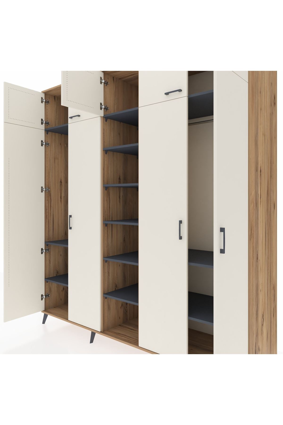 Kronos Dolap 12 Raflı 9 Kapaklı 2 Askılı 220x59x243 Çam-Aytaşı/Antrasit