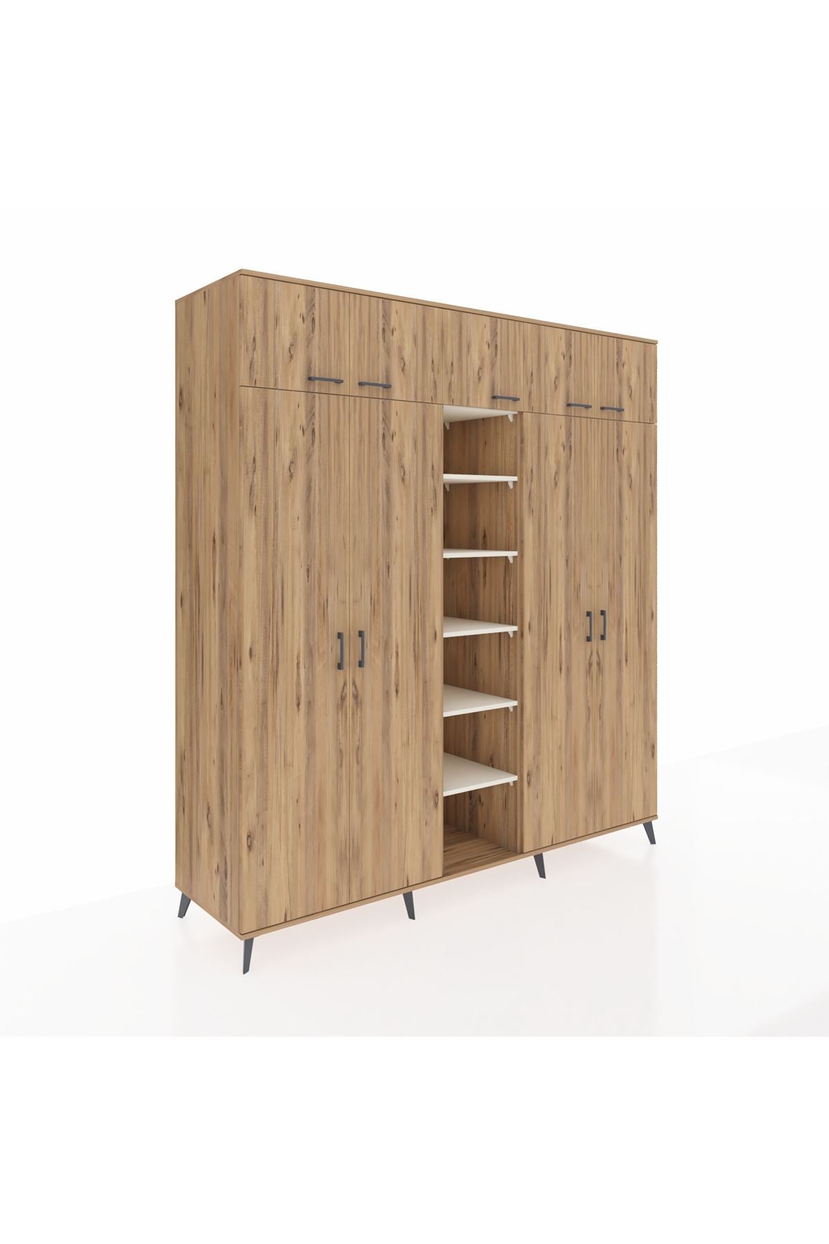 Kronos Dolap 12 Raflı 9 Kapaklı 2 Askılı 220x59x243 Çam-Çam/Aytaşı