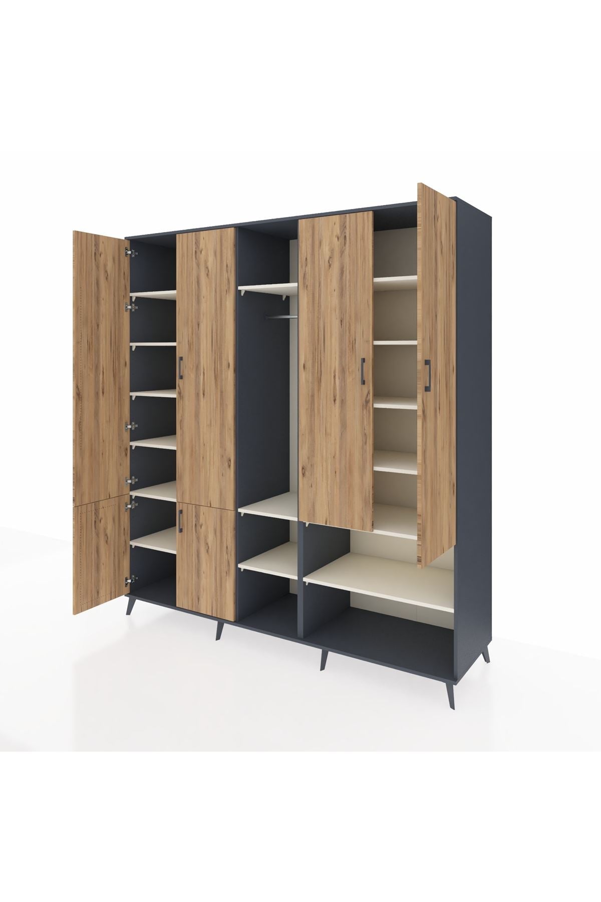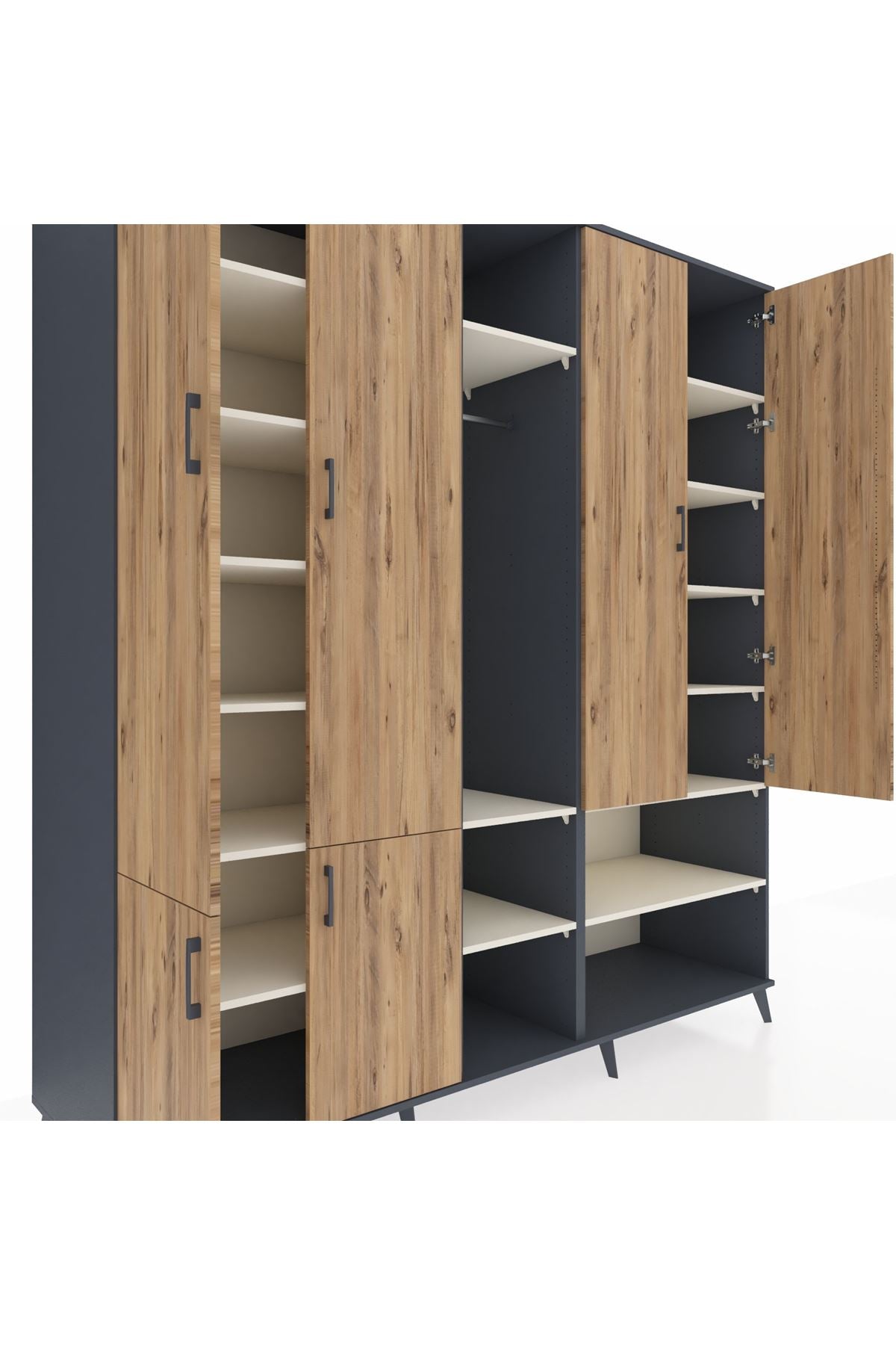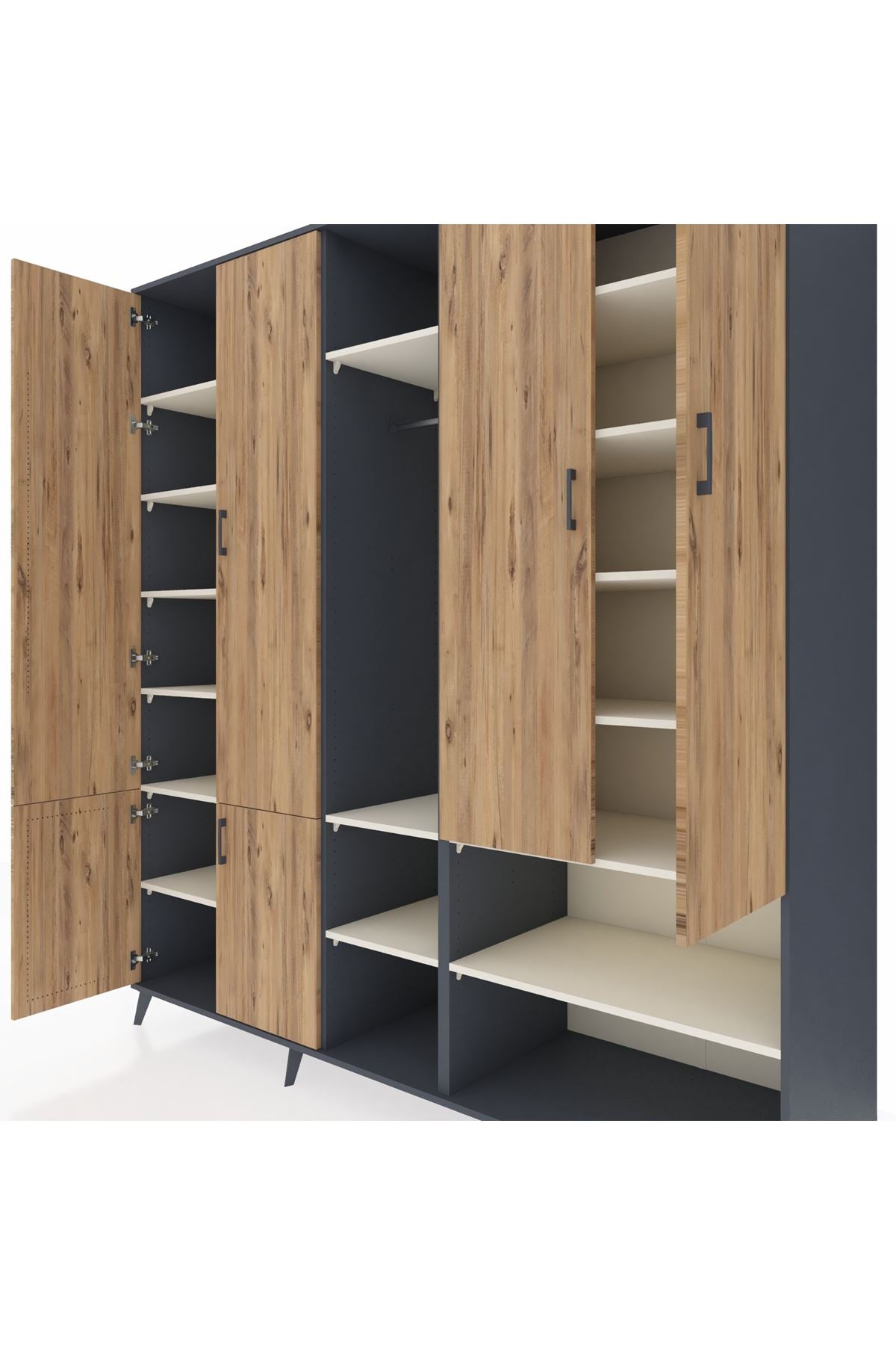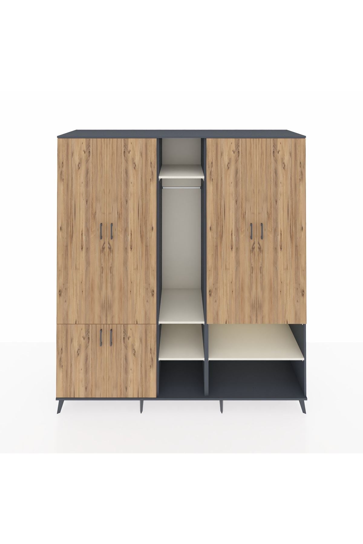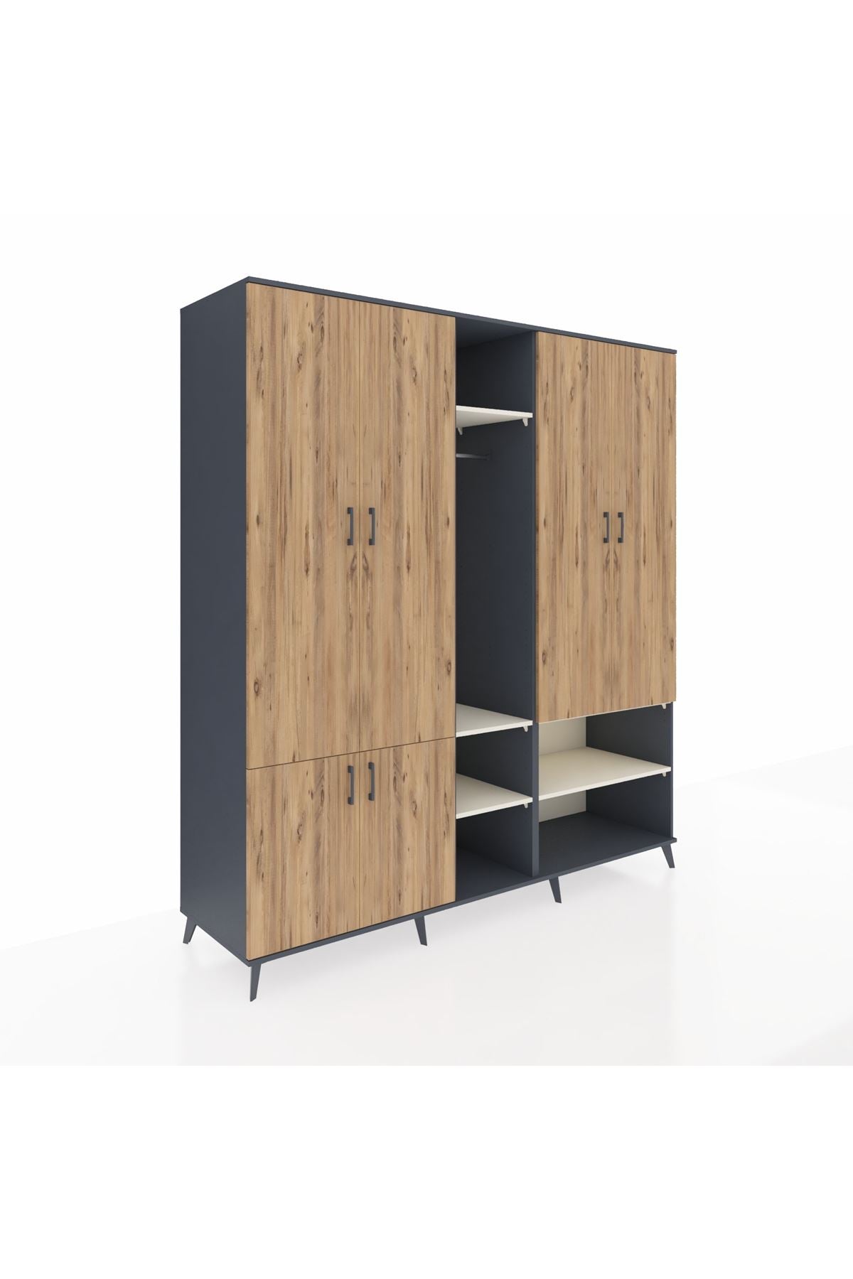 Kronos Dolap 15 Raflı 5 Kapaklı Tek Askılı 220x59x243 Antrasit-Çam/Aytaşı