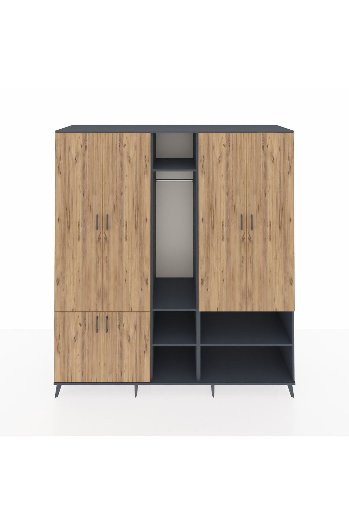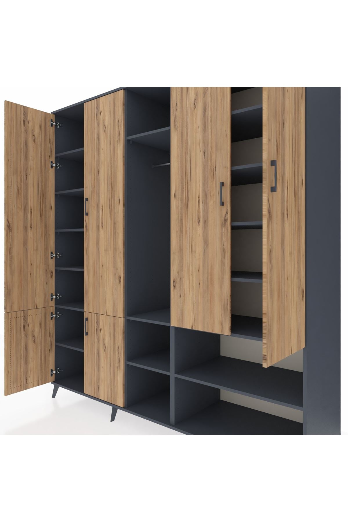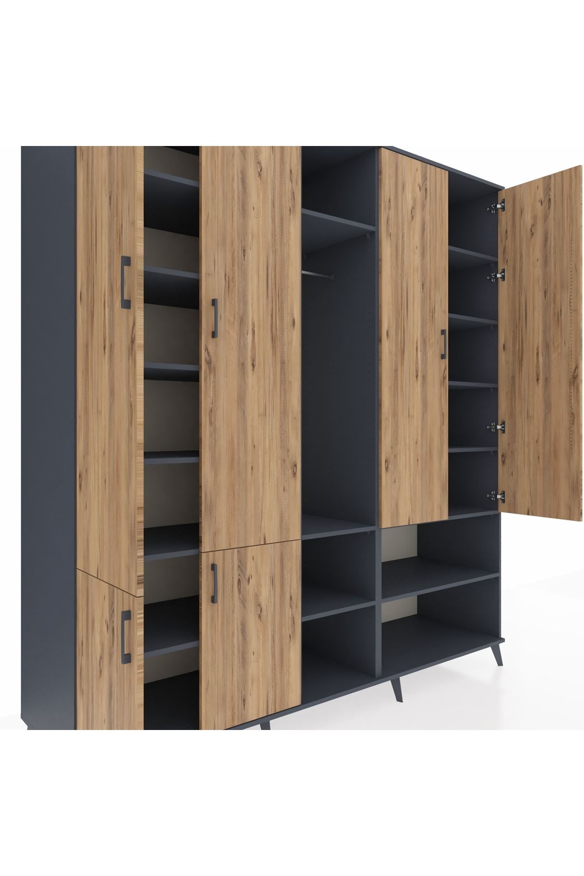 Kronos Dolap 15 Raflı 5 Kapaklı Tek Askılı 220x59x243 Antrasit-Çam/Antrasit