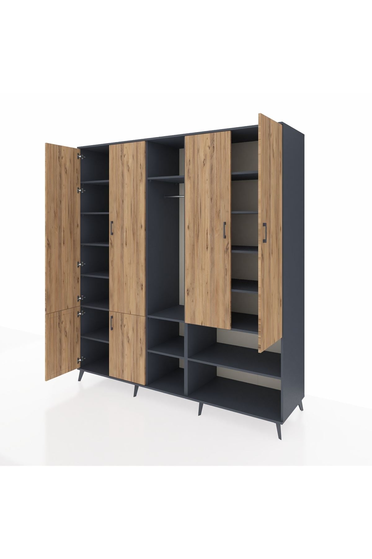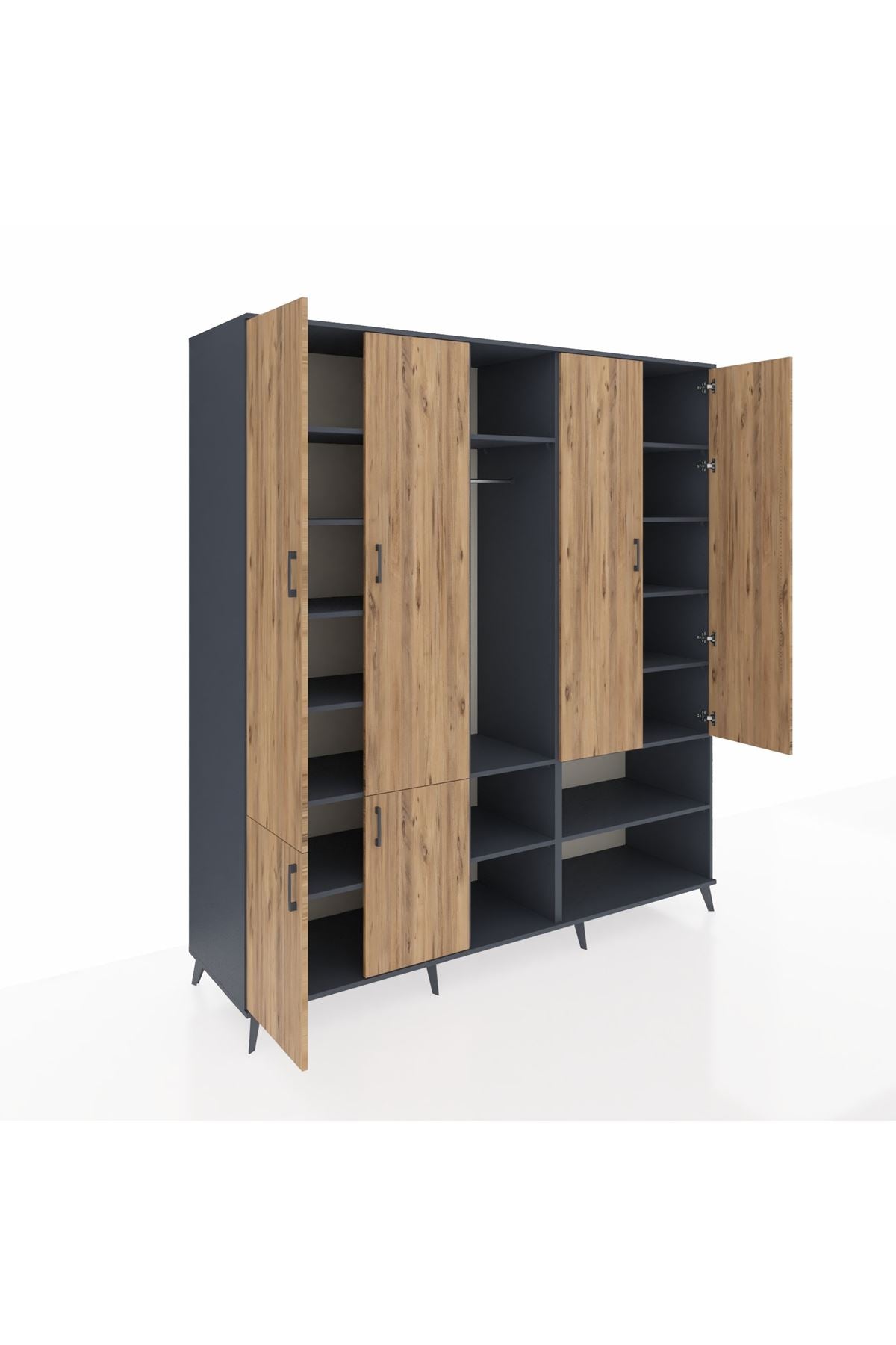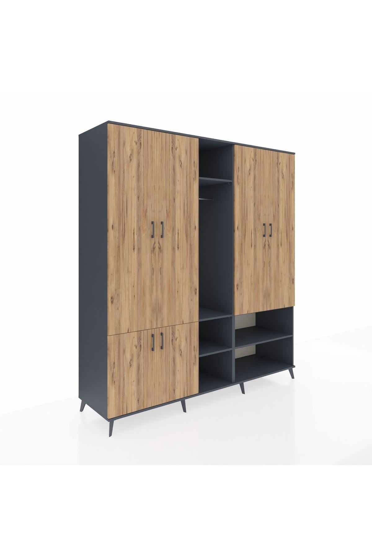 Kronos Dolap 15 Raflı 5 Kapaklı Tek Askılı 220x59x243 Antrasit-Çam/Antrasit