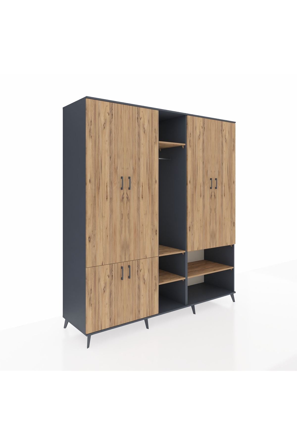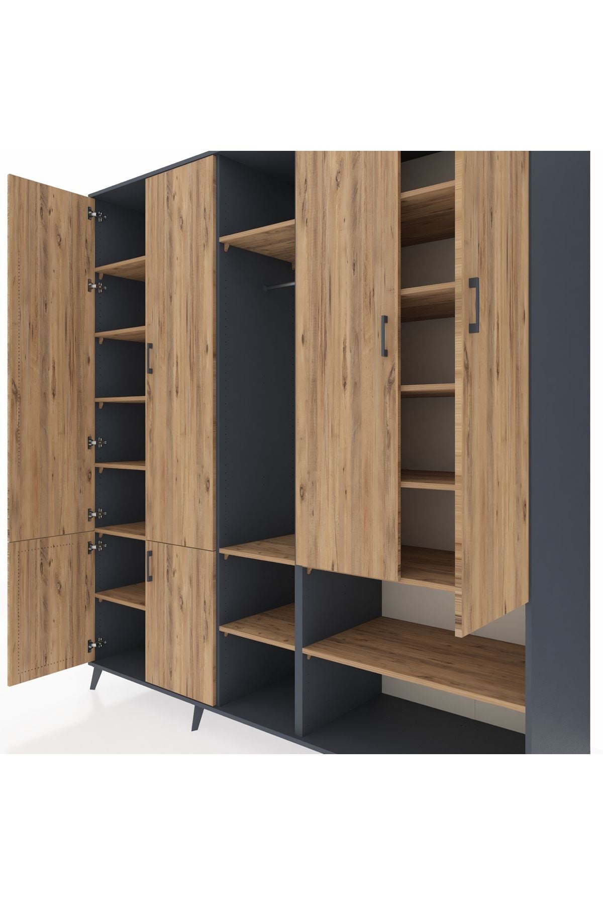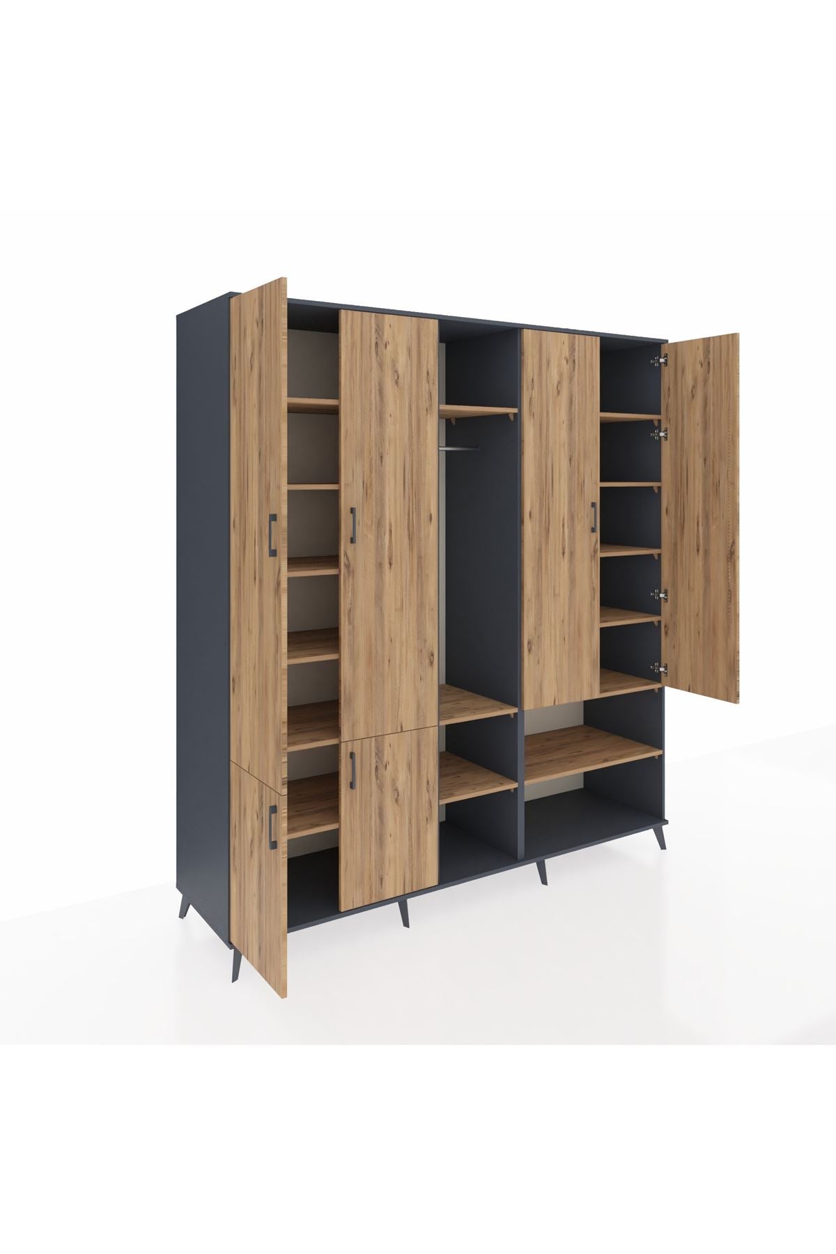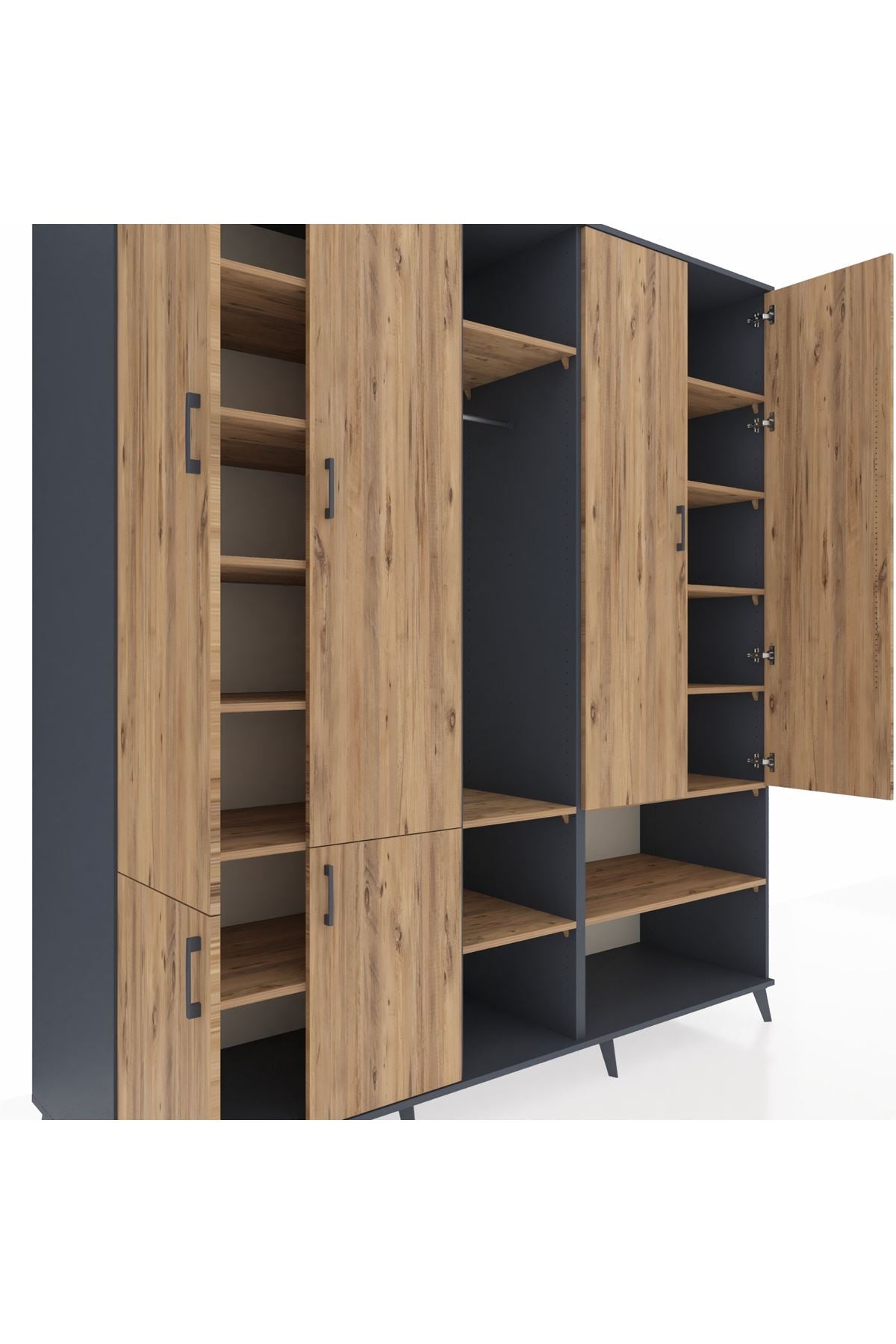 Kronos Dolap 15 Raflı 5 Kapaklı Tek Askılı 220x59x243 Antrasit-Çam/Çam
